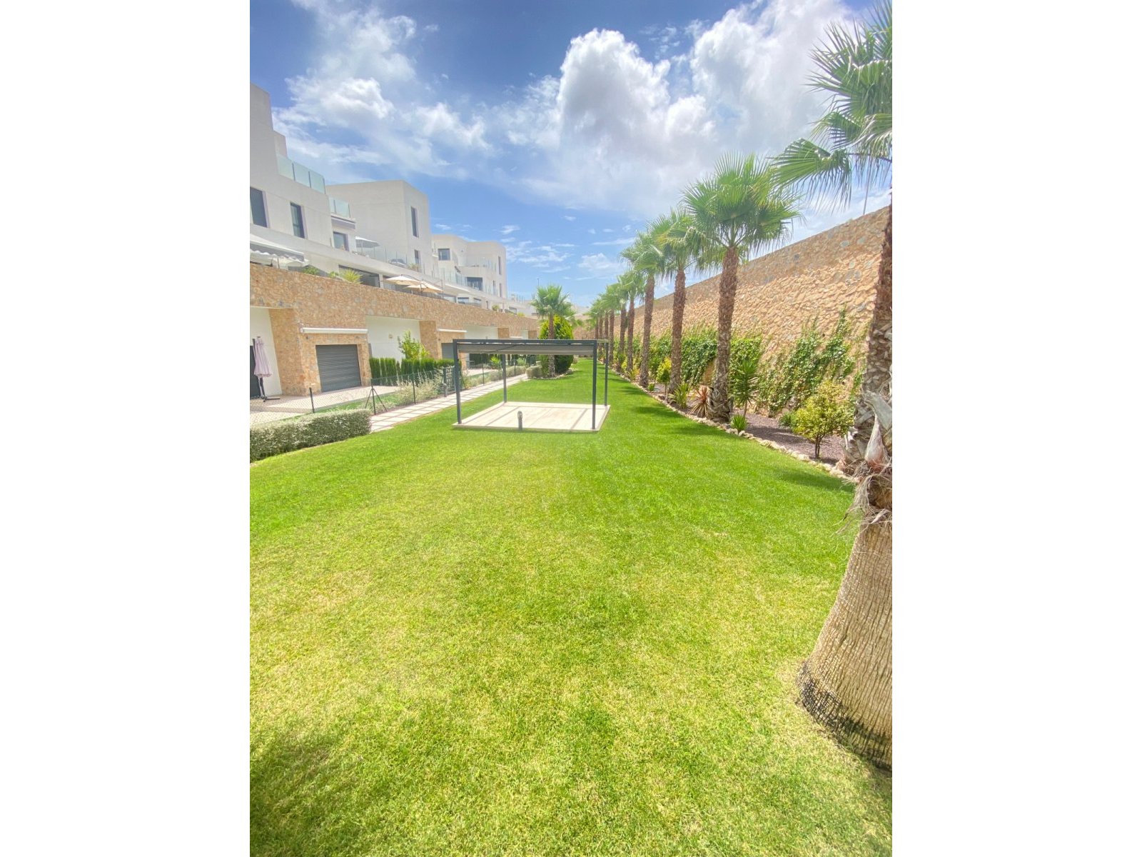 This spectacular ground floor apartment is a must-see, offering light, modern, open-plan living accommodation, which leads through the large double patio doors, onto the private garden area with electric awning and directly to the beautifully maintained communal gardens and pool area with separate infant pool. Both double bedrooms lead directly to the private garden and the master bedroom enjoys an en-suite bathroom. There are built-in wardrobes in both bedrooms, ducted air-con throughout the property, which also acts as heating in the short winter period. The property also enjoys the use of a private underground parking space and a lockable storeroom. Tourist Licence held. The Soleil Complex is a short walk to the local amenities and the Villamartin Plaza and a short drive to the award-winning commercial centre La Zenia Boulevard, spectacular local golf courses, beautiful ports and beaches of Orihuela Costa and a myriad of entertainment options, including bowling, karts, diving, cinemas, restaurants, shopping, sports facilities, water parks and much more.
