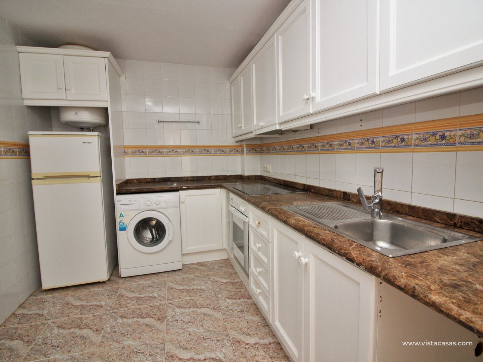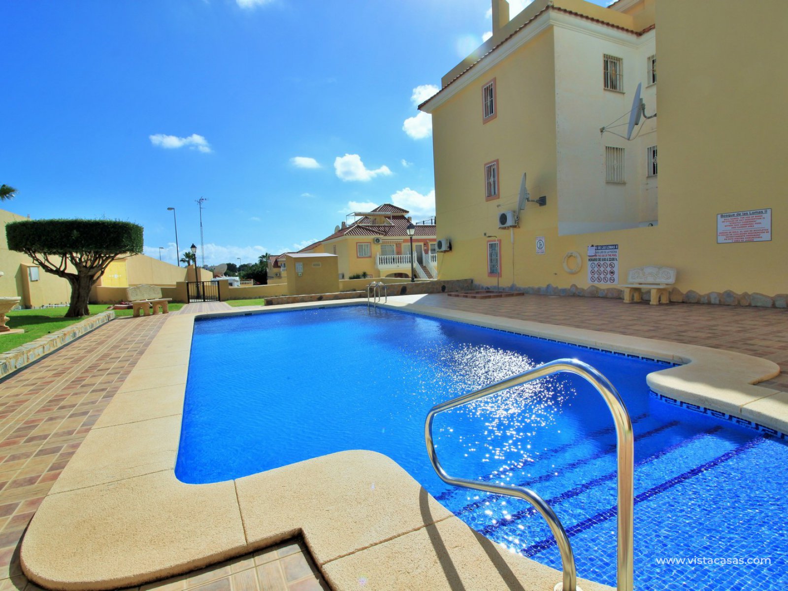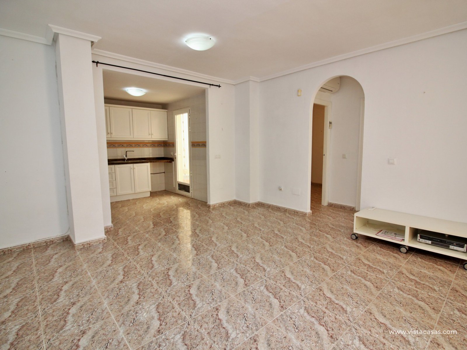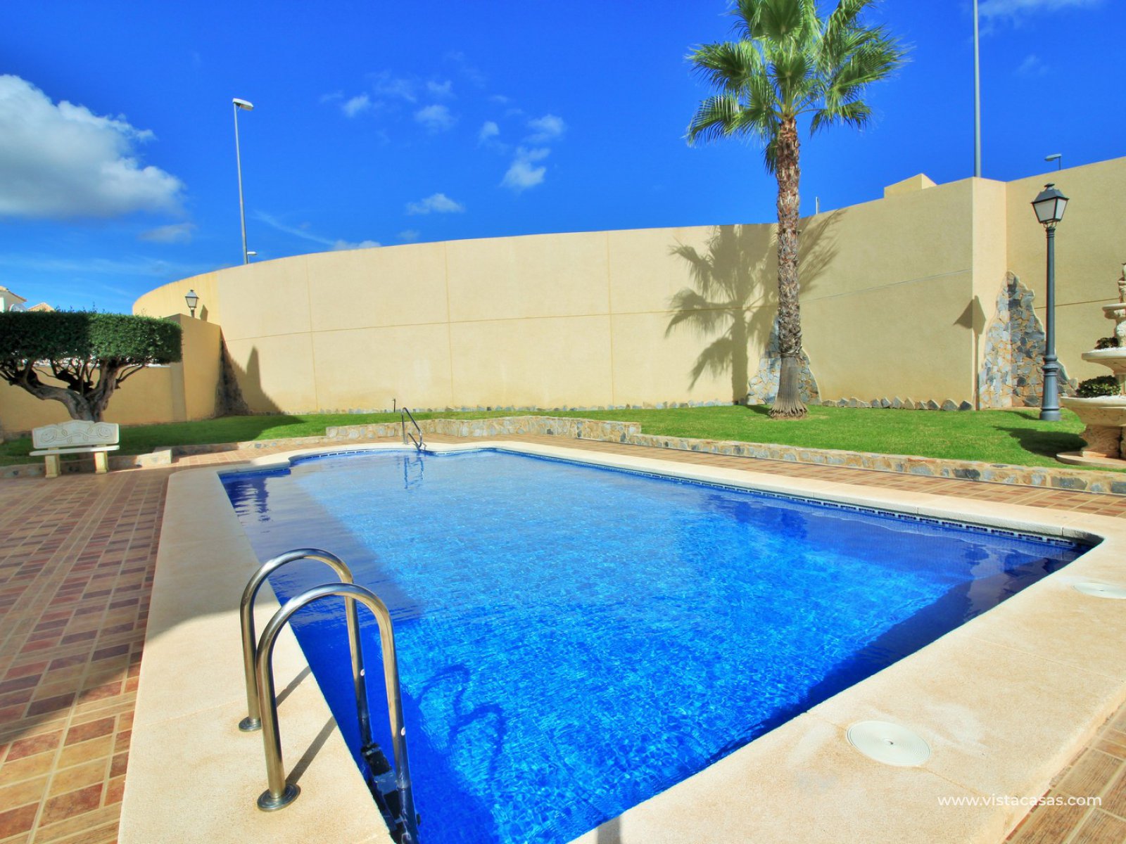 The living accommodation comprises of a good sized lounge-dining area with open kitchen, separate utility area, 2 bedrooms with fitted wardrobes and a family bathroom. There is a front paved garden with covered porch and driveway. The community offers the use of various communal pools and garden areas which are well maintained. An ideal holiday home or used as a rental investment with all services on your doorstep. With 3 golf courses, La Zenia Boulevard shopping mall and the beaches of Orihuela Costa all within easy reach by car. Sold unfurnished but includes white goods and air-conditioning.