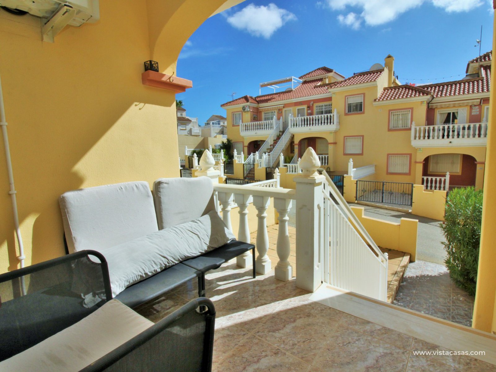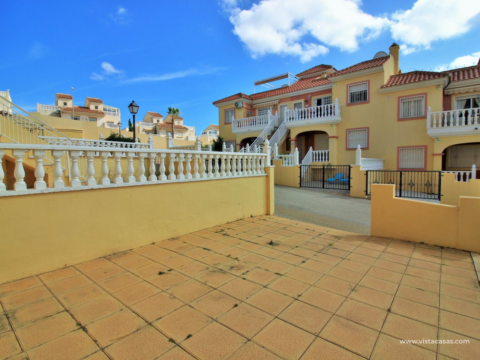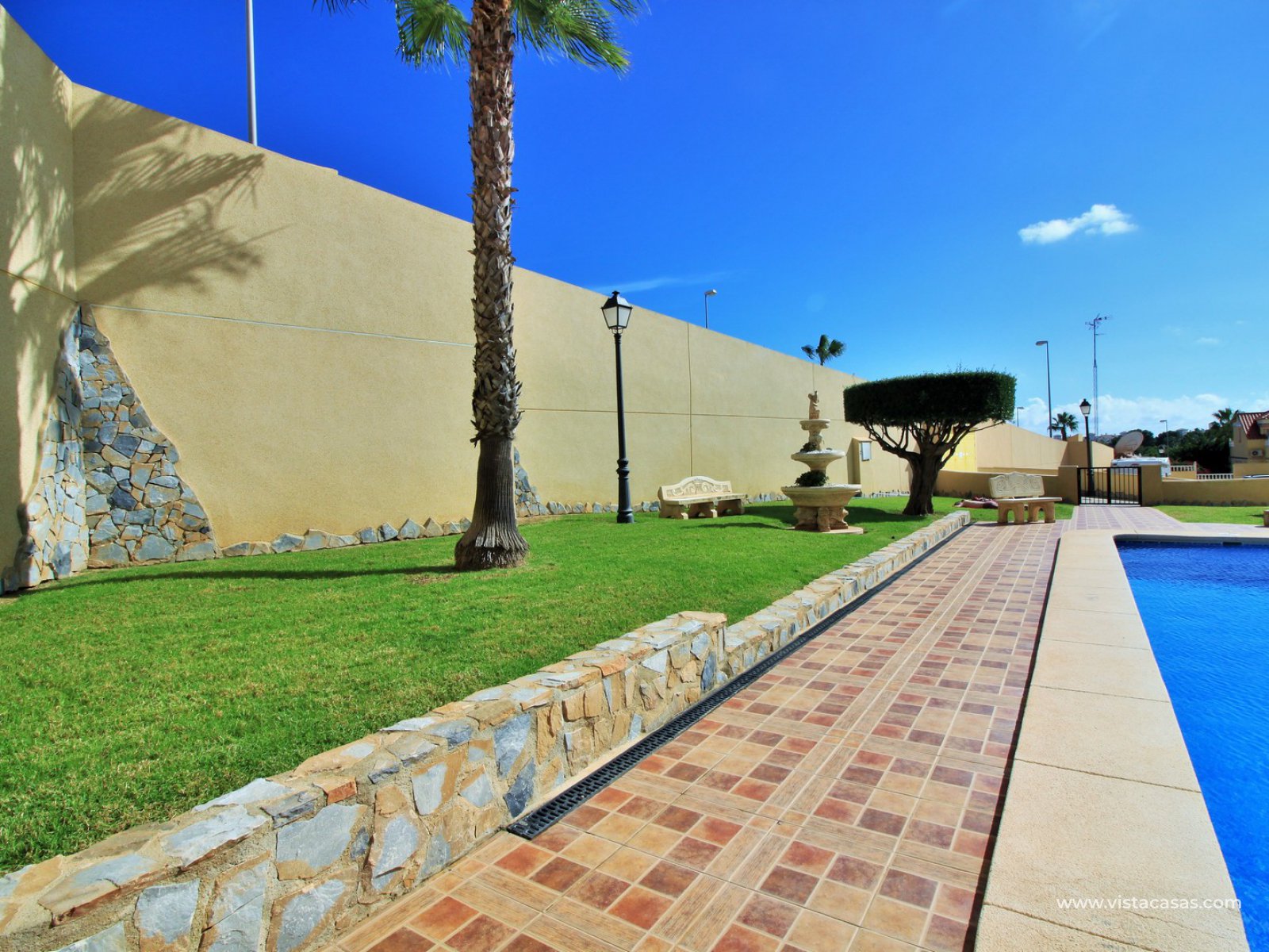 The living accommodation comprises of a good sized lounge-dining area with open kitchen, separate utility area, 2 bedrooms with fitted wardrobes and a family bathroom. There is a front paved garden with covered porch and driveway. The community offers the use of various communal pools and garden areas which are well maintained. An ideal holiday home or used as a rental investment with all services on your doorstep. With 3 golf courses, La Zenia Boulevard shopping mall and the beaches of Orihuela Costa all within easy reach by car. Sold unfurnished but includes white goods and air-conditioning.