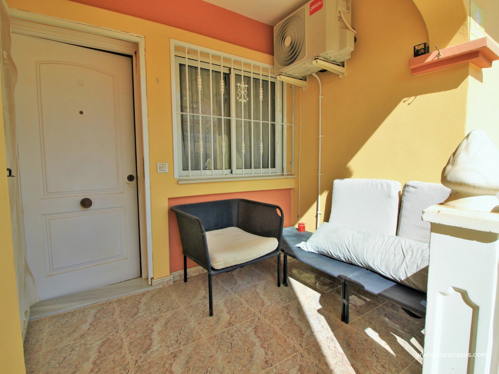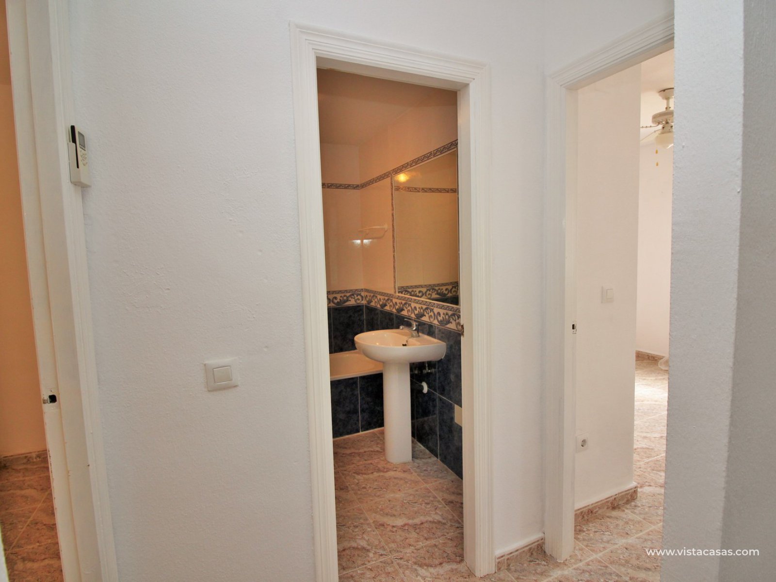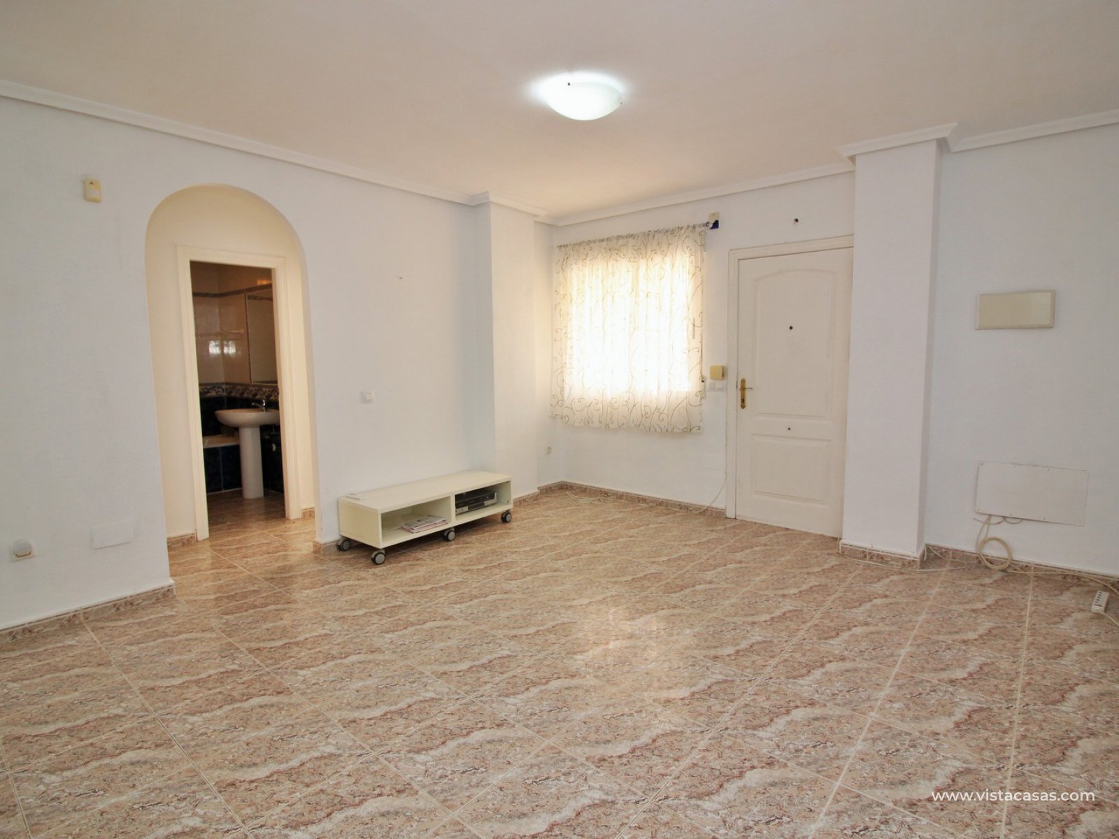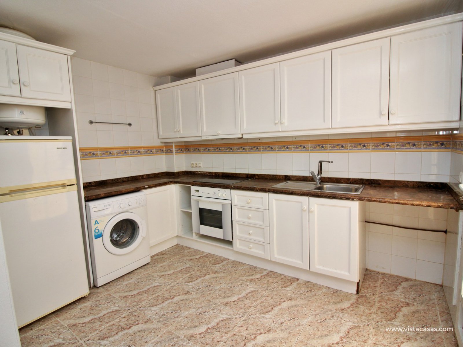 The living accommodation comprises of a good sized lounge-dining area with open kitchen, separate utility area, 2 bedrooms with fitted wardrobes and a family bathroom. There is a front paved garden with covered porch and driveway. The community offers the use of various communal pools and garden areas which are well maintained. An ideal holiday home or used as a rental investment with all services on your doorstep. With 3 golf courses, La Zenia Boulevard shopping mall and the beaches of Orihuela Costa all within easy reach by car. Sold unfurnished but includes white goods and air-conditioning.