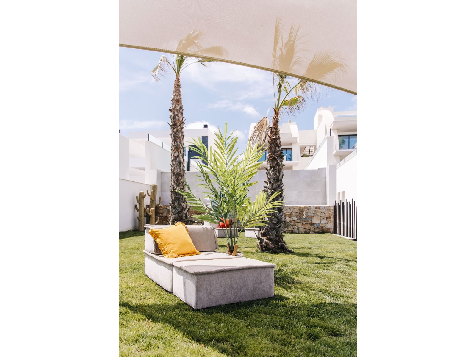 The outdoor environment of these properties maximizes enjoyment of the Mediterranean climate. Each bungalow has a private garden, perfect for moments of relaxation or outdoor activities. The terraces provide additional space for leisure, allowing you to enjoy the views and the natural surroundings. For sun lovers, the solarium is an ideal place to soak up the sun in the privacy of your home.