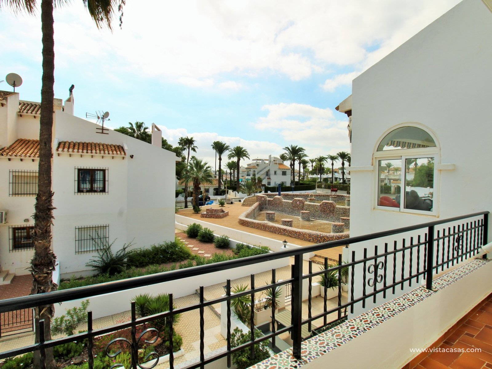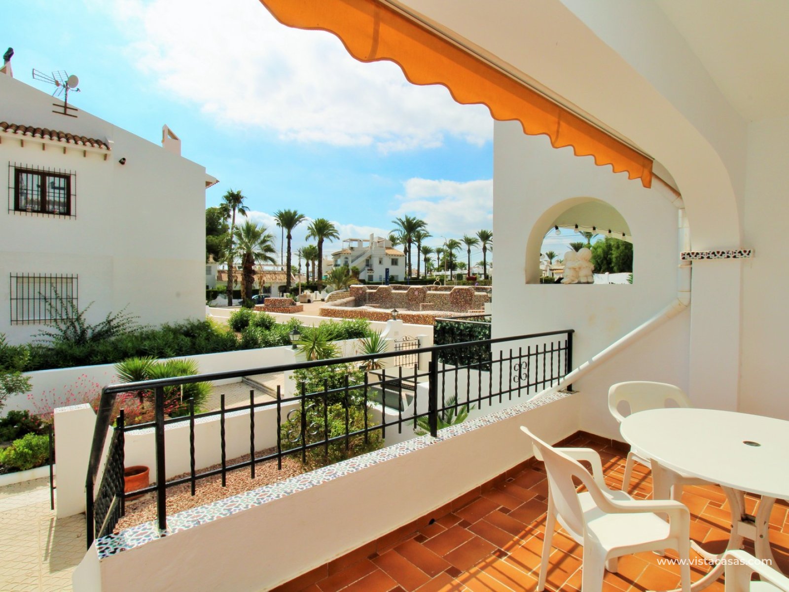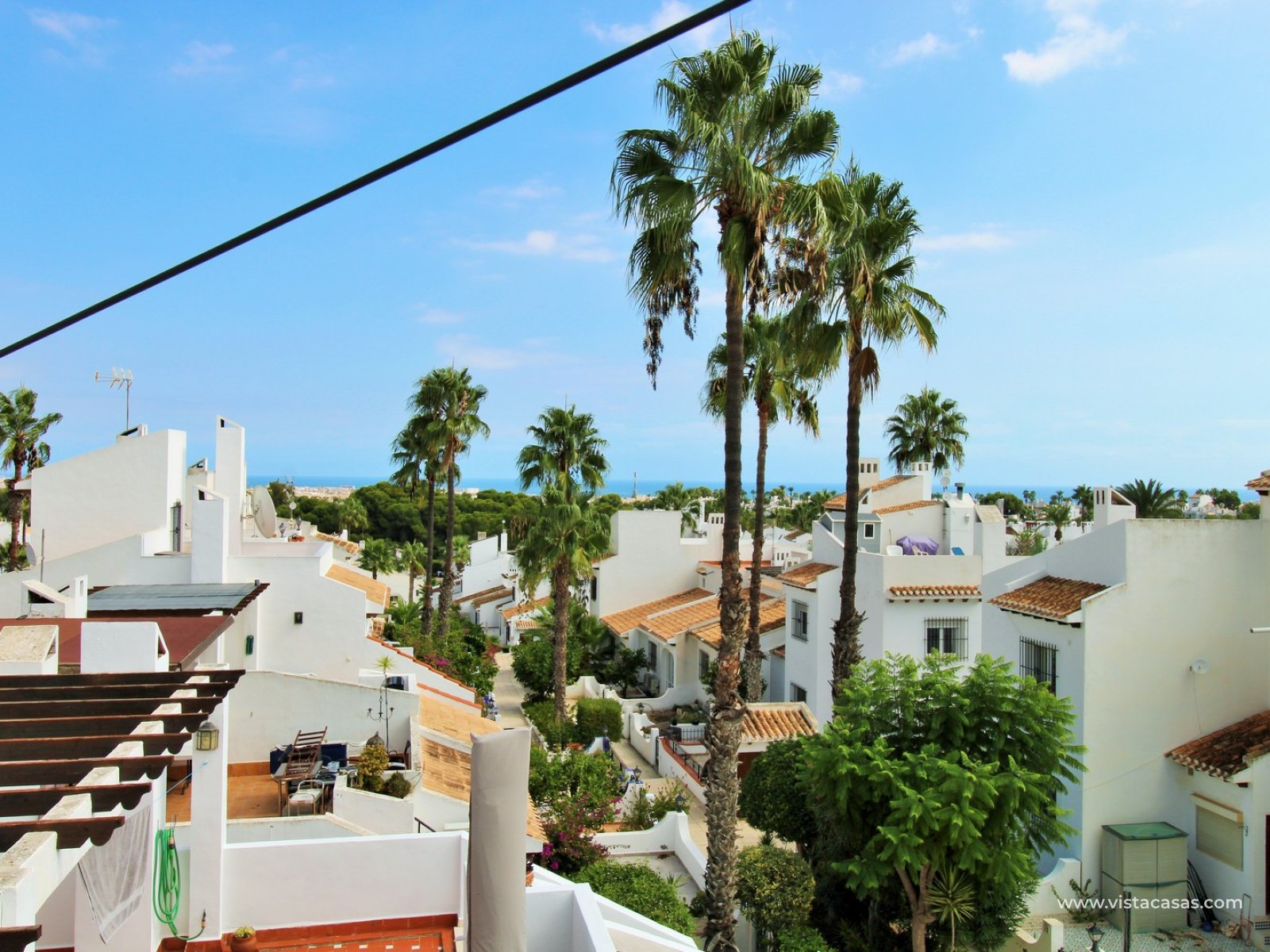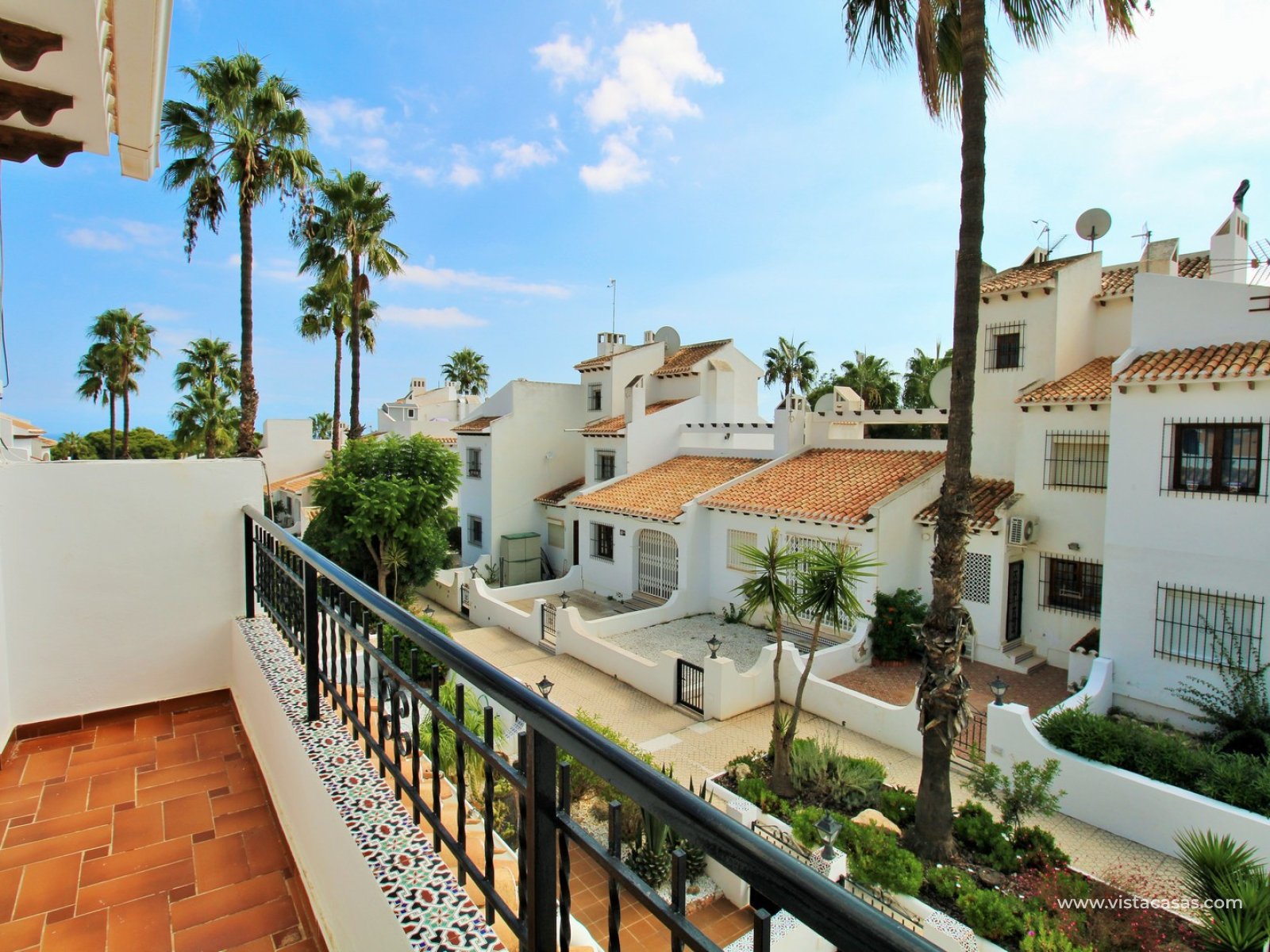 A lovely South-facing Sofia style townhouse situated in the sought-after urbanisation of Verdemar III in Villamartin. The property enjoys a superb outlook towards the main water fountain of Verdemar III, and offers generous outdoor space, including front and rear gardens, a covered terrace, and a private roof solarium with sea views.
