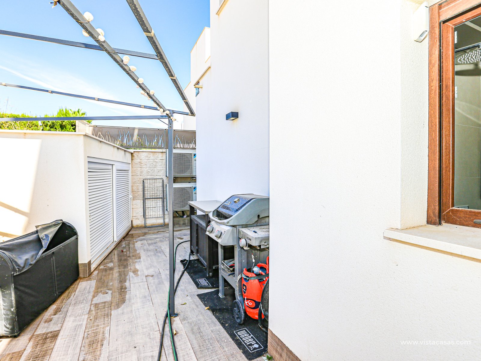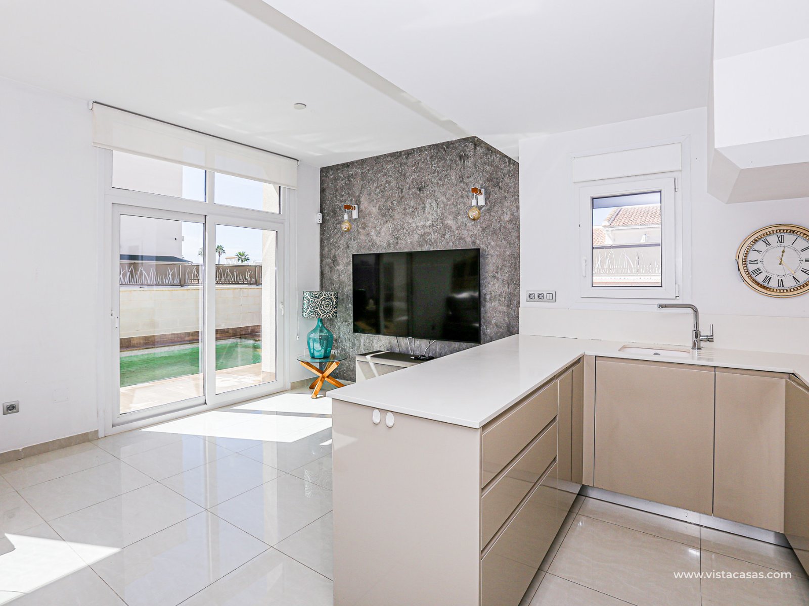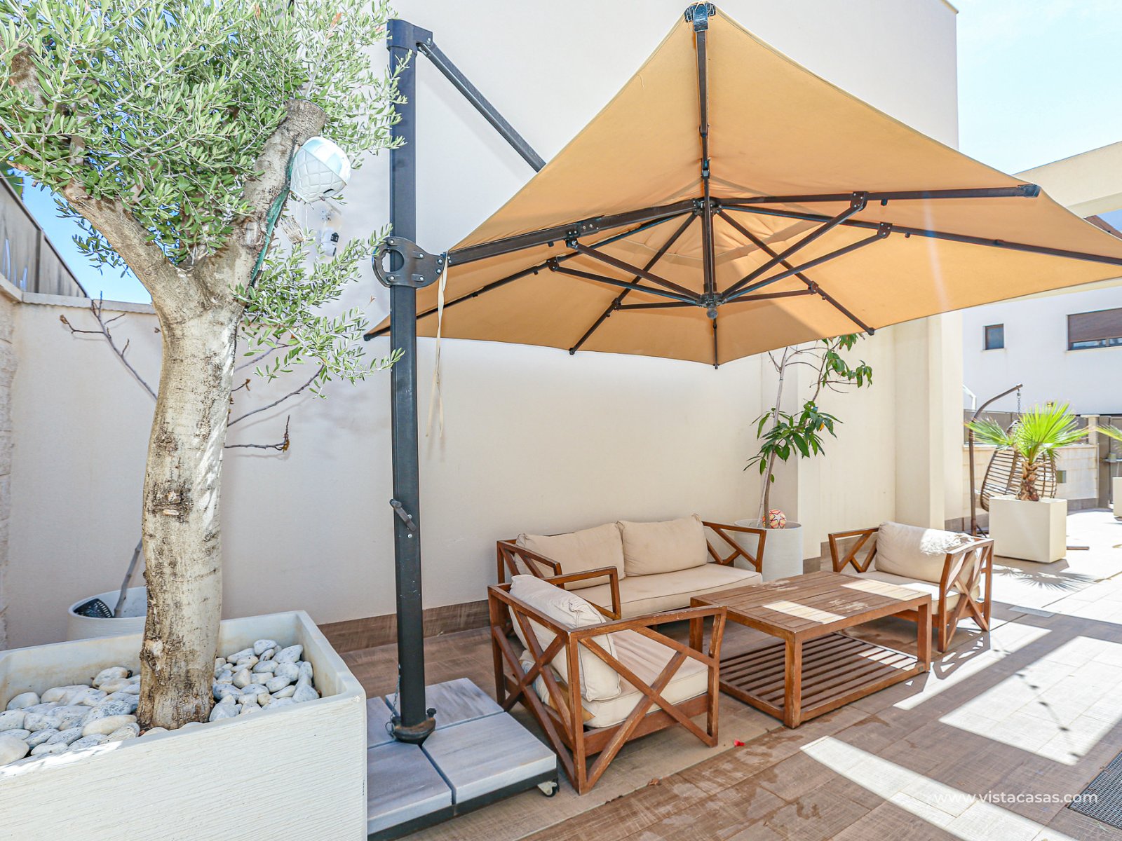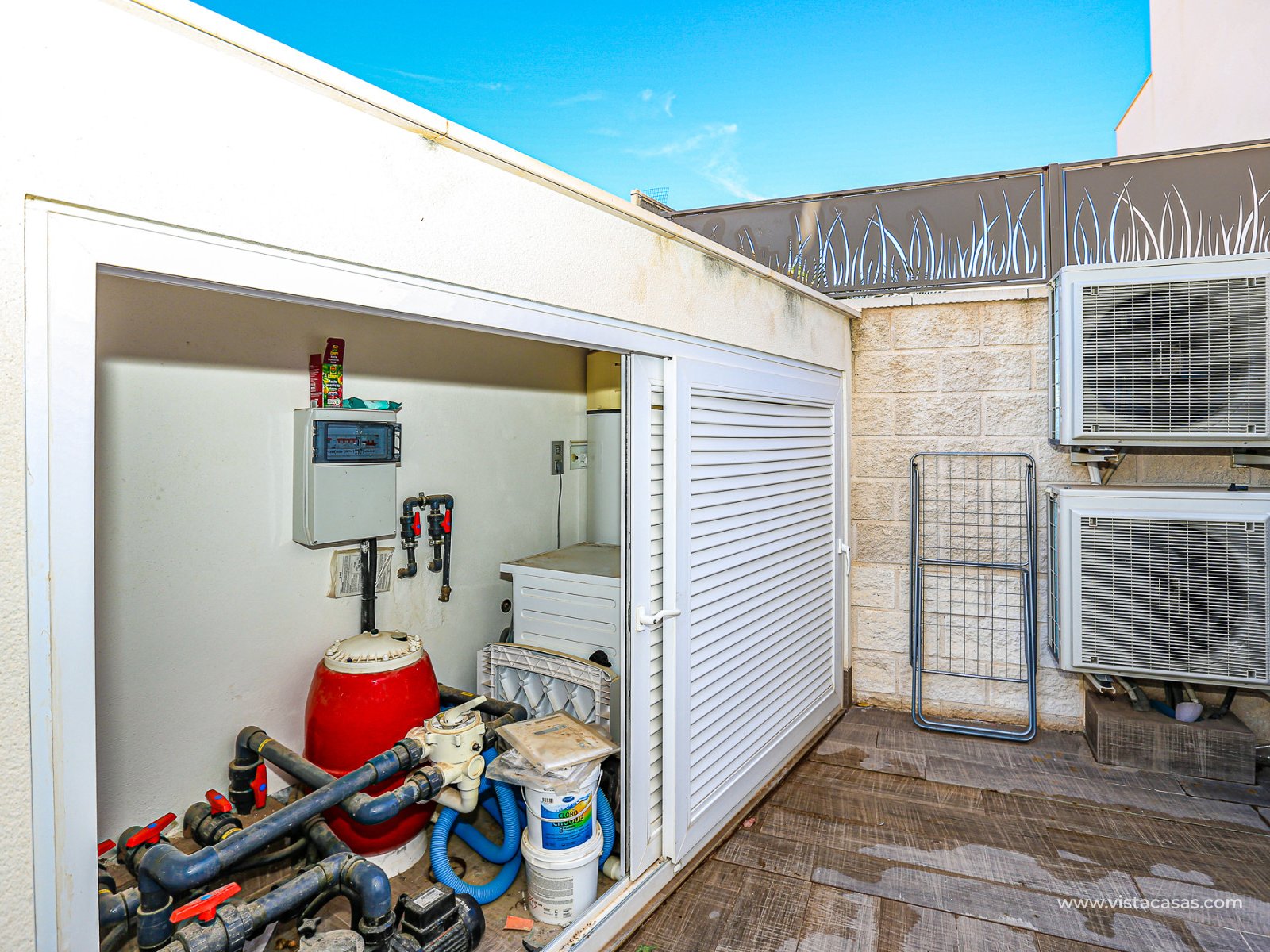 We are delighted to present this exclusive detached villa, located in the prestigious residential area of Doña Pepa, Ciudad Quesada (Rojales). The property is situated at the end of a quiet access road and benefits from a fully private entrance with an automatic gate for vehicles. The villa sits on a low-maintenance plot, featuring wood-style paving, decorative planters, a private swimming pool, and a practical outdoor storage room. One of its main highlights is the unfinished basement, offering great potential to be converted into additional living space, perfectly adaptable to your needs. On the ground floor, upon entering, you will find a full bathroom (all bathrooms are equipped with underfloor heating) and a bedroom with access to the exterior. To the left lies the spacious living-dining room together with a modern open-plan kitchen, fully equipped. The villa is fitted with electric shutters, except for the large living room windows. The first floor comprises two additional bedrooms, both with en-suite bathrooms, each with windows for natural light and ventilation. The master bedroom also enjoys a private terrace with open views. The top floor offers a large solarium with 360º orientation, ideal for sunbathing throughout the day and enjoying panoramic views of the Torrevieja salt lakes. This level also includes a second washing machine (the first one is located on the ground floor). The property is equipped with solar panels and batteries, maximising energy savings and efficiency. Conveniently located near Consum supermarket, bars and restaurants, and only 7 km by car from the beaches of Guardamar del Segura, this villa is a perfect choice both as an investment and as a spacious holiday residence on the Costa Blanca. Don’t miss out on this exceptional opportunity. Contact us today to arrange a viewing.