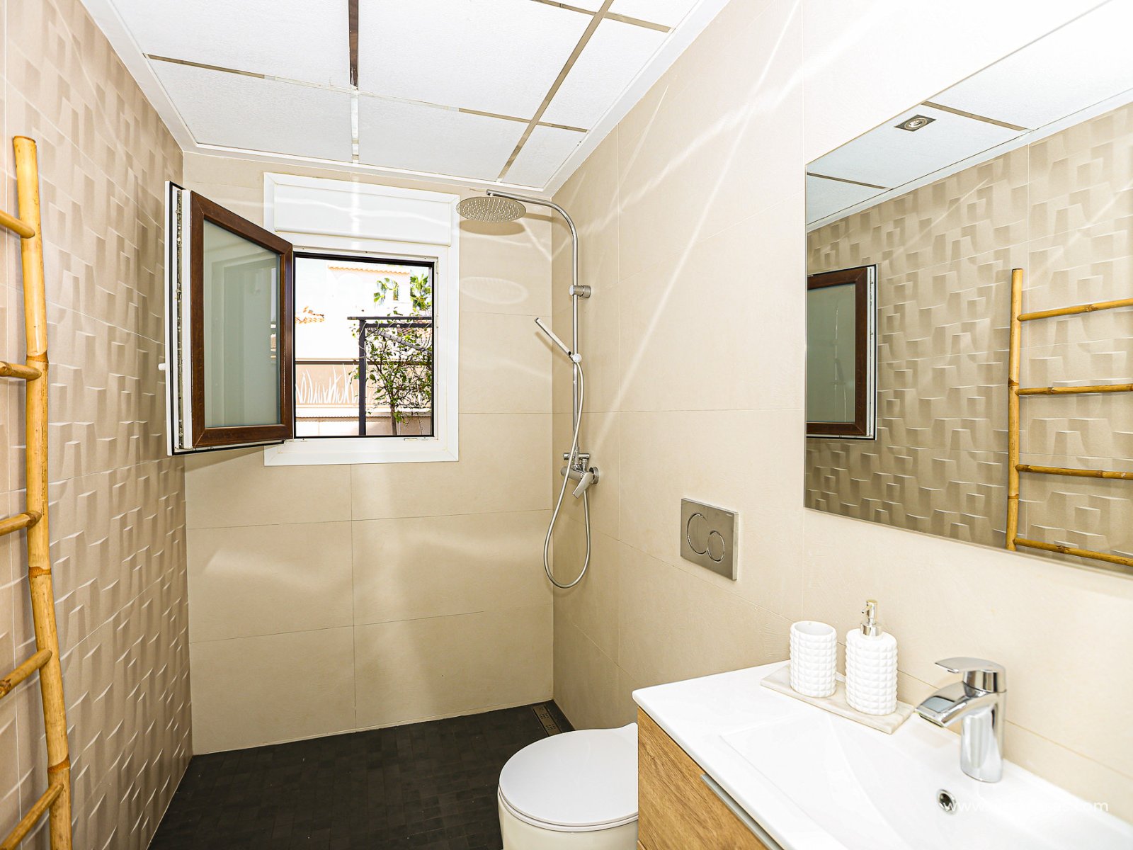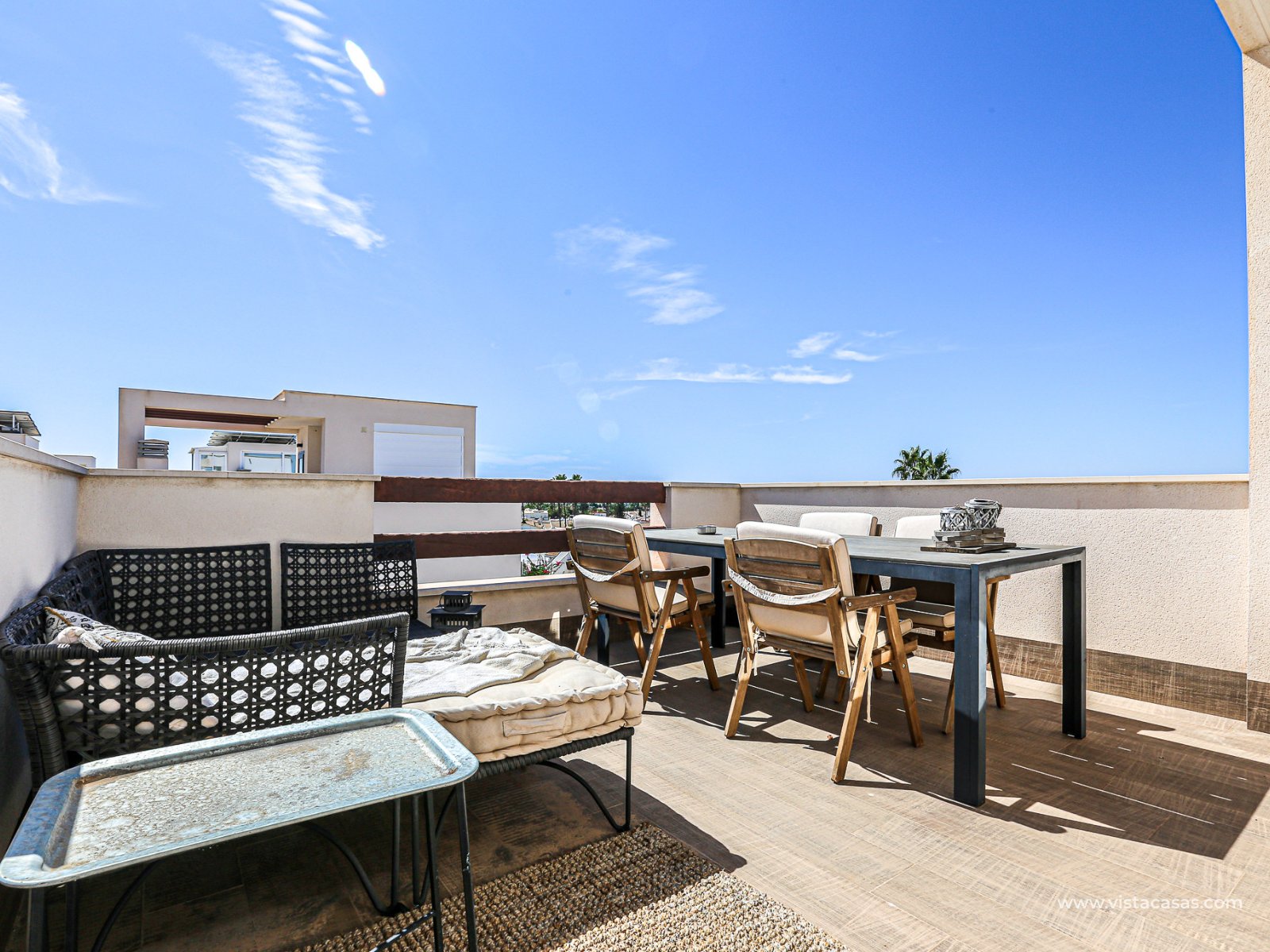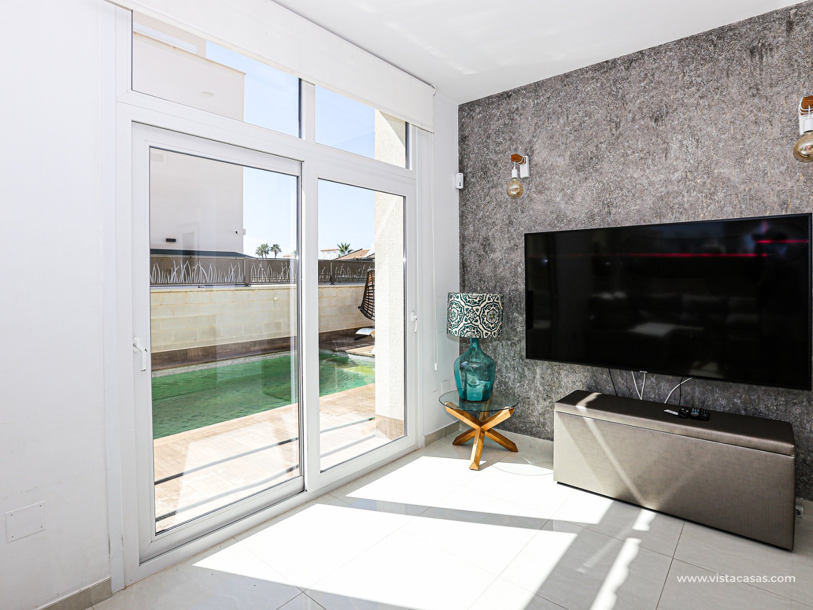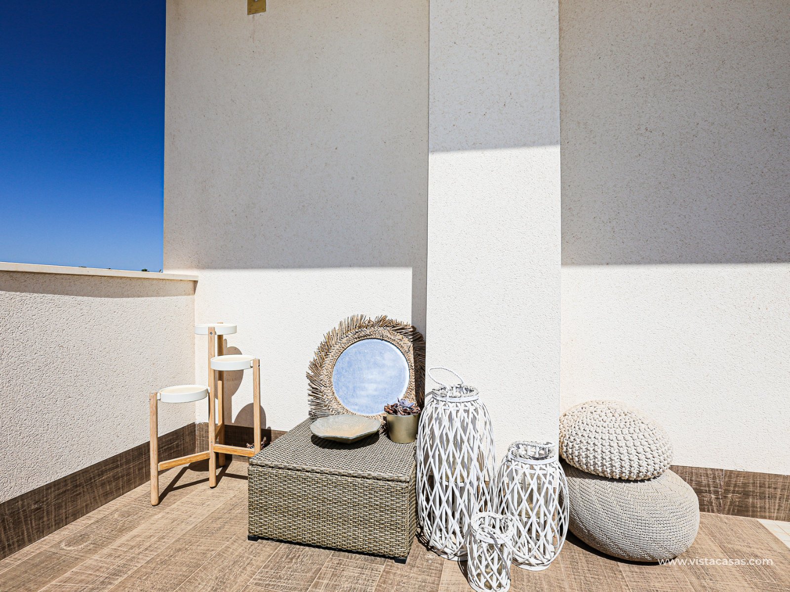 We are delighted to present this exclusive detached villa, located in the prestigious residential area of Doña Pepa, Ciudad Quesada (Rojales). The property is situated at the end of a quiet access road and benefits from a fully private entrance with an automatic gate for vehicles. The villa sits on a low-maintenance plot, featuring wood-style paving, decorative planters, a private swimming pool, and a practical outdoor storage room. One of its main highlights is the unfinished basement, offering great potential to be converted into additional living space, perfectly adaptable to your needs. On the ground floor, upon entering, you will find a full bathroom (all bathrooms are equipped with underfloor heating) and a bedroom with access to the exterior. To the left lies the spacious living-dining room together with a modern open-plan kitchen, fully equipped. The villa is fitted with electric shutters, except for the large living room windows. The first floor comprises two additional bedrooms, both with en-suite bathrooms, each with windows for natural light and ventilation. The master bedroom also enjoys a private terrace with open views. The top floor offers a large solarium with 360º orientation, ideal for sunbathing throughout the day and enjoying panoramic views of the Torrevieja salt lakes. This level also includes a second washing machine (the first one is located on the ground floor). The property is equipped with solar panels and batteries, maximising energy savings and efficiency. Conveniently located near Consum supermarket, bars and restaurants, and only 7 km by car from the beaches of Guardamar del Segura, this villa is a perfect choice both as an investment and as a spacious holiday residence on the Costa Blanca. Don’t miss out on this exceptional opportunity. Contact us today to arrange a viewing.