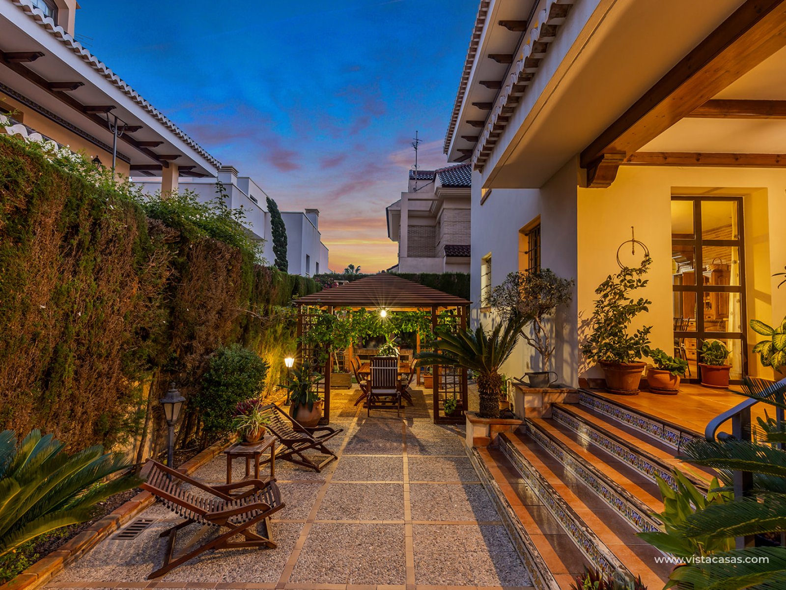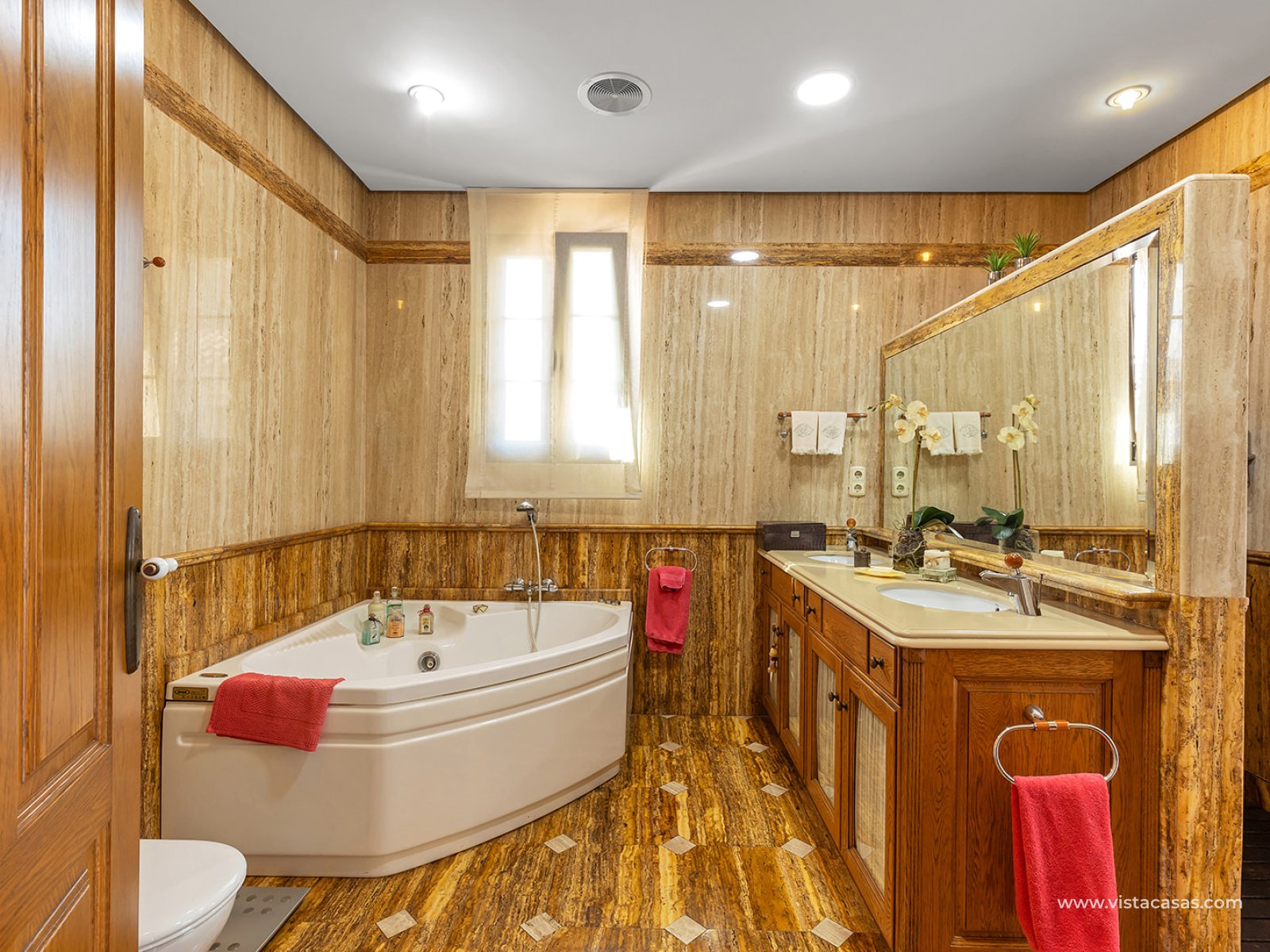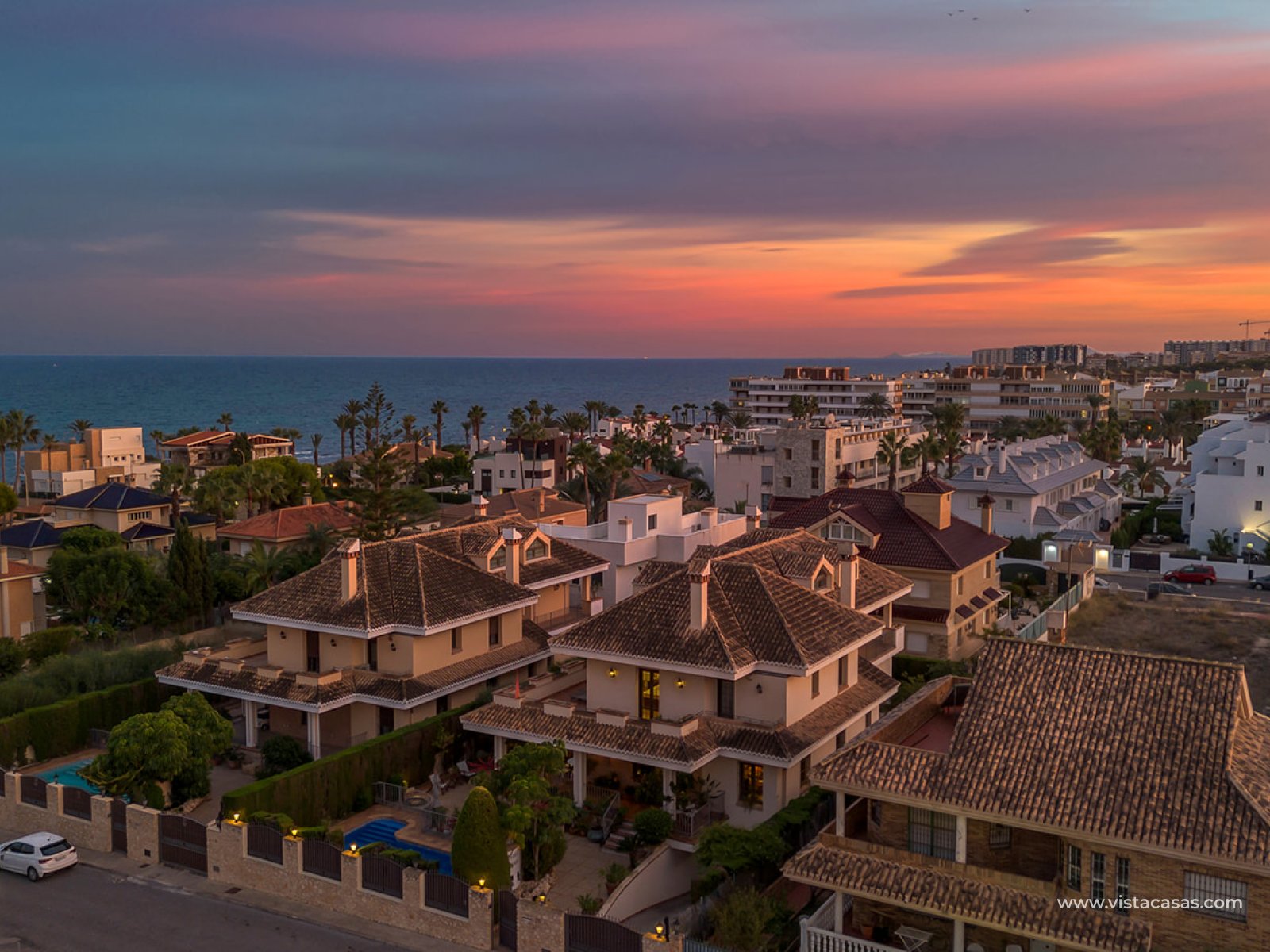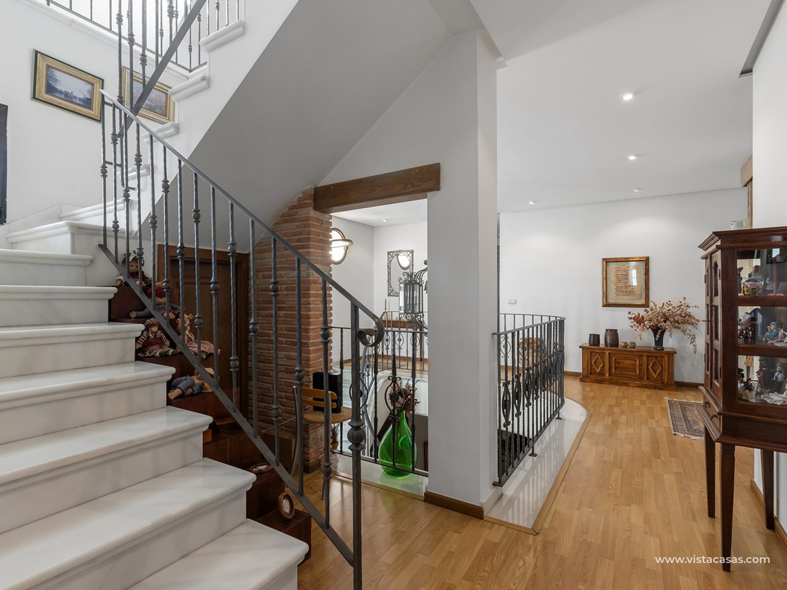Discover this luxury detached villa for sale in La Veleta, Torrevieja (Costa Blanca South) — one of the most exclusive and sought-after areas for international buyers looking to buy a property near the sea in Spain. Built on a 700 m² plot, this stunning home offers more than 700 m² of constructed area across several levels, combining elegant Mediterranean architecture with the comfort of a modern home. The exterior features traditional tiled roofs, wooden beams, and spacious terraces surrounded by lush greenery. On the main floor, you’ll find a bright living room with fireplace, an elegant dining area, a charming music room, and a fully equipped kitchen finished in natural wood and granite. The interiors are warm and inviting, with handcrafted ceramic floors, ironwork details, and abundant natural light. Upstairs, the villa features large, sunlit bedrooms, including a master suite with private bathroom and terrace. The attic level offers a versatile open space, perfect as an office or leisure area. Outside, the property offers a private swimming pool, covered terraces, a built-in barbecue and wood oven, and a beautifully landscaped Mediterranean garden. The basement includes a spacious garage for multiple vehicles, storage, and a utility room. Located in the prestigious La Veleta residential area, this property enjoys peace, privacy, and proximity to the sea — just a few minutes from Torrevieja’s best beaches, international schools, supermarkets, and restaurants. A perfect opportunity for those seeking to buy a luxury villa in Spain — ideal as a permanent residence, holiday home, or exclusive investment on the Costa Blanca. Keywords: luxury villa for sale in La Veleta, villa for sale in Torrevieja, Costa Blanca property for sale, Spanish villa near the sea, detached villa with private pool, buy villa in Spain.