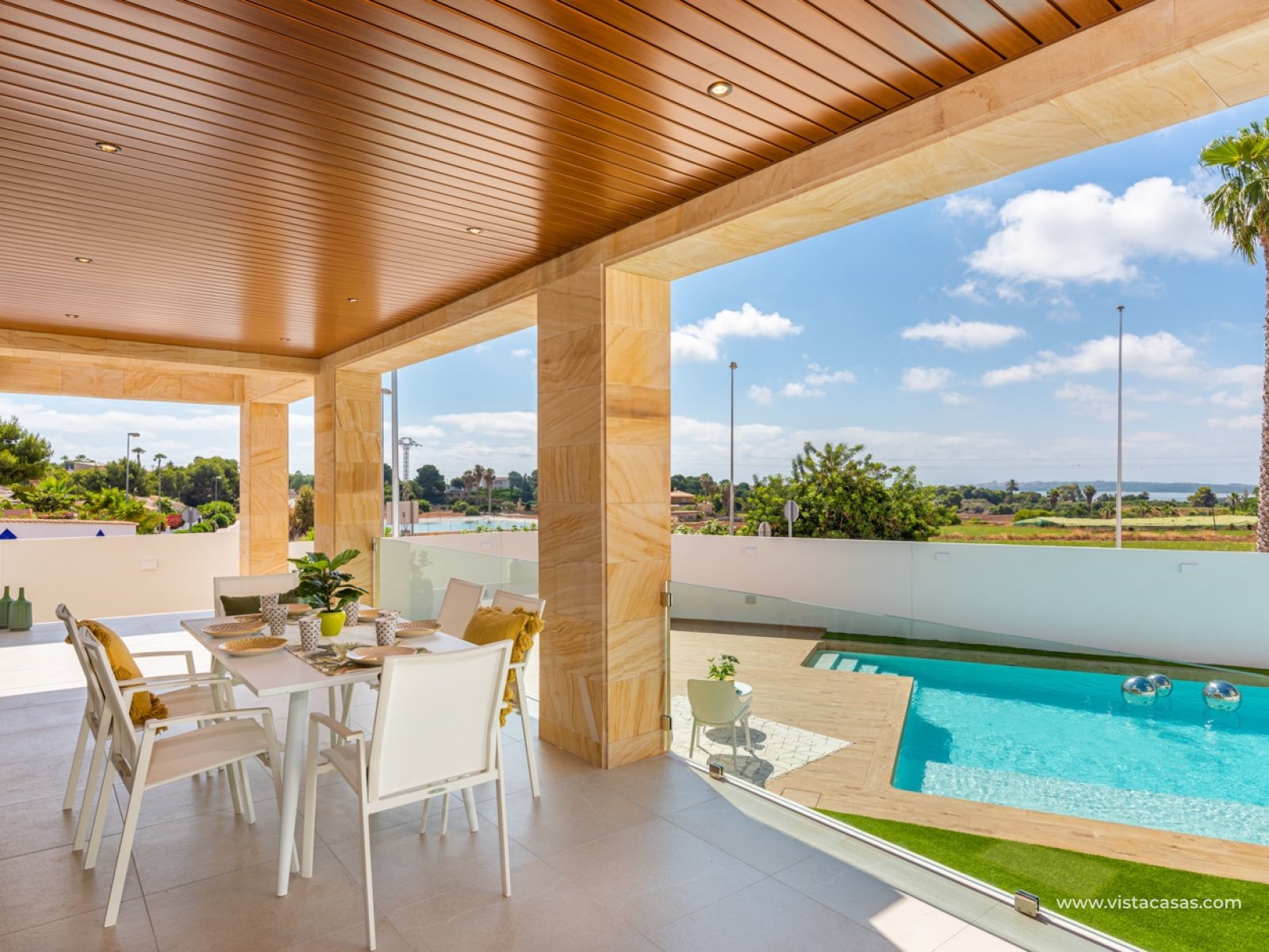 The exterior of these homes is a true oasis of relaxation. Each property features a private garden, perfect for enjoying the Mediterranean climate. The presence of a private pool adds a touch of luxury, allowing for a refreshing dip on the hottest days. Additionally, the terraces and solarium offer additional outdoor leisure spaces, ideal for family gatherings or simply enjoying a moment of tranquility. The pergola provides shade and a cozy spot to rest during the intense sun hours.