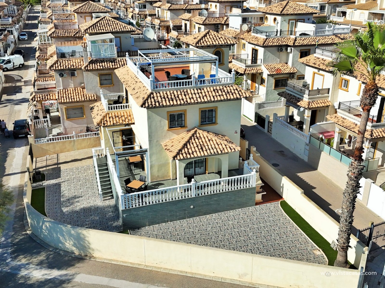 An exceptional opportunity to own one of only three detached villas in the sought-after residential community of San Jose I, Playa Flamenca. Perfectly positioned on a sunny corner plot, this spacious 4-bedroom, 3-bathroom villa enjoys a privileged location just a few steps from the communal pool and within easy walking distance of Zenia Boulevard, as well as a great selection of bars, restaurants, and supermarkets.