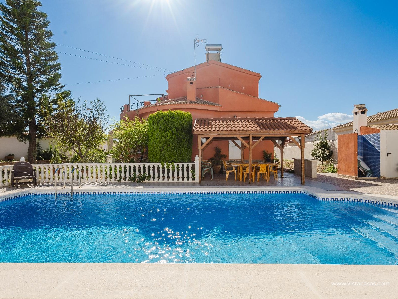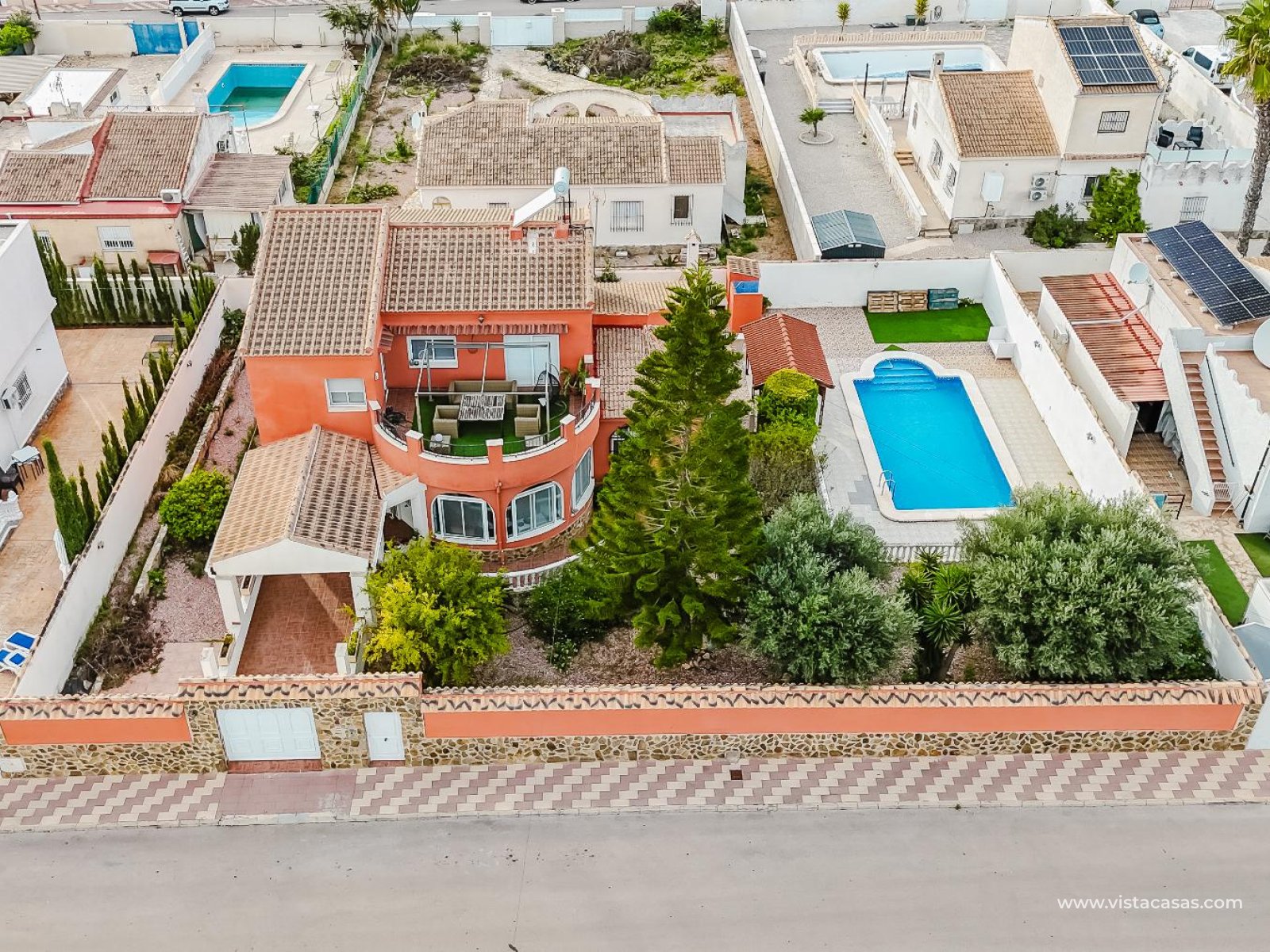 Your Mediterranean Oasis in Torrevieja Detached Villa with Private Pool and Two Homes in One Experience the true Mediterranean lifestyle on the Costa Blanca in this stunning detached villa with a private pool, located in the peaceful and highly sought-after La Siesta Urbanization (Torrevieja).For €449,000, enjoy a charming Mediterranean-style home perfect for large families or as a dual-living investment, completely ready to move in. Featuring 6 spacious bedrooms and 3 bathrooms. Villa Layout Ground Floor (Main Residence) Fully equipped independent kitchen Bright and spacious living and dining room with direct access to the garden 4 large bedrooms 2 full bathrooms Direct access to the private pool area, garden, and on-site garage Upper Floor (Modern Guest Apartment) Open-plan modern kitchen 2 bright and spacious bedrooms 1 full bathroom Independent laundry closet Private terrace of approximately 28 m², southeast facing ideal for sunny breakfasts or relaxing Mediterranean evenings General Features Built area 222 m² Private plot 814 m² Private pool with landscaped garden On-site garage Year built 1988 Condition Excellent, ready to move in IBI 675,88 € Living in Torrevieja Means Quality of LifeWith over 300 days of sunshine per year, Torrevieja blends warm climate, Mediterranean cuisine, social life, and nature.Enjoy the Promenade, Marina, Central Market, and the breathtaking views of the Natural Park of Las Lagunas de La Mata and Torrevieja, all just minutes away.Only 10 minutes (4.5 km) from the Blue Flag beaches of La Mata and Los Locos, and just 3 km from the famous Pink Lagoon of Torrevieja, this villa offers an incomparable natural setting.Nearby, youll find restaurants, bars, supermarkets, pharmacies, shopping centers (Habaneras and Carrefour), and the Alicante Airport only 35 minutes away. This villa is a unique opportunity space, location, and Mediterranean charm in one of the most desirable areas of the Costa Blanca. Call us today and schedule your visit! Your new home in Torrevieja awaits.
