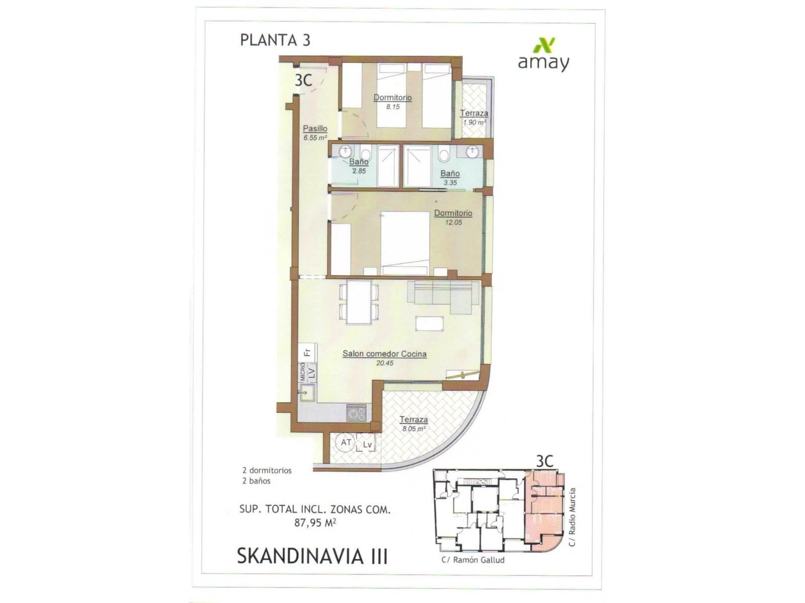 New build apartment for sale in Torrevieja. The apartment is located on the 3rd floor, and it offers 2 spacious bedrooms, 2 bathrooms (one e-nsuite), an open-plan living and dining area and a modern kitchen. The complex offers a public roof terrace with communal pool for its residents. Centrally located just a few hundred metres from the sandy beach. The promenade and local amenities are also within walking distance. Contact us for more information.