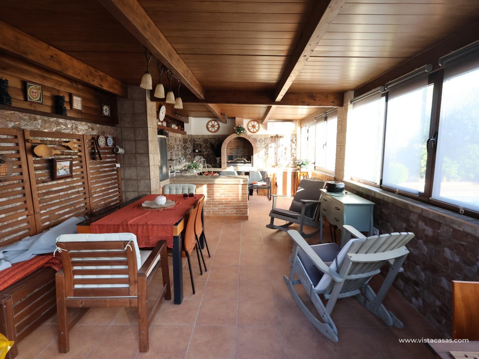 Los Balcones. Impressive detached villa on a corner plot, facing a park and just steps from the tennis club.. . Set on a generous 800 m2 plot, this property stands out for its privacy, space, and comfort. The main house, distributed over two floors with a built area of 311 m2, features:. . • 5 bedrooms and 3 bathrooms. • Spacious living-dining room with fireplace. • Large fully equipped independent kitchen. • Solarium with open views. • Enclosed barbecue area. • Private pool and driveway for several vehicles. . Additionally, it includes a separate guest house, ideal for visitors or rental purposes, offering 1 bedroom, bathroom, living room, and kitchen.. . The property is sold furnished and equipped with air conditioning, making it the perfect choice for large families or as an investment close to all amenities.