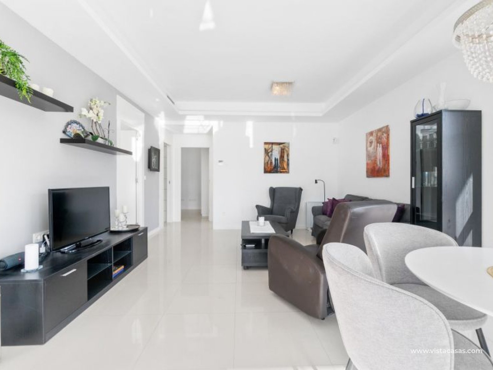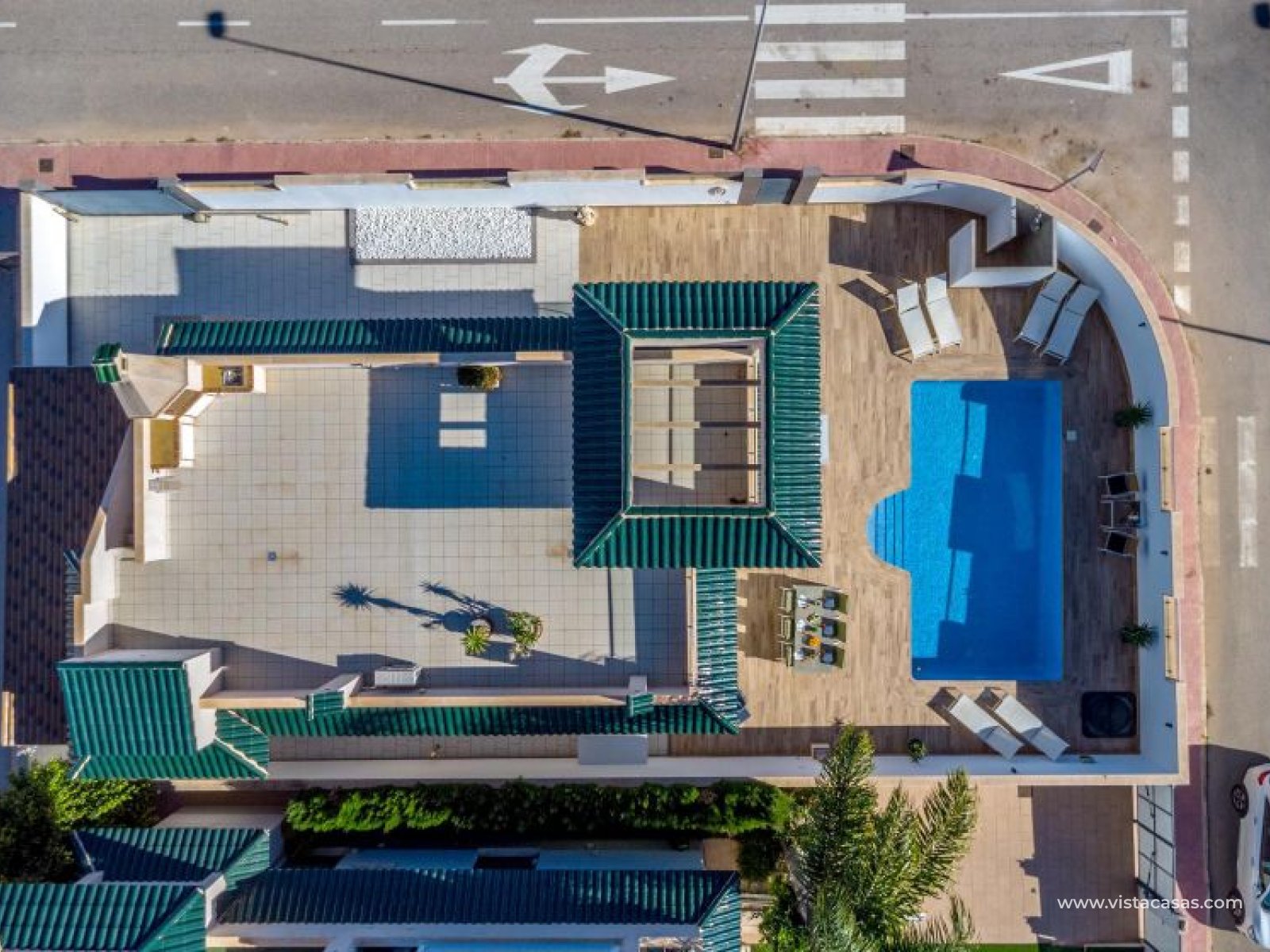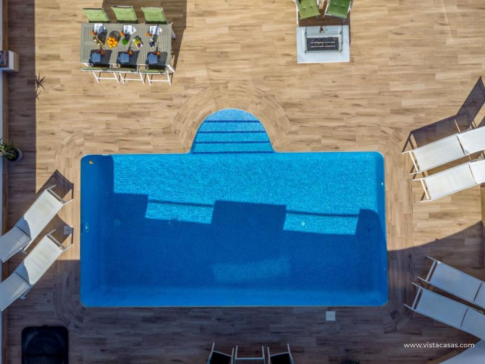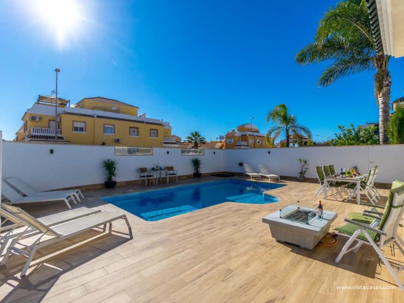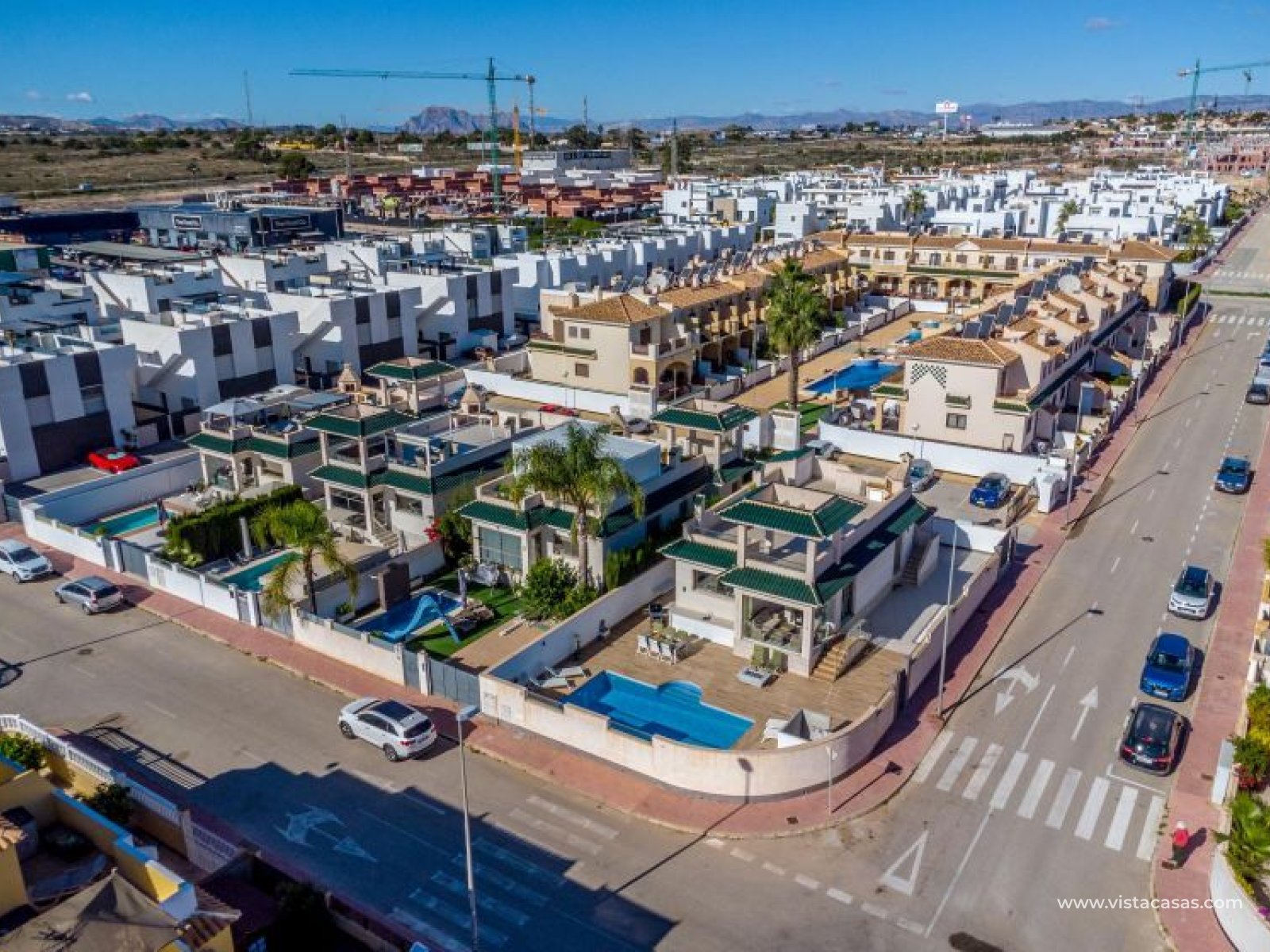 Discover this stunning detached villa in Ciudad Quesada- Lo Marabú — a home that perfectly blends Mediterranean charm with modern contemporary design. Set on a 420 m² plot with 104 m² of built area all on one level, this property offers a bright, comfortable lifestyle ideal for year-round living or holidays. Located in a privileged area surrounded by all amenities — supermarkets, pharmacy, restaurants, bars and more — this villa is perfect as a permanent residence or holiday home. Ciudad Quesada is known for its warm, international and vibrant atmosphere, offering an excellent quality of life. The property is located just steps away from La Marquesa Golf Course, an ideal setting for golf enthusiasts to enjoy relaxed rounds surrounded by nature. It is also only a short drive from the beautiful beaches of Guardamar and La Mata, known for their wide stretches of fine sand, clear waters, and a perfect atmosphere for relaxation or outdoor activities. The plot is fully tiled, offering various relaxing spaces. The summer kitchen is perfect for outdoor dining with family or friends, and the highlight of the exterior is its private swimming pool, a true delight during warm summer days. The property also features on-plot parking, a pergola, an automatic gate, and a storage room. From the garden, an external staircase leads to a spectacular 100 m² rooftop solarium, fully equipped with another summer kitchen and barbecue — an ideal setting for long evenings outdoors. Inside, a cozy glazed terrace with folding glass panels opens into a spacious living-dining area with a fully equipped open-plan kitchen. Everything is conveniently located on one floor: three bedrooms, including one with an en-suite bathroom, plus an additional guest bathroom. The property is sold fully furnished and in impeccable condition, ready to move into. Its south-facing orientation ensures natural light all day long. Just minutes from the beautiful beaches of Guardamar and close to the centre of Ciudad Quesada, this home offers space, elegance, modernity and comfort. Come and experience it for yourself — book your viewing today!