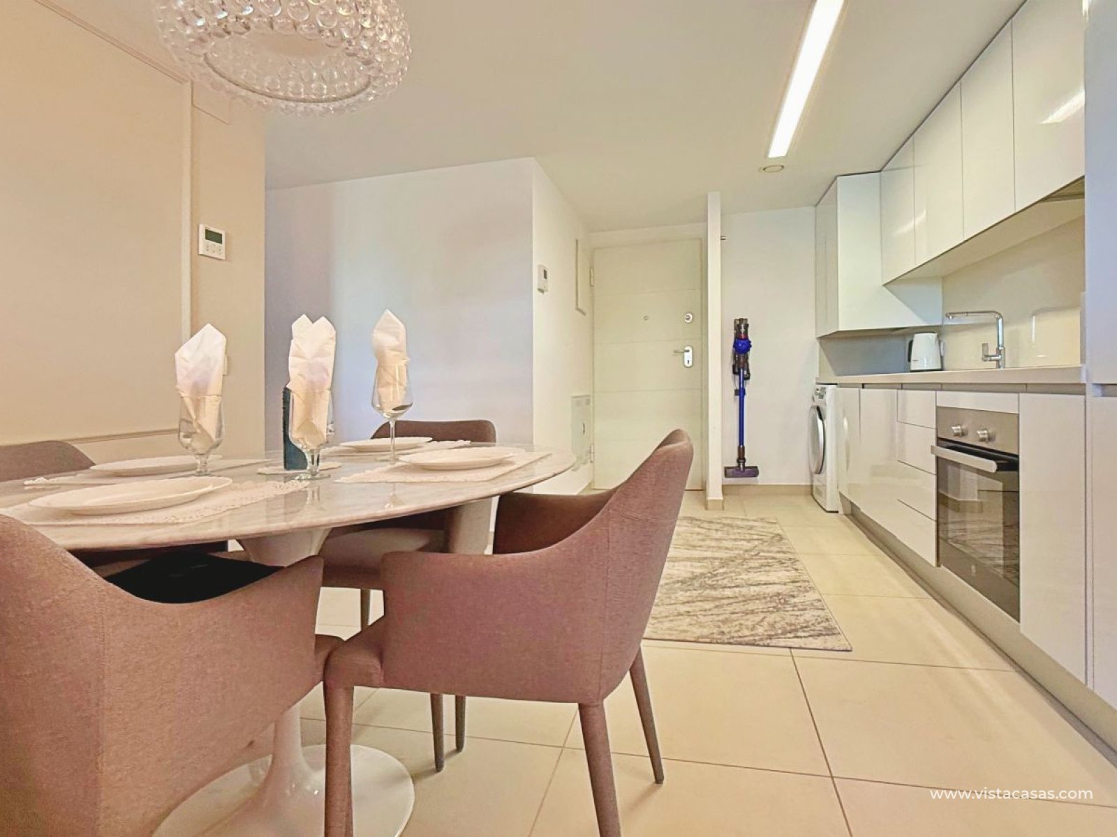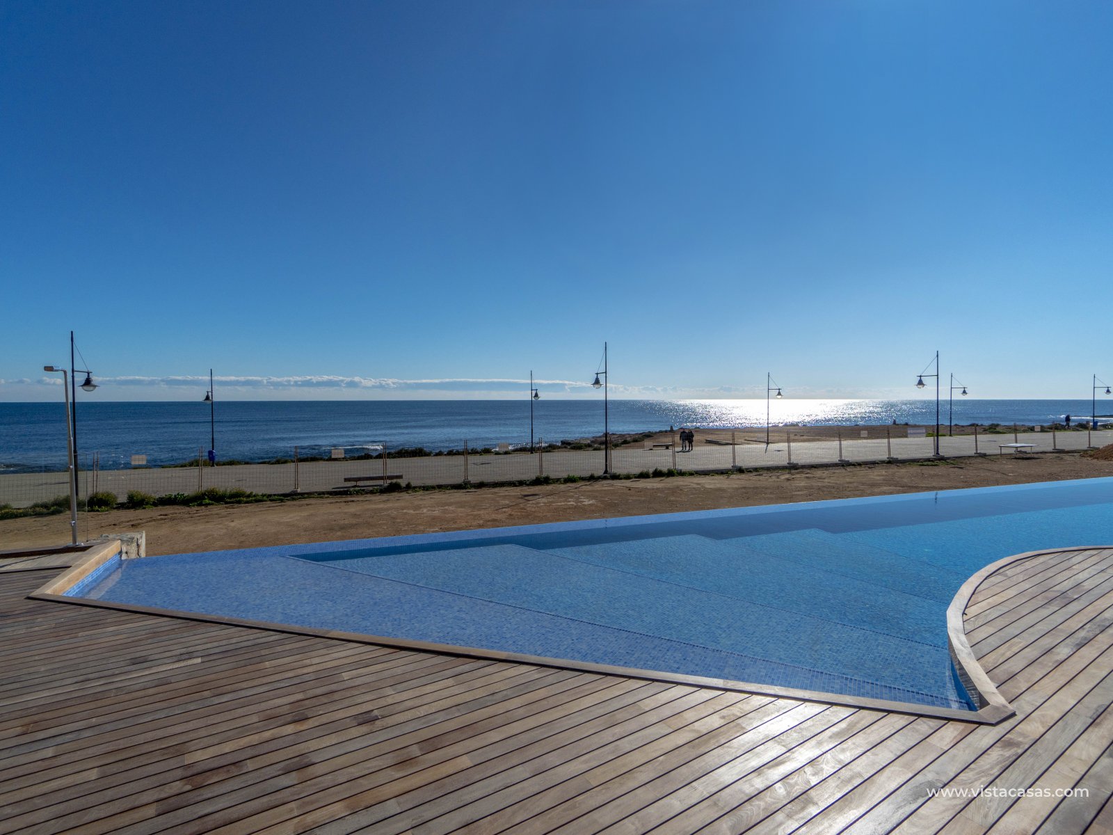 This elegant 2-bedroom, 2-bathroom apartment is located frontline, offering stunning open sea views. Its modern and bright design creates a cozy and relaxing atmosphere, ideal both for year-round living and for enjoying holiday stays. The apartment is sold fully furnished, equipped with high-quality furniture in harmonious tones and wooden details that add warmth and style. The layout is functional and comfortable, with spacious and well-utilized areas. In the area, you will find pools, including a heated pool, and a paddle tennis court, perfect for enjoying leisure time and sports activities without leaving the complex. This property also includes underground parking and a private storage room, providing additional practicality to your living experience. Located in Punta Prima, one of the most sought-after areas of the Costa Blanca, the apartment offers a peaceful and safe environment, close to the beach, with easy access to supermarkets, restaurants, bars, and local services. The area is ideal for sea and nature lovers and is a short drive from shopping centers, golf courses, and other Costa Blanca attractions.