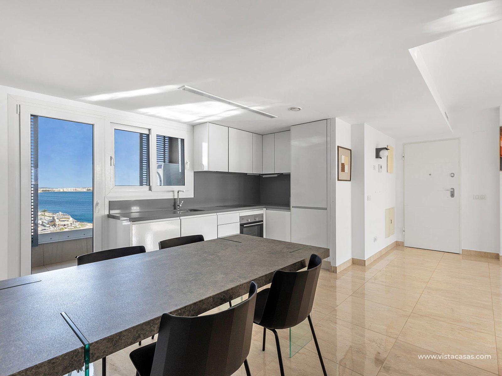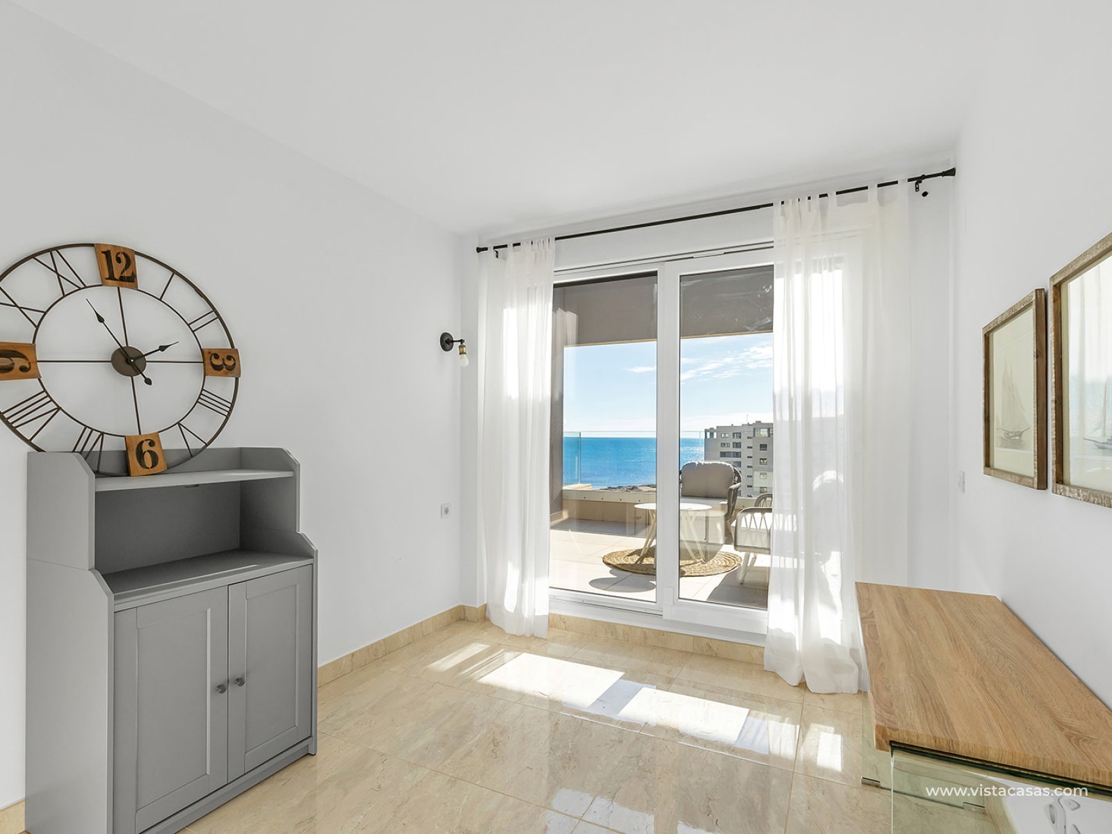 We present this magnificent 3-bedroom, 2-bathroom penthouse with 139 m², located in the prestigious Panorama Mar residential complex, one of the most modern and highly regarded developments in Punta Prima. Situated frontline, it offers stunning open views of the Mediterranean and a privileged setting for those seeking quality, comfort, and exclusivity by the sea. The property features a spacious and bright 28 m² south-facing terrace, perfect for enjoying the sun all day, the sea breeze, and unbeatable panoramic views. The interior layout is modern and functional, with generous rooms filled with natural light, designed to maximize comfort. The penthouse includes an underground parking space and a storage room, providing additional convenience and extra storage. Panorama Mar is a modern frontline complex that stands out for its large swimming pools, including a heated pool, landscaped areas, and relaxation zones with sea views. It offers an exclusive, secure, and well-maintained environment, ideal for enjoying the Mediterranean lifestyle all year round. Located in one of the most privileged areas of the Costa Blanca, Punta Prima combines tranquility and convenience. The property is just a few steps from the beach and surrounded by restaurants, supermarkets, and leisure options, while being very close to Zenia Boulevard and several prestigious golf courses.