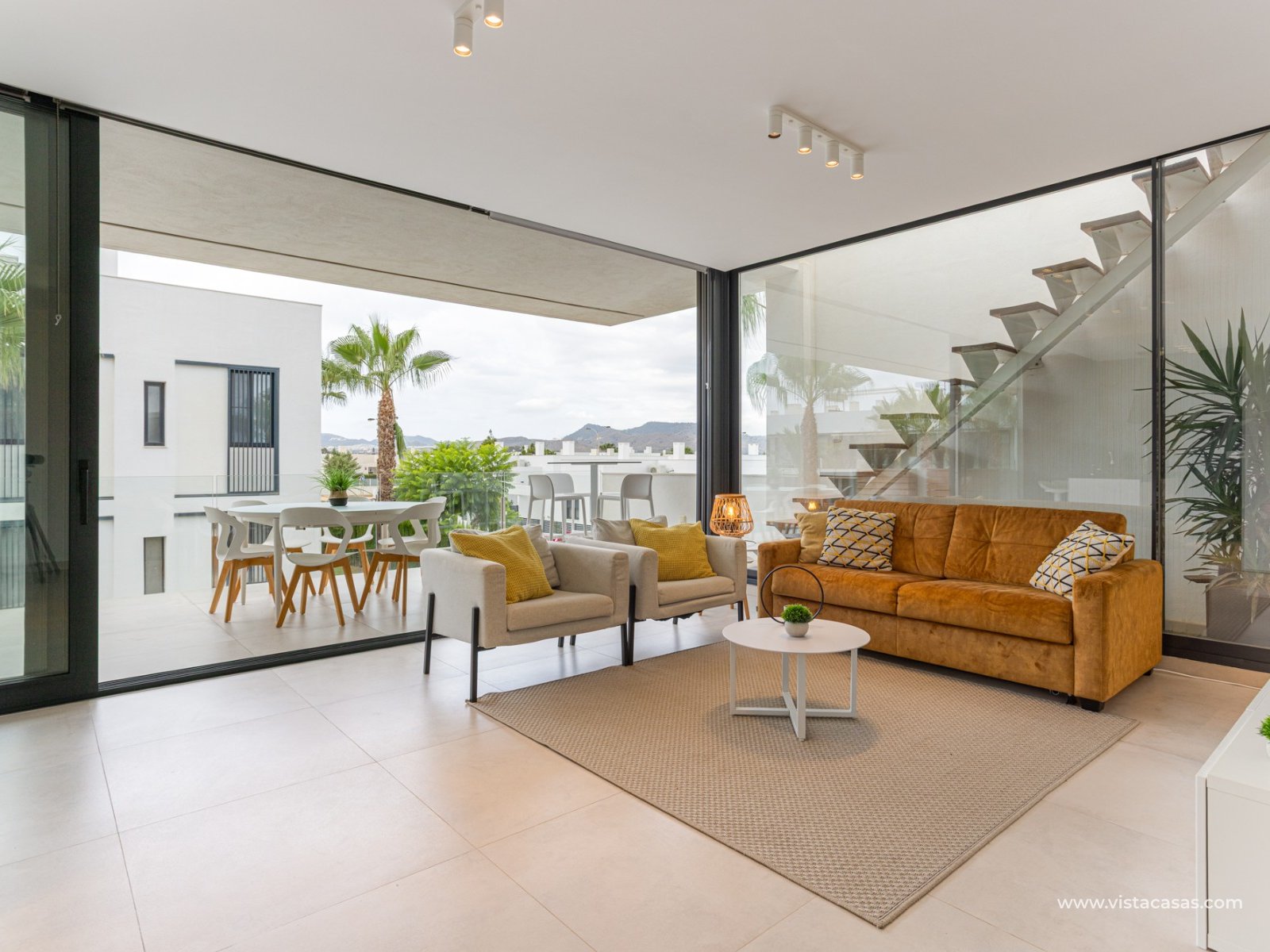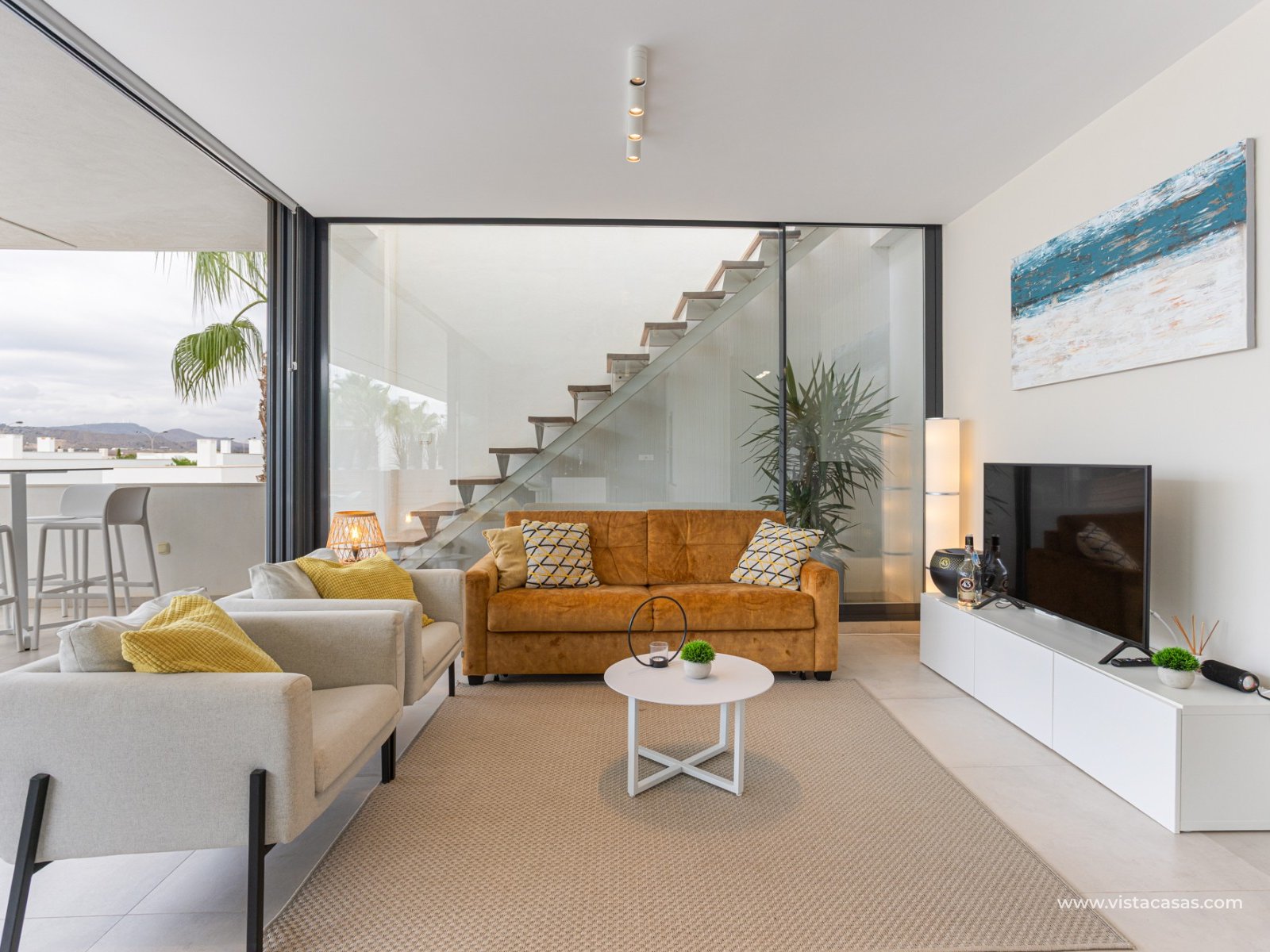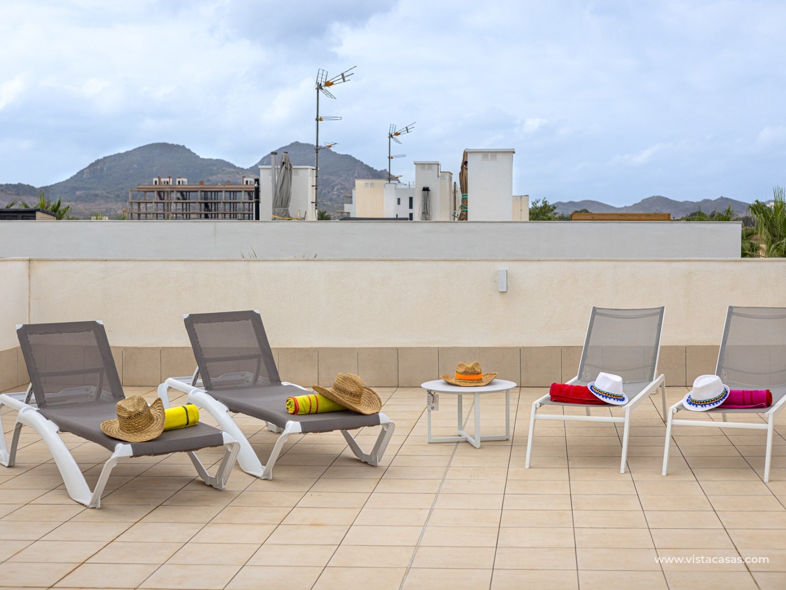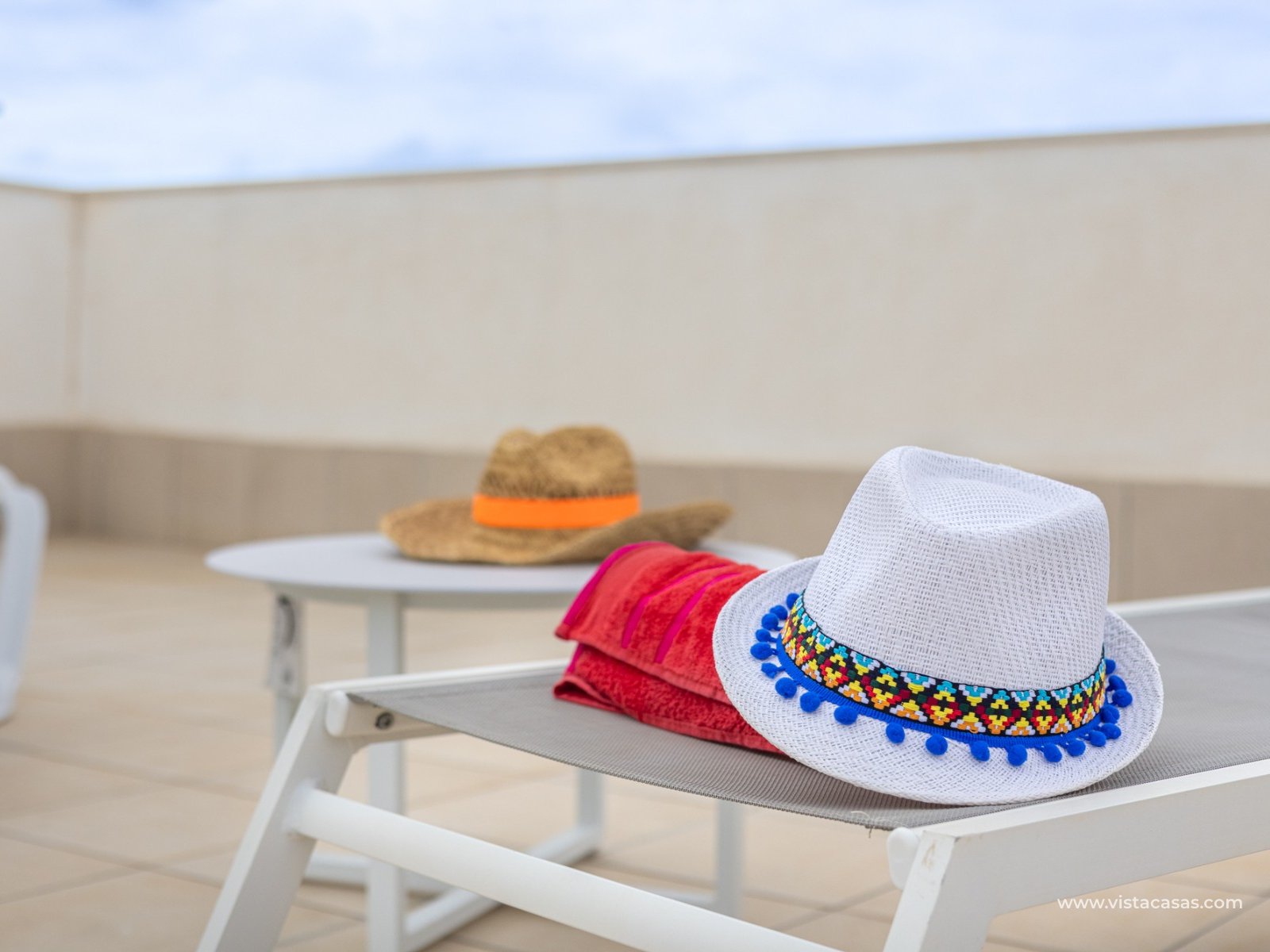 We present this beautiful property, located on the first floor of a modern, well-maintained building in the charming coastal town of Mar de Cristal, known for its peaceful atmosphere, proximity to the Mar Menor, and excellent connections to amenities and entertainment venues. With a built area of 113 m², this apartment stands out for its natural light, functional layout and excellent condition, making it ideal for moving into without renovation. Layout and spaces: 3 spacious bedrooms with fitted wardrobes, perfect for families or those needing extra space to work from home. 2 complete bathrooms, one en suite, designed with modern, high-quality materials. Elegant living-dining room with direct access to a private terrace, perfect for enjoying the Mediterranean climate. Open plan kitchen, fully equipped with all necessary appliances and a breakfast bar, ideal for meetings and informal dining. Separate laundry room and storage room provide functionality and extra storage space. Extras and equipment: Air conditioning is installed and pre-installed in the other rooms. Fully furnished and ready to move into. Armored door for extra security. Intercom. Access to a fantastic communal swimming pool and sun terrace, ideal for relaxing on summer days. Private parking space and storage room included in the price. Prime location: Just a 5-minute walk from the beaches of the Mar Menor. 30 minutes drive from the nearest airport. Within walking distance of restaurants, shops, supermarkets and entertainment venues (10 minutes). Close to prestigious golf courses (10 minutes), such as La Manga Club. With a south-facing position, this property enjoys excellent natural light throughout the day, making it a warm, welcoming and highly energy-efficient home.
