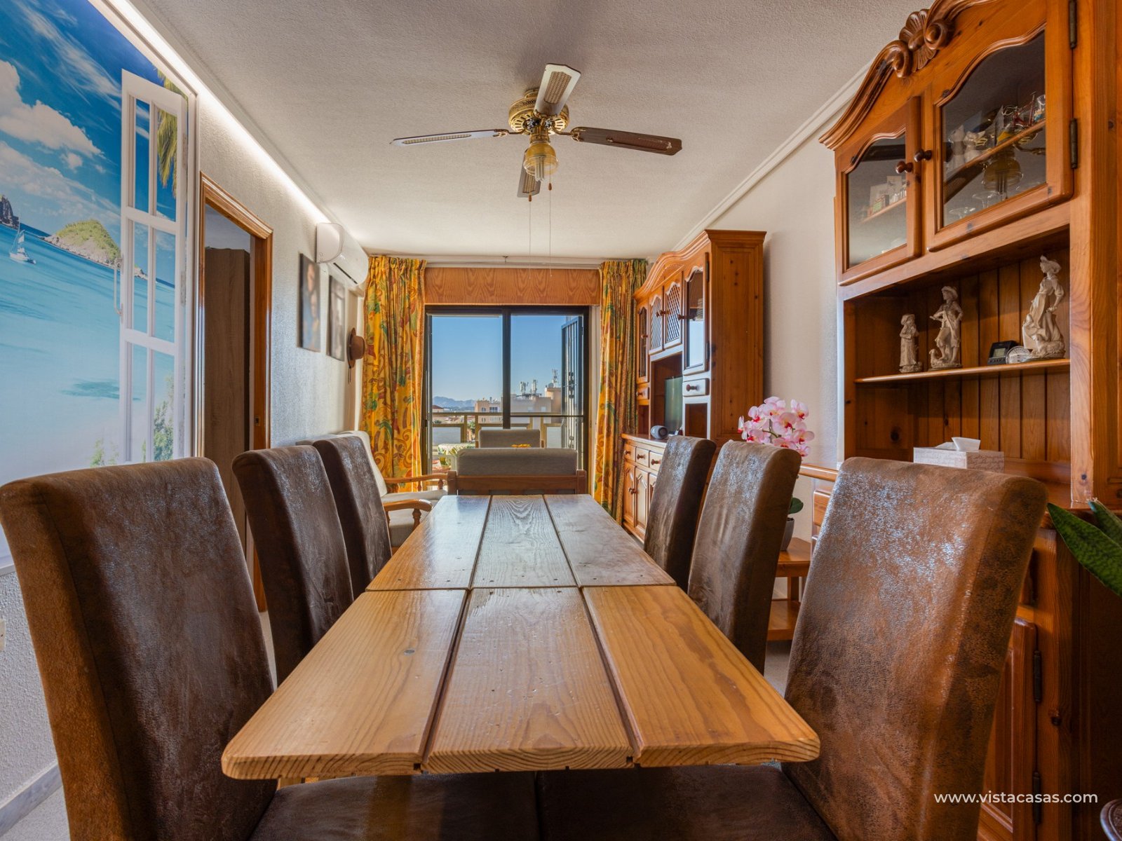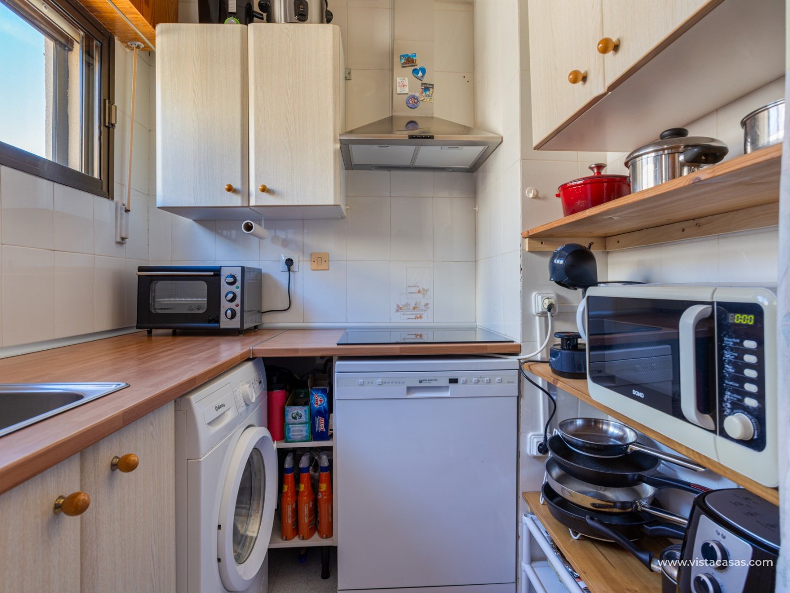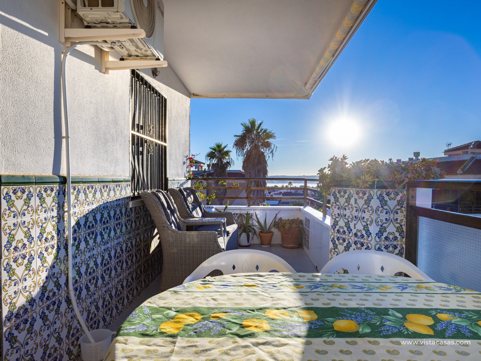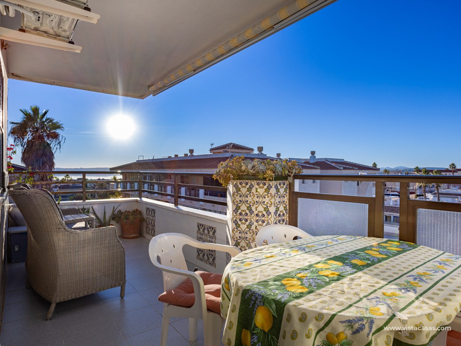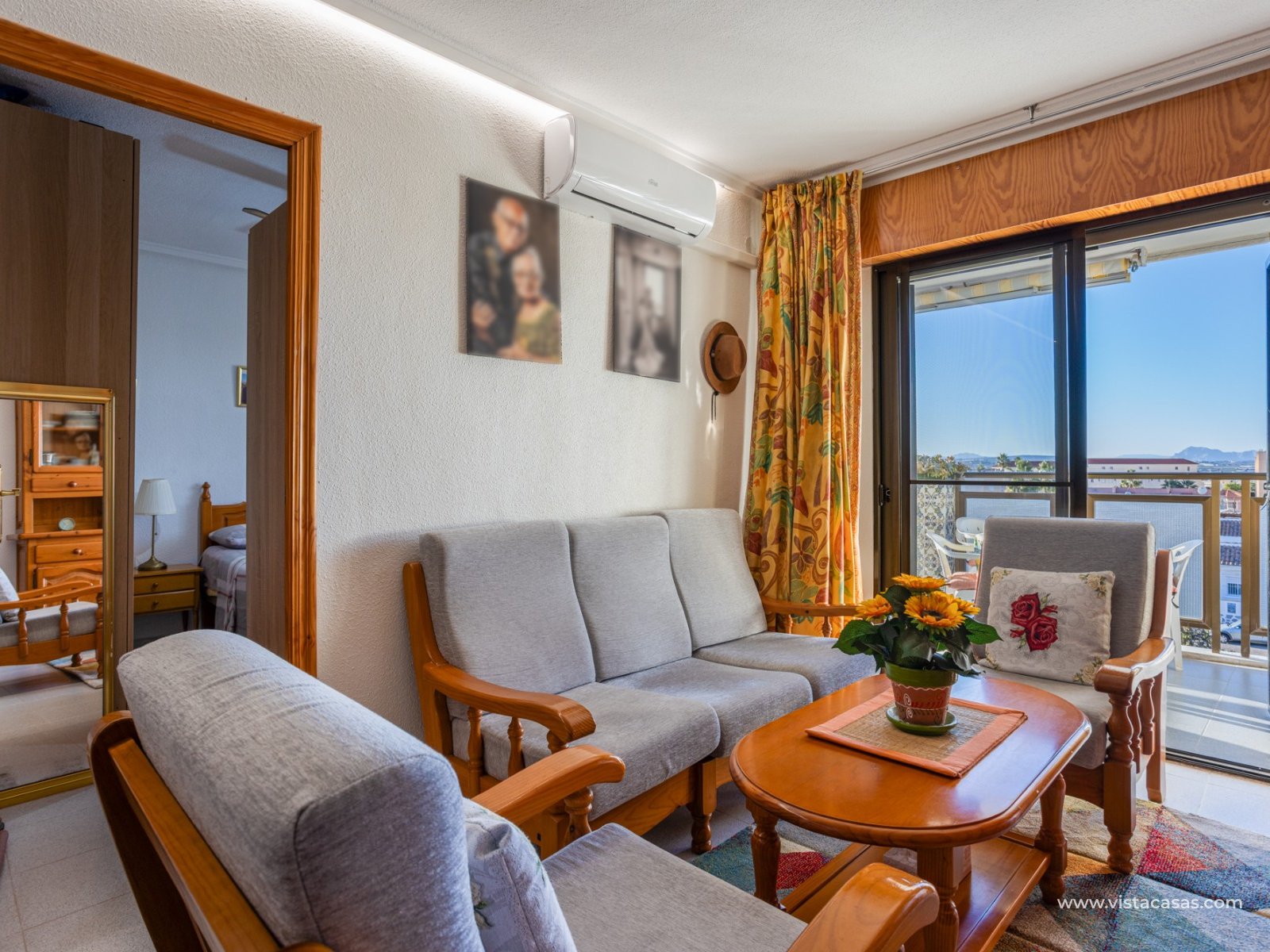 Discover this beautiful apartment on the second floor of a quiet, well-maintained building in Urb. San Luis, one of Torrevieja's most convenient and accessible neighborhoods. With a living area of 70 m², this property offers a practical and well-designed layout, designed for comfortable year-round living. Upon entering, you'll find a spacious and bright living/dining room with direct access to a cozy terrace, perfect for enjoying the afternoon sun, relaxing with a good book, or spending time with friends. There's also a small storage cupboard in white aluminum, which always comes in handy. The west-facing position ensures warm natural light throughout most of the day. The separate kitchen, fully equipped with appliances, is an ideal space for cooking comfortably while maintaining privacy from the communal areas. The apartment features three bedrooms, all with abundant natural light, and a full bathroom that has been recently renovated. The property is in good condition and is sold furnished, so it's move-in ready. It also features air conditioning, a must-have for making the most of the Mediterranean climate. On the roof of the building is a communal solarium where you can sunbathe, relax, and enjoy the pleasant temperatures and panoramic views of both salt lakes in the area. Perfect location for living or vacationing: Located in a quiet yet easily accessible area, you have everything you need within minutes; there's a bus stop just a few minutes' walk from the property. Beach: Just 15 minutes away, perfect for sunrise walks or relaxing afternoons.Airport: 40 minutes away, ideal for frequent travelers.Leisure areas: 5 minutes away, with restaurants, cafes, shops, and amenities. There's an excellent water park just a few minutes away.Golf course: 10 minutes away, an added attraction for sports enthusiasts. This apartment is an excellent choice as a permanent residence, second home, or investment property due to its strategic location and excellent condition.