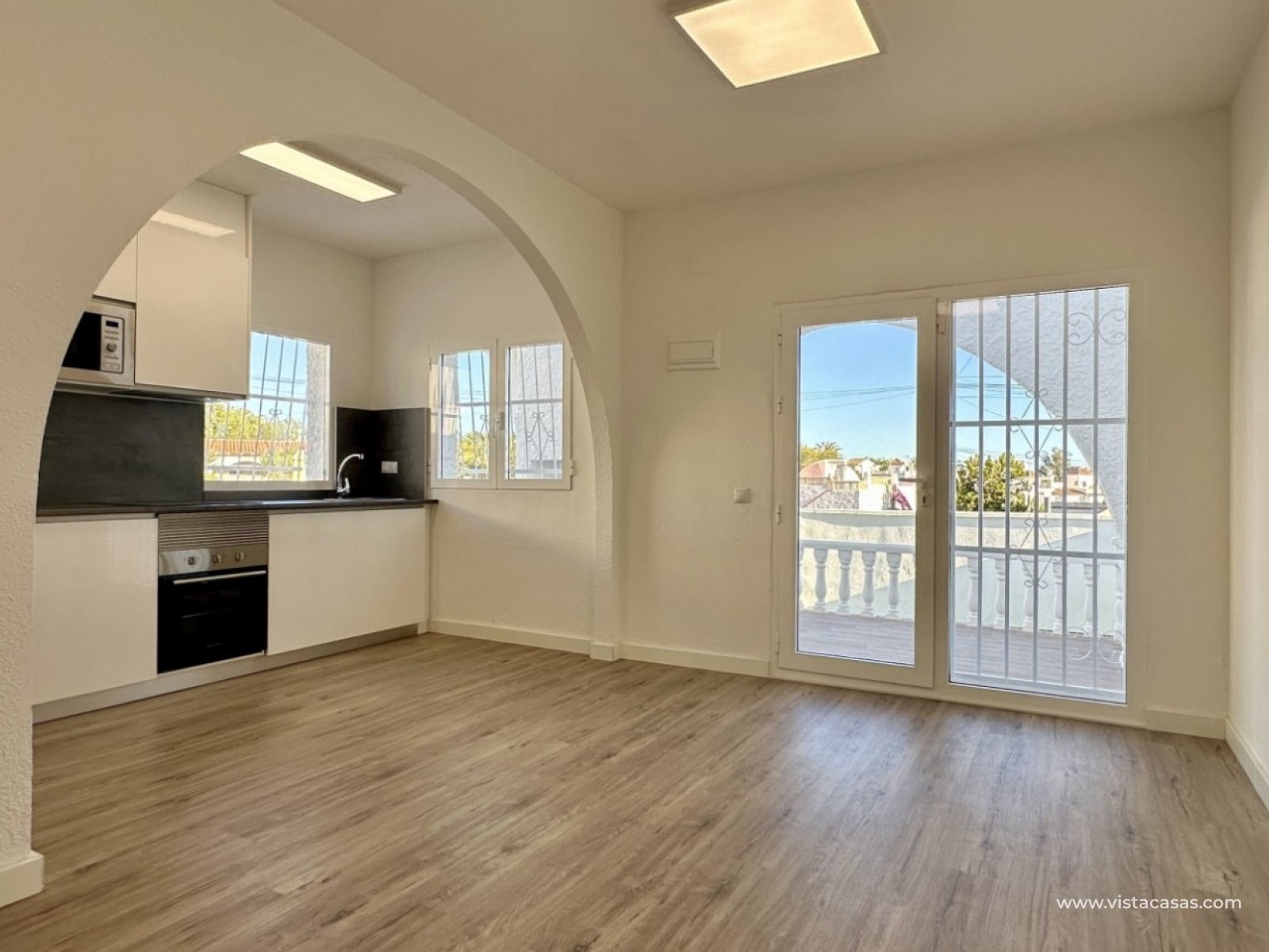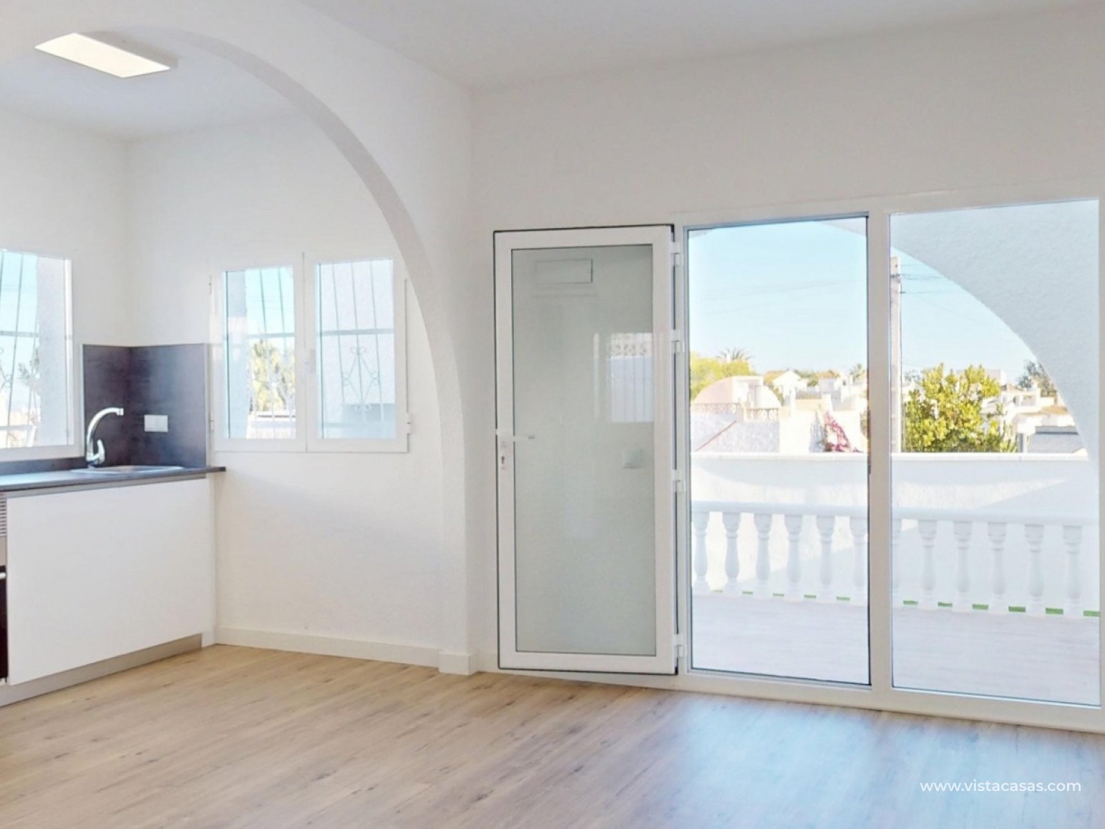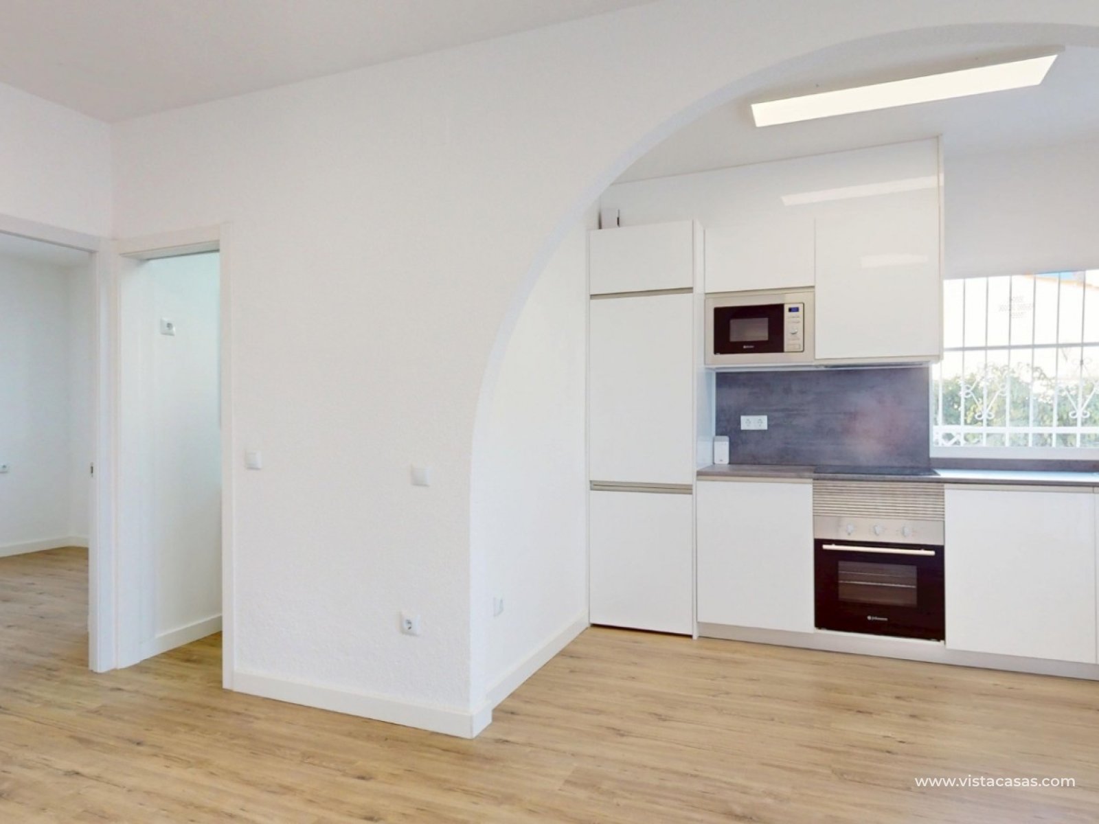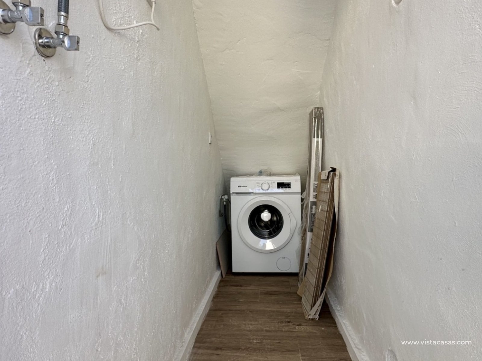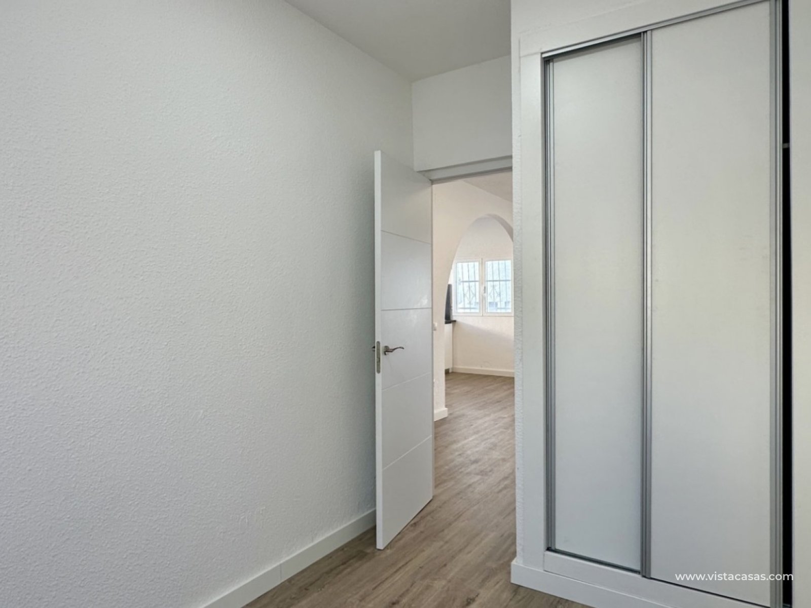 A beautifully renovated, brand-new bungalow now available on the market. Located on a 202 m² plot with 147 m² of private garden, this home offers modern finishes, spacious outdoor areas, and a sunny 48 m² solarium perfect for year-round living. Key Features Home size: 58 m² + 48 m² solariumPlot: 202 m²Storage room includedOption to add a private poolIBI: €144 / yearCommunity fees: approx. €199 / year Renovation Highlights Brand-new wood-effect laminate flooring2 bedrooms1 modern bathroom with walk-in shower and screenFully equipped kitchen with washing machine and dishwasherSolarium with artificial grass and side enclosure Prime Location – Blue Lagoon (Calle Jumilla) 4-minute walk to El Limonar SchoolClose to two golf coursesNear Villamartín Shopping Centre5-minute walk to Marimba Blue Pool & Lounge Bar4-minute walk to Greenlands Blue Lagoon