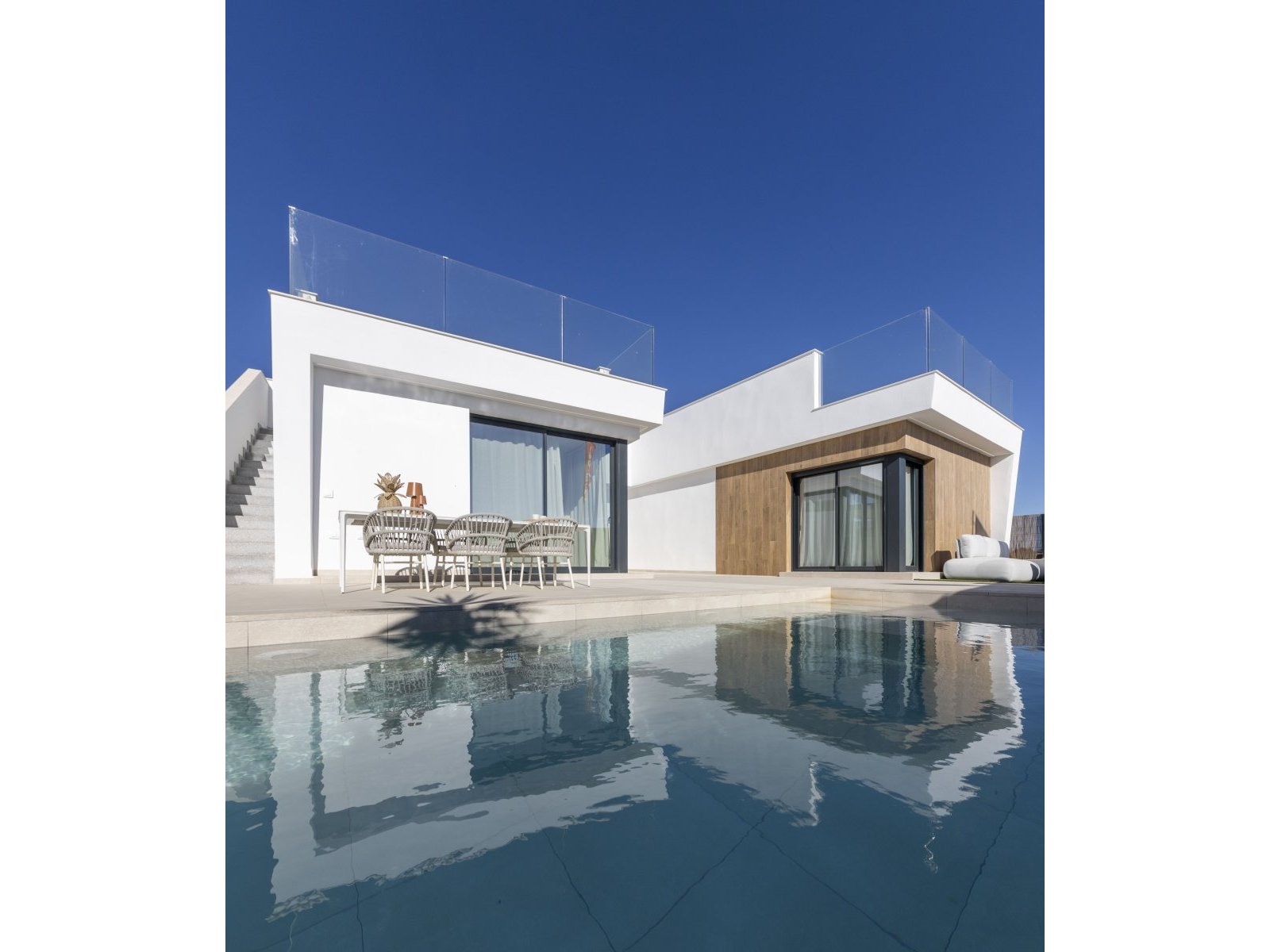 As for the exterior, each property is designed to make the most of the Mediterranean climate. The private gardens provide an ideal space to enjoy outdoor activities or simply relax in the sun. The spacious terraces are perfect for taking in the views and breathing in the fresh air, becoming a privileged place to enjoy the natural surroundings. The private pool in each home adds an exclusive and luxurious touch, allowing residents to enjoy a refreshing swim without leaving home. The pergolas complement these outdoor spaces, providing shade and creating a cozy atmosphere for outdoor gatherings.