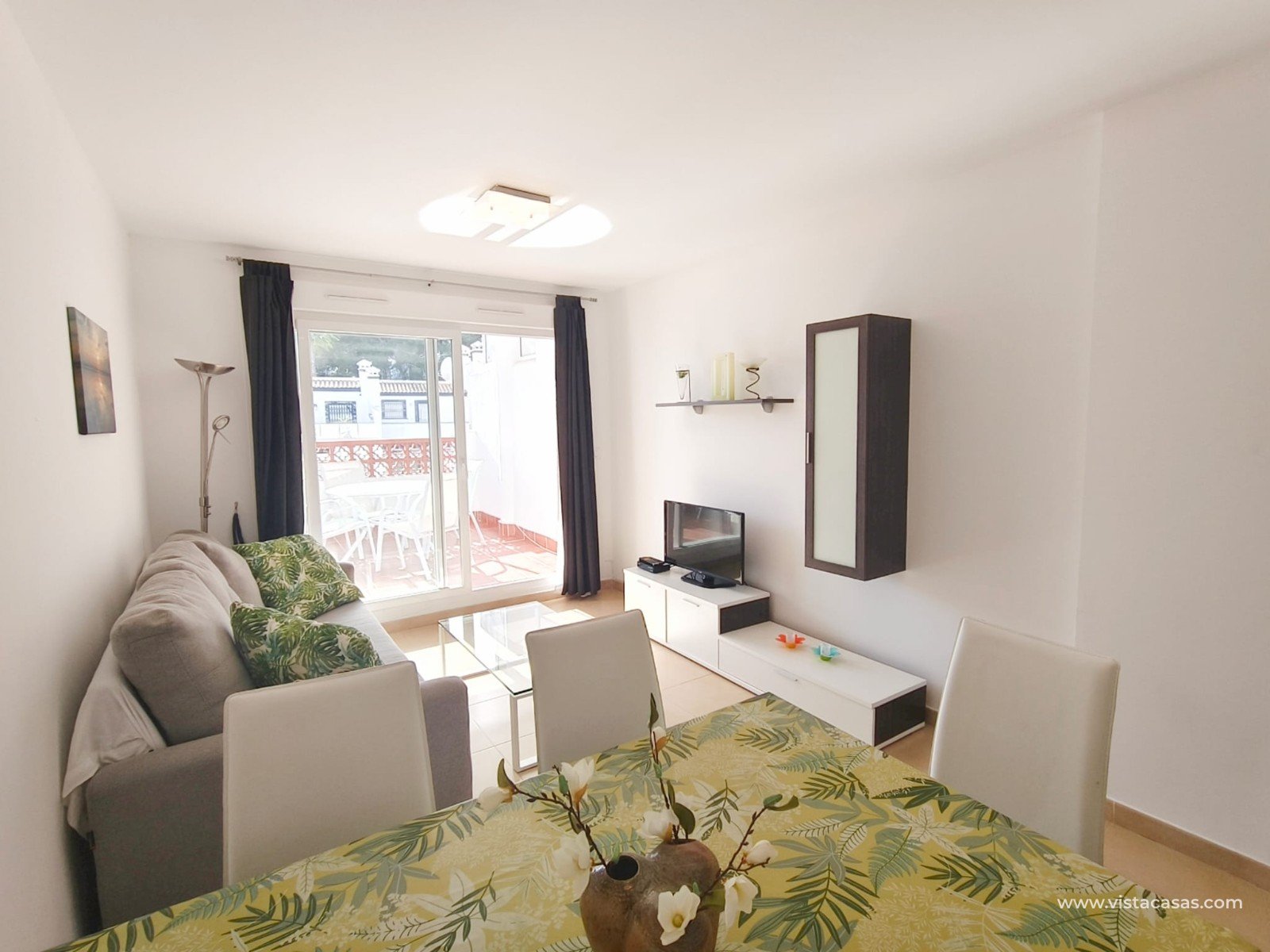 Located on the first floor of a residence with a lift, this bright flat is sold fully furnished and equipped, ready to move into or rent immediately. It comprises two bedrooms, a bathroom, a laundry room, and has central air conditioning ensuring optimal comfort all year round. The south-facing terrace offers a pleasant outdoor space. The property is located within a well-maintained condominium offering numerous amenities: swimming pool, jacuzzi, children's playground, and mini-golf. Ideally located, the residence is only 5 minutes from the shops, bars, and restaurants of La Fuente, and 10 minutes from the beach. For more information or to arrange a viewing, please do not hesitate to contact us.