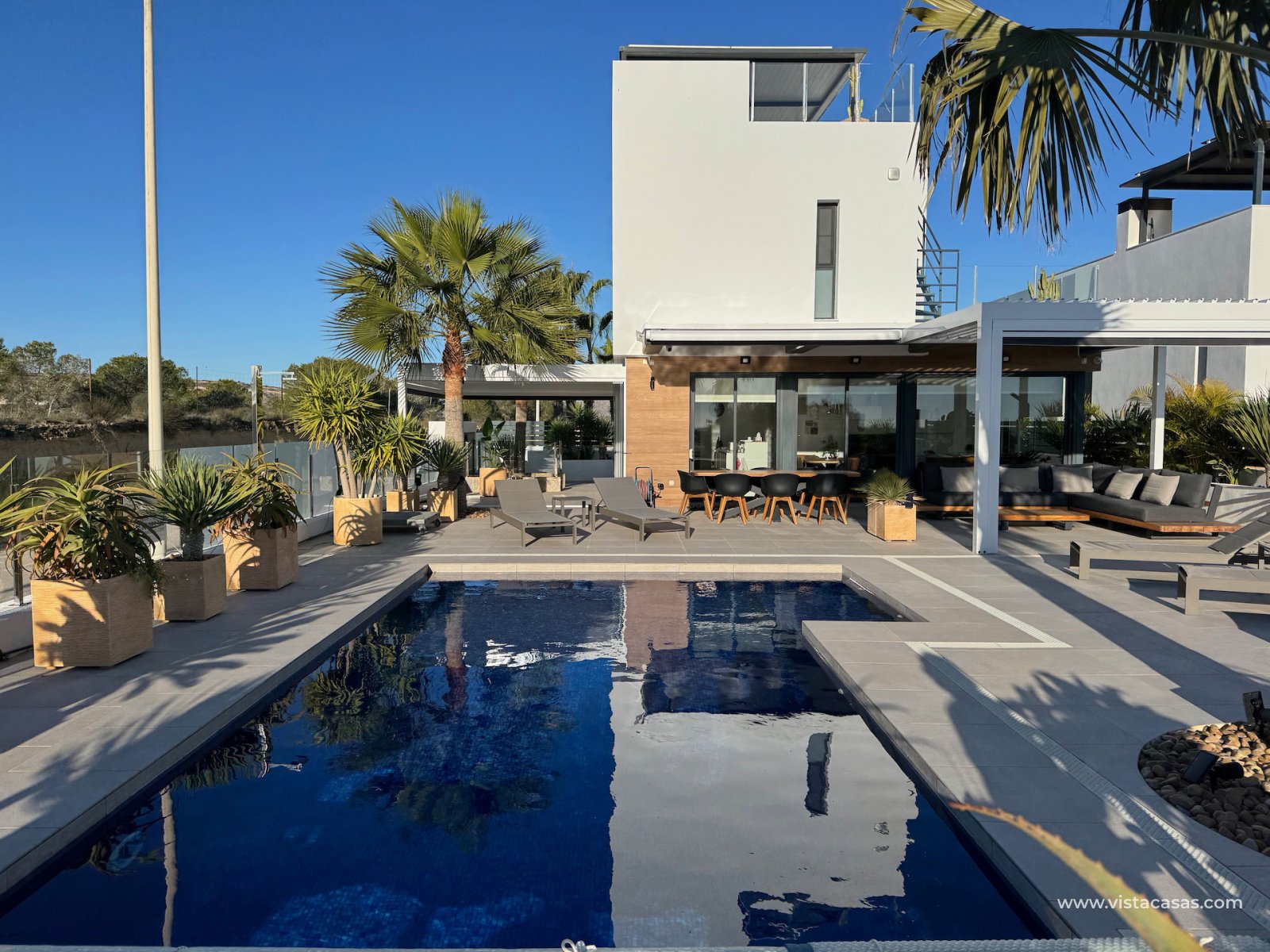 For sale: This stunning detached villa offers comfortable living in the sought-after area of Algorfa, within the prestigious La Finca Golf resort. The villa is a resale property and provides a generous internal space of 253.5 m². Inside, you will find three spacious bedrooms and three modern bathrooms, making it ideal for families or those who enjoy having guests. The villa features a bright and airy open-plan living area with large windows that overlook the pool. There is a central air conditioning system for year-round comfort. The basement offers flexible space, currently used a recreational room with a home cinema, a pool table, and a bar. This is the perfect entertaining zone. A door gives access to the double garage, and there is also a large utility room. Step outside to the private south-facing swimming pool with low maintenance gardens. From the spacious solarium you can enjoy breathtaking panoramic views of the mountains, countryside, and even the sea. Algorfa and La Finca Golf are known for their peaceful atmosphere, well-maintained surroundings, and accessibility to all amenities, including shops, restaurants, and leisure facilities. This superb villa is close to everything you need while providing a tranquil escape. This beautiful home is proudly advertised by Orange Casas. Contact us today to arrange a viewing. KEY FEATURES Private heated pool South facing Huge underbuild entertaining zone Double garage Prestigious location Walking to amenities Solar panels Alarm system with camera system Two beautiful bioclimatic toldos
