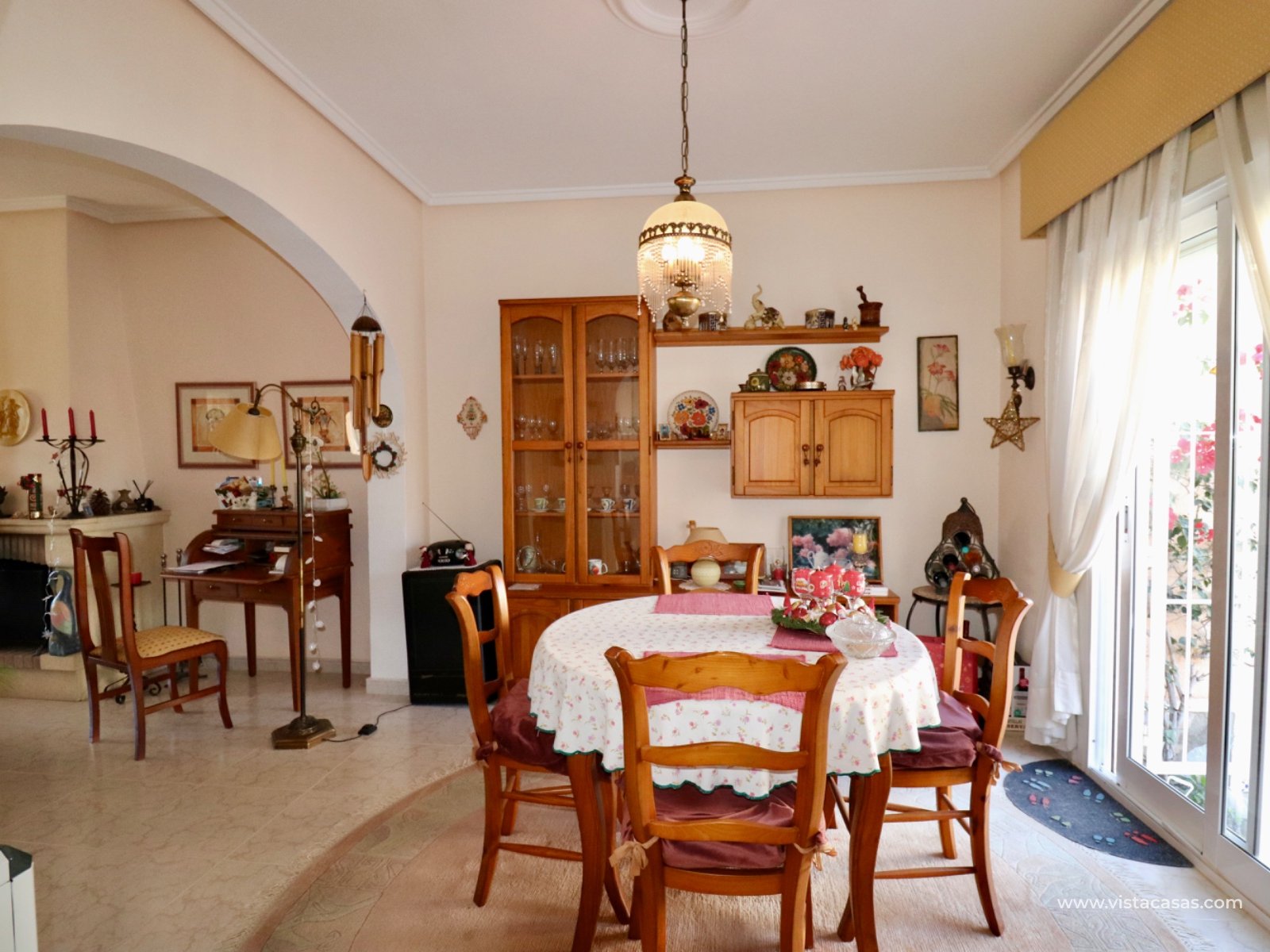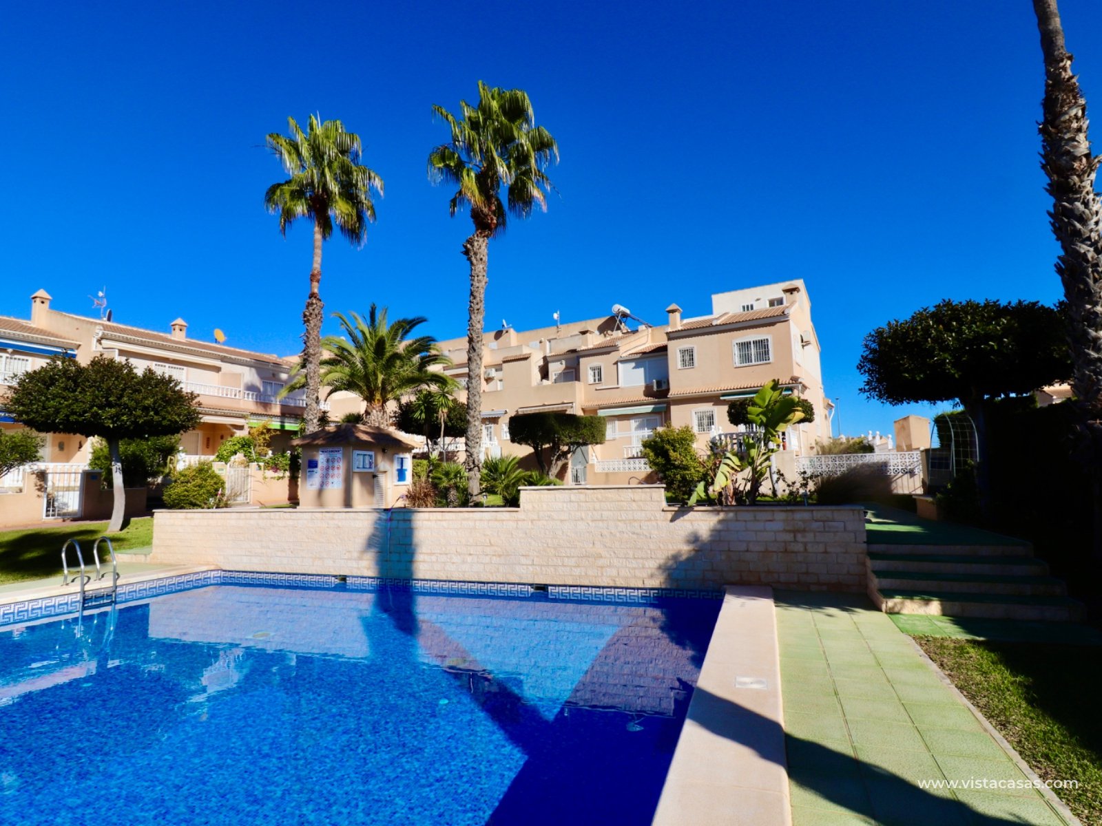 This well-maintained house is located in the desirable Doña Pepa neighborhood of Ciudad Quesada. Inside, you'll find a spacious, bright living room, a separate dining room, and a functional kitchen. The house features three bedrooms and two bathrooms, all in their original condition. The sunny terrace offers ample space to relax and enjoy the Spanish climate. Residents have access to a communal swimming pool. About the area: The Doña Pepa neighborhood is known for its peaceful atmosphere, wide streets, and international community. Various shops, restaurants, and sports facilities are within walking distance. Guardamar beach is approximately a 10-minute drive away (about 7 km). The La Marquesa golf course can be reached in approximately 5 minutes by car (about 3 km). Thanks to its central location, both Alicante and Murcia airports are easily accessible.