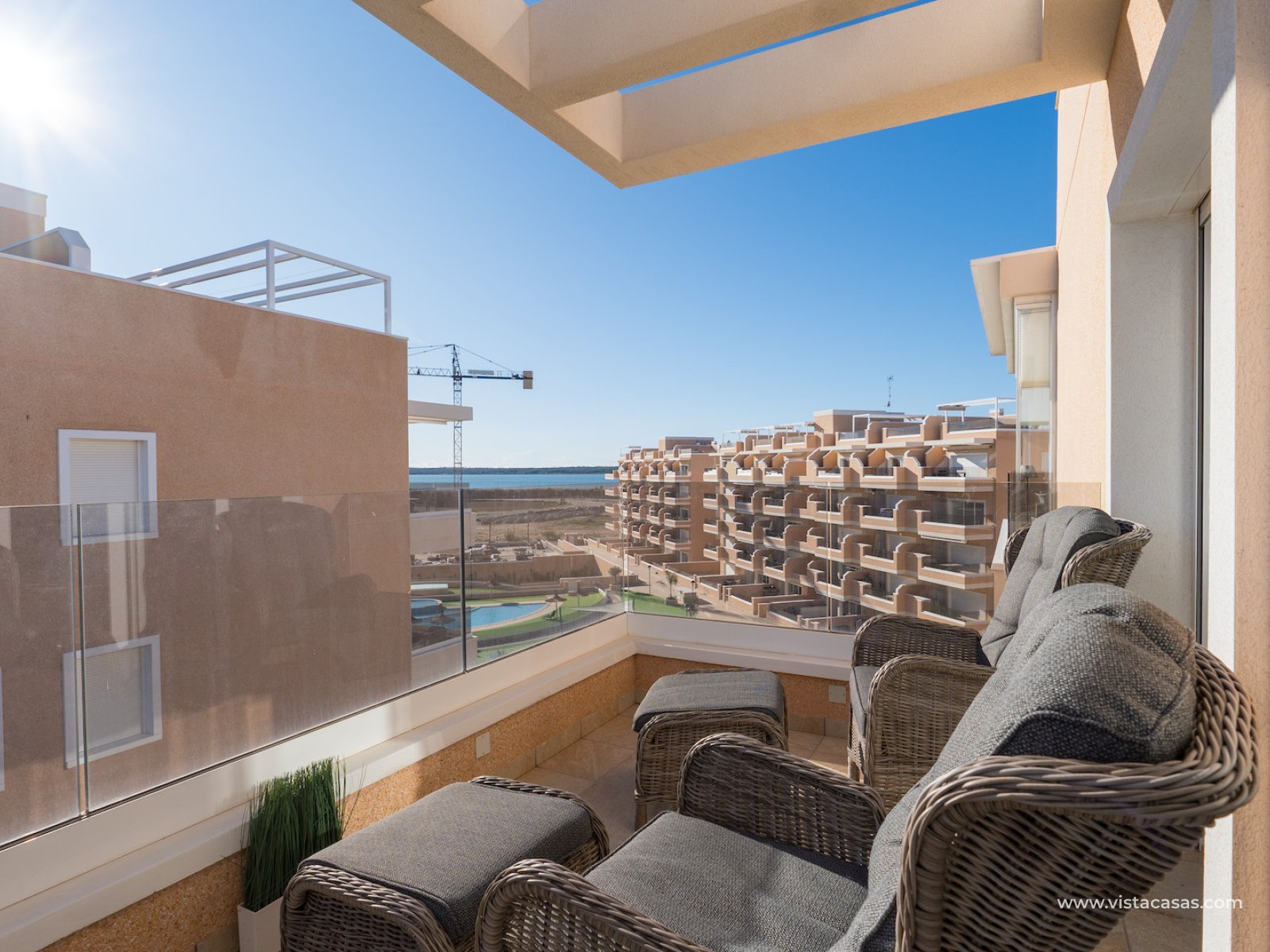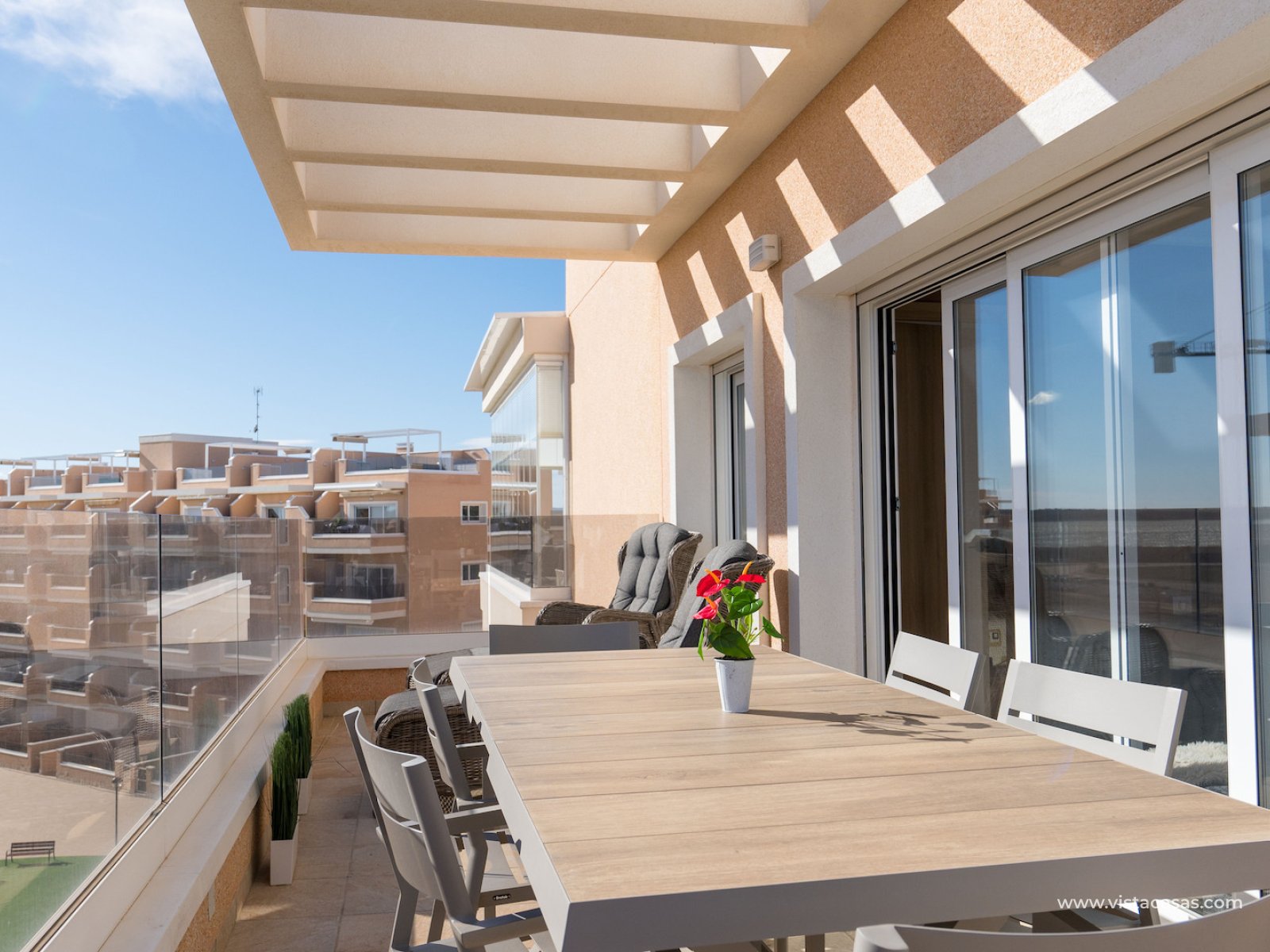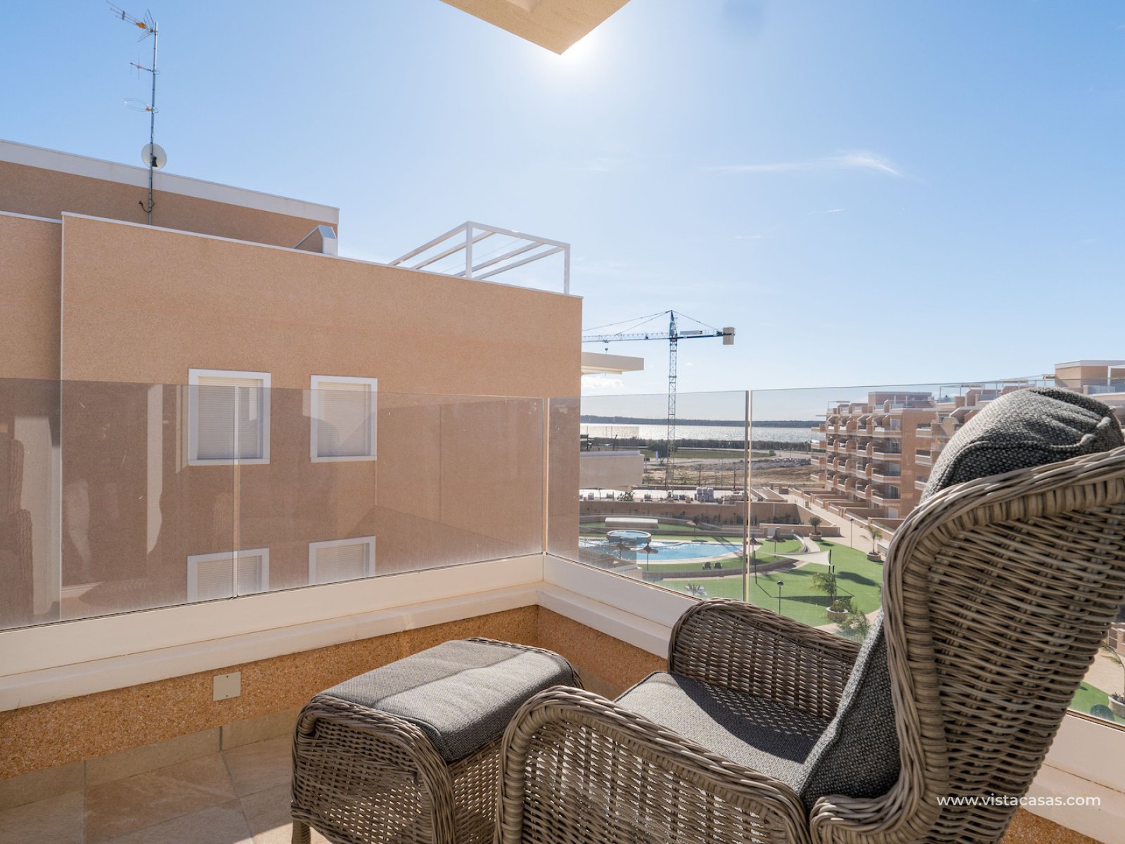 This is a new and fully furnished penthouse in "SPA & NATURE" in El Raso Urbanization, in Guardamar del Segura, Alicante. Great location near the beaches, golf course, and the airport in Alicante. This is a residential complex of 175 apartments. This penthouse has 3 bedrooms and 2 bathrooms, a terrace of 18m2, and a solarium of 43m2. + underground parking space. The penthouse is sold fully furnished, and it also has underfloor heating in the bathrooms. Solarium with kitchen and jacuzzi. This Residential has large common areas where you can relax in the large summer pool or in the Heated Spa. Children will have to enjoy the "Vista Park" and it there is a gym area with bio-healthy machines and a " Putting Green Golf” to practice your swing, all in a closed complex with large and well-kept green areas for everyone to enjoy. This penthouse is located in one of the most beautiful places on the Costa Blanca – South, in the town of Guardamar del Segura-Alicante and next to the Las Lagunas de La Mata Natural Park, a protected natural area perfect for relaxing and walking, as well as visiting its interpretation center and getting to know the beautiful place where thousands of migratory birds pass every year. In this town bathed by the blue waters of the Mediterranean Sea we can swim in its more than 11 km. of fine sandy beaches and strolling in its 800-hectare dune forest made up mainly of pine, eucalyptus, and palm trees, all this makes this coastline something unique to enjoy and want to live here. Guardamar del Segura is located in the south of the Costa Blanca, just 25 minutes by car from Alicante International Airport, with the warmest waters of the Spanish Mediterranean. Thus, the average water temperature is 26ºC in August, dropping to around 18ºC in the winter months. It is not unusual to see bathers in low season, especially from central and northern Europe, enjoying our mild winters. It is several 18-hole golf courses a few kilometers from our village such as: "La Marquesa Golf", "La Finca Golf" and "Vistabella Golf". Water sports lovers can also enjoy all kinds of water sports at the "Puerto Marina de las Dunas" (sailing, windsurfing, water skiing, canoeing, motor boating, etc.)