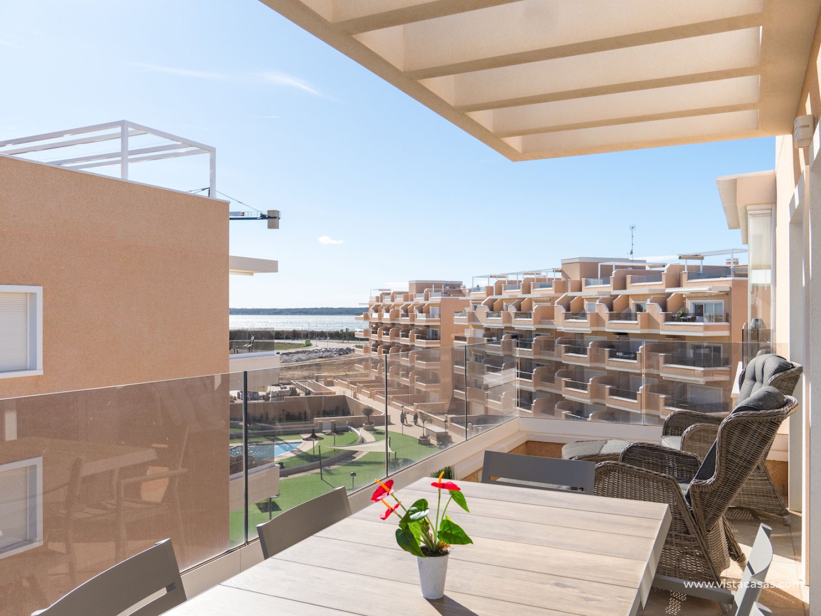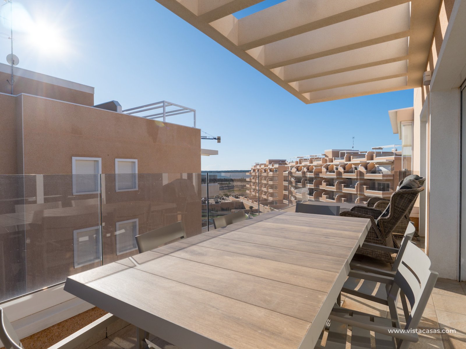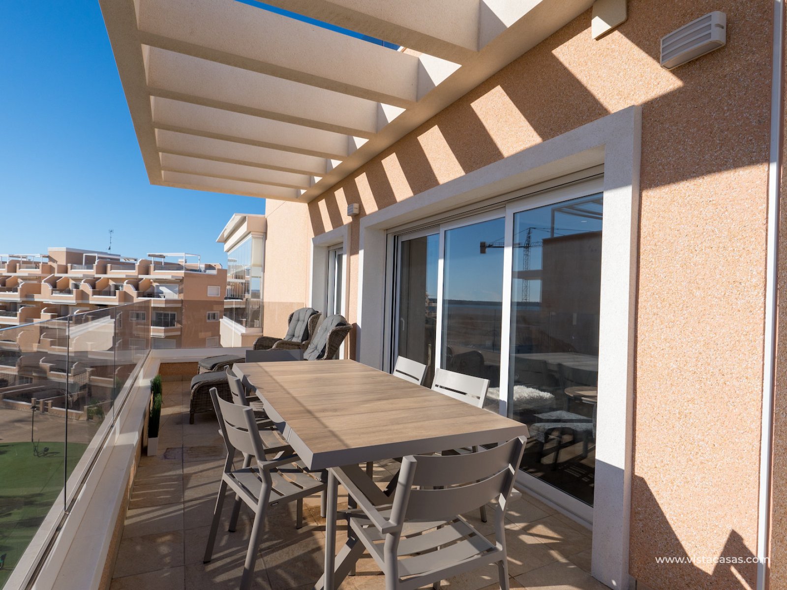 This is a new and fully furnished penthouse in "SPA & NATURE" in El Raso Urbanization, in Guardamar del Segura, Alicante. Great location near the beaches, golf course, and the airport in Alicante. This is a residential complex of 175 apartments. This penthouse has 3 bedrooms and 2 bathrooms, a terrace of 18m2, and a solarium of 43m2. + underground parking space. The penthouse is sold fully furnished, and it also has underfloor heating in the bathrooms. Solarium with kitchen and jacuzzi. This Residential has large common areas where you can relax in the large summer pool or in the Heated Spa. Children will have to enjoy the "Vista Park" and it there is a gym area with bio-healthy machines and a " Putting Green Golf” to practice your swing, all in a closed complex with large and well-kept green areas for everyone to enjoy. This penthouse is located in one of the most beautiful places on the Costa Blanca – South, in the town of Guardamar del Segura-Alicante and next to the Las Lagunas de La Mata Natural Park, a protected natural area perfect for relaxing and walking, as well as visiting its interpretation center and getting to know the beautiful place where thousands of migratory birds pass every year. In this town bathed by the blue waters of the Mediterranean Sea we can swim in its more than 11 km. of fine sandy beaches and strolling in its 800-hectare dune forest made up mainly of pine, eucalyptus, and palm trees, all this makes this coastline something unique to enjoy and want to live here. Guardamar del Segura is located in the south of the Costa Blanca, just 25 minutes by car from Alicante International Airport, with the warmest waters of the Spanish Mediterranean. Thus, the average water temperature is 26ºC in August, dropping to around 18ºC in the winter months. It is not unusual to see bathers in low season, especially from central and northern Europe, enjoying our mild winters. It is several 18-hole golf courses a few kilometers from our village such as: "La Marquesa Golf", "La Finca Golf" and "Vistabella Golf". Water sports lovers can also enjoy all kinds of water sports at the "Puerto Marina de las Dunas" (sailing, windsurfing, water skiing, canoeing, motor boating, etc.)