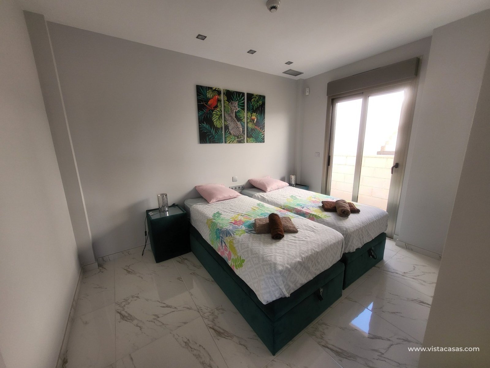 Discover this stunning luxury single-storey villa, located in the sought-after Pink Paradise urbanisation. Designed to combine elegance, comfort and cutting-edge technology, this exclusive property offers an exceptional lifestyle. The villa features 3 spacious bedrooms with built-in wardrobes and 2 bathrooms, including a master en-suite. The bright and generous open-plan living and dining area is flooded with natural light thanks to large glass doors opening onto the garden. The fully equipped open-plan kitchen blends seamlessly into the living space, while a separate laundry room provides a practical area for a washing machine. This is a smart home, equipped with customised home automation technology, offering enhanced comfort, decentralised management, increased security and excellent energy efficiency. Outside, the property boasts a beautiful private swimming pool and an impressive 104 m² private solarium, a true outdoor oasis complete with a fully equipped outdoor kitchen, awning, spa, and breathtaking views over the Torrevieja salt lakes. The villa includes a wide range of premium extras, such as: Outdoor kitchen Awning on the solarium External storage room Alarm system Security cameras Full home automation Video intercom Individual air conditioning in each room Outdoor plants and landscaping Wi-Fi on the solarium Ideally located close to Villamartín Golf Course, the property offers easy access to supermarkets, bars, restaurants and shops. The beaches of La Zenia and the Zenia Boulevard shopping centre are just 10 minutes by car, as are several prestigious golf courses. A rare opportunity to acquire an exceptional villa in an idyllic setting.