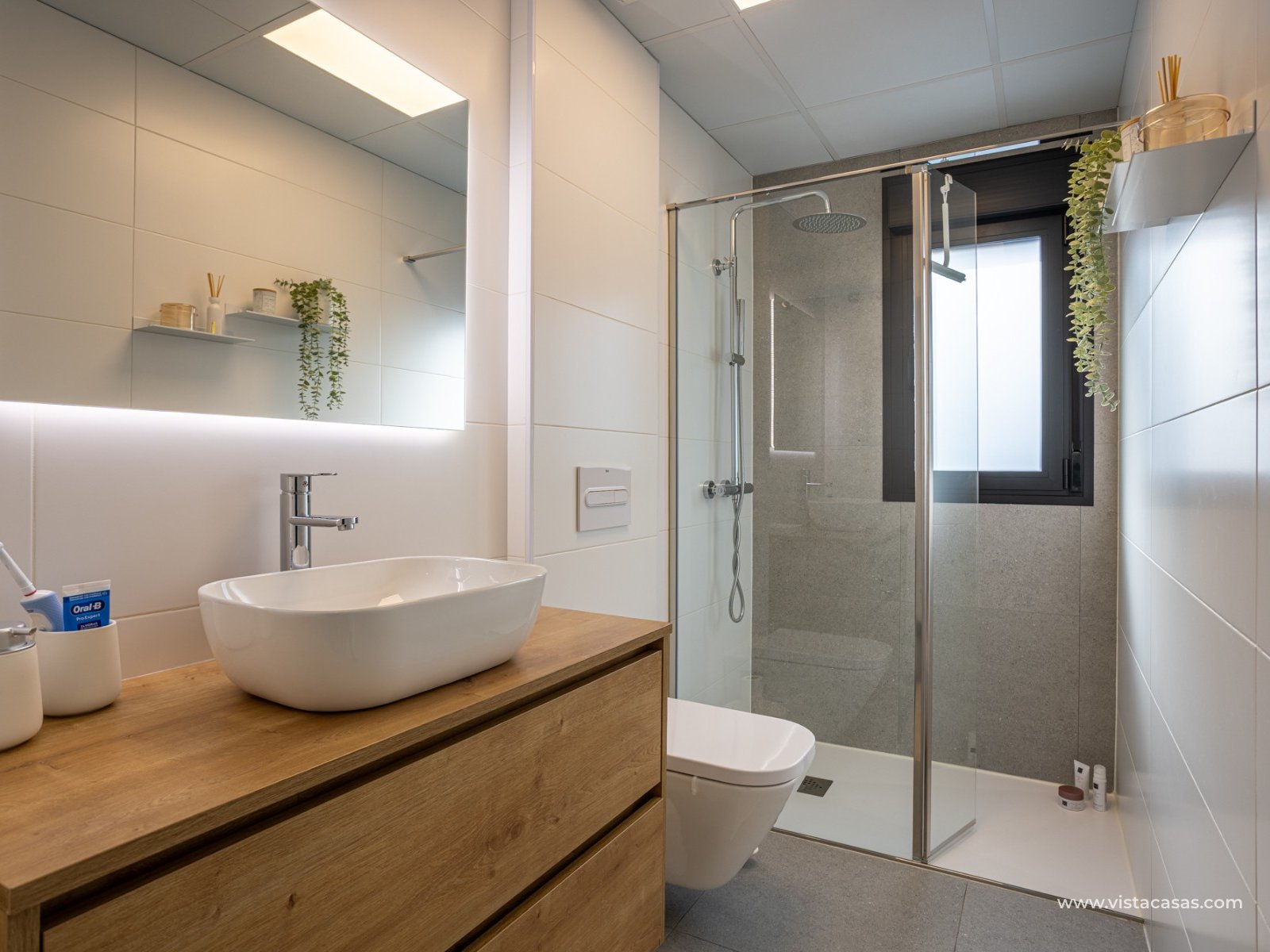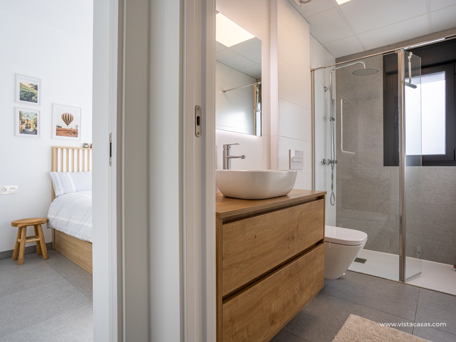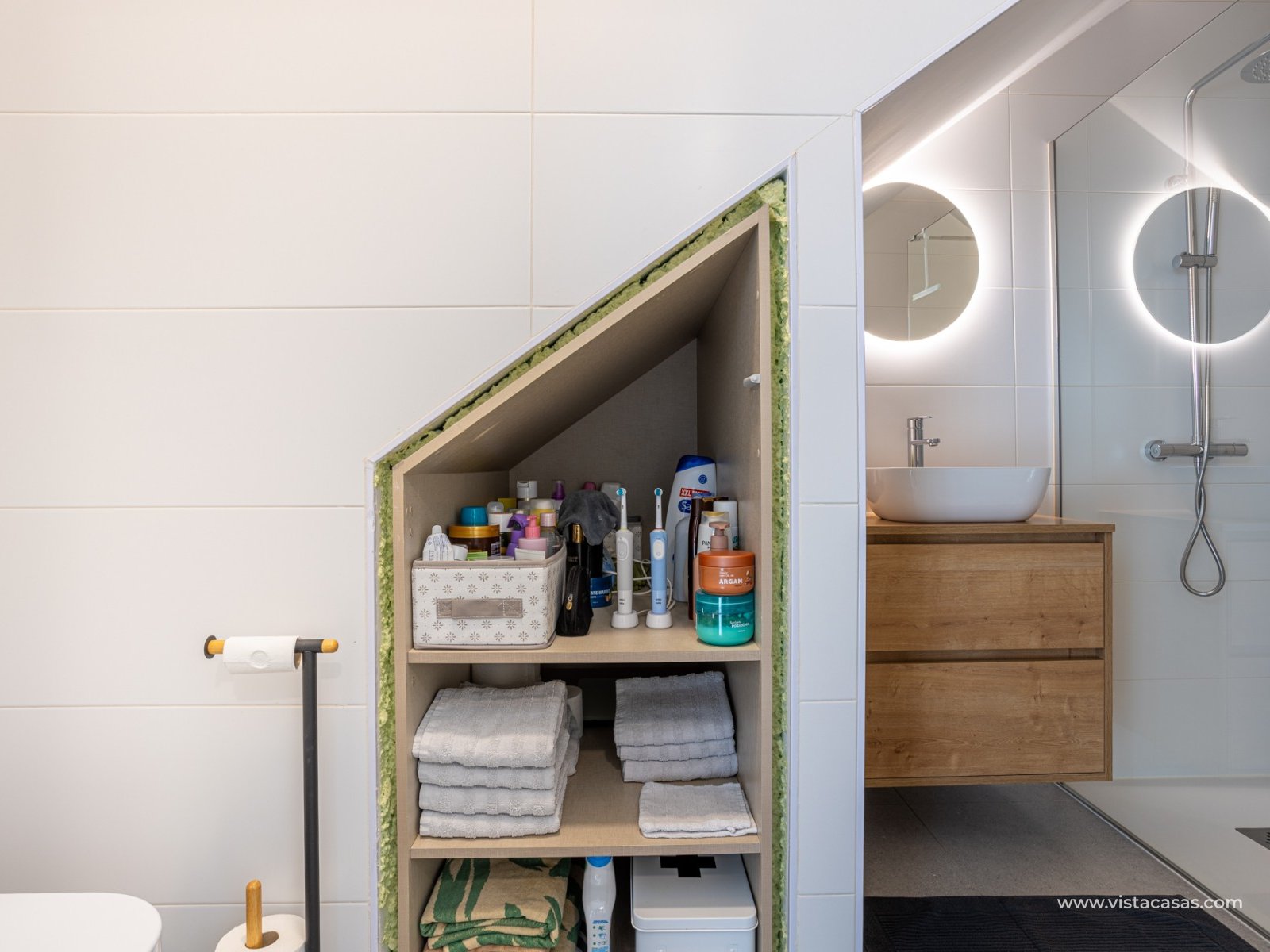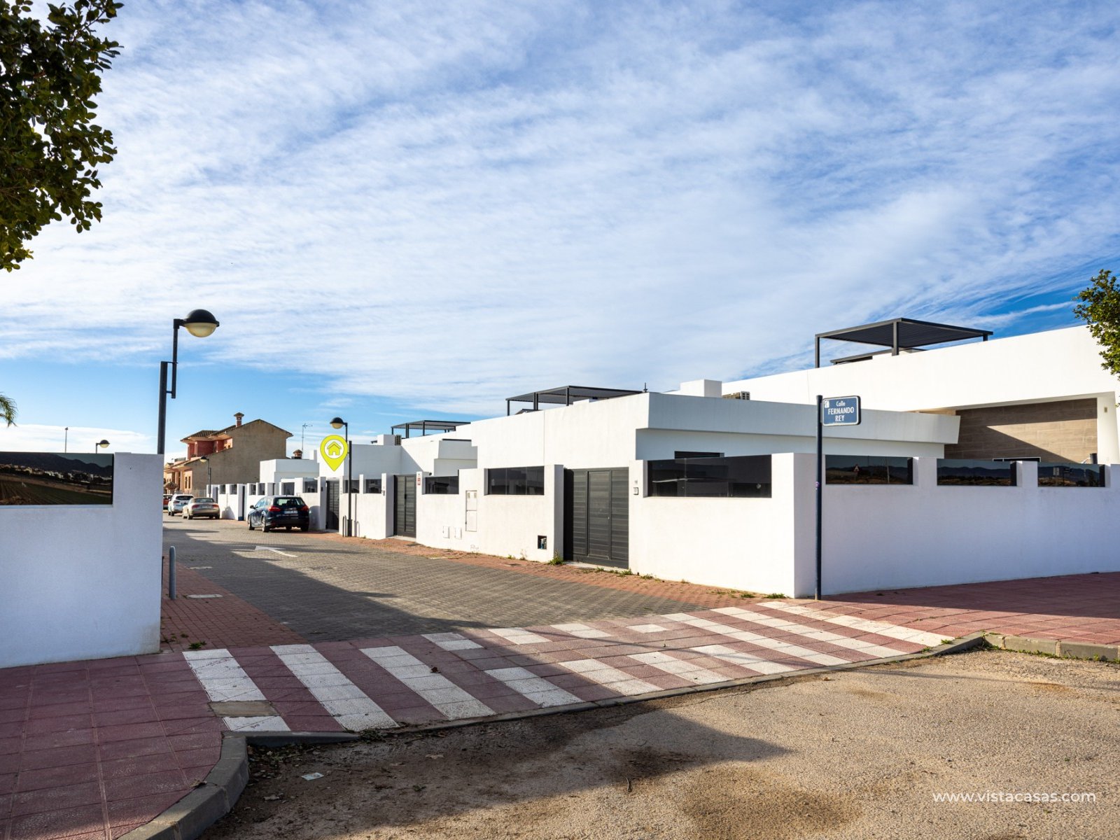 This charming detached villa offers the perfect balance of comfort, privacy, and Mediterranean living, located in a quiet residential area of Torre-Pacheco, just minutes from all amenities. Built on a 151.71 m² private plot, the property has 85 m² of constructed space, all on one level, making it practical, accessible, and easy to maintain. The villa is designed to make the most of natural light thanks to its East orientation, ensuring bright interiors throughout the day. Inside, the home features three spacious bedrooms, all with built-in wardrobes, and two modern bathrooms, one of which is ensuite to the master bedroom. there is also a laundry and extra wardrobe area, very useful yet discreet. The open-plan kitchen flows seamlessly into the living and dining area, creating a welcoming and functional space ideal for both everyday living and entertaining guests. The property is in excellent condition, ready to move into, and is sold fully furnished, including appliances and air conditioning for year-round comfort. Outdoors is where this villa truly shines. The property boasts a private swimming pool, surrounded by a well-proportioned garden area, perfect for relaxing, sunbathing, or enjoying outdoor meals. A covered porch provides a shaded seating area, while the terrace and solarium offer additional space to enjoy the sun, entertain, or simply unwind with open views and privacy. There is a shade area upstairs on the solarium, along with an exterior kitchen, perfect for barbeques. The home also includes private parking within the plot and an intercom system for added security. Prime LocationBeaches: 20 minutesMurcia International Airport: 15 minutesLeisure areas, shops & restaurants: 5 minutesGolf courses: 5 minutes This property is ideal as a permanent residence, holiday home, or rental investment, thanks to its excellent location, outdoor space, and move-in-ready condition. A fantastic opportunity to enjoy the Costa Cálida lifestyle with comfort, sunshine, and privacy.