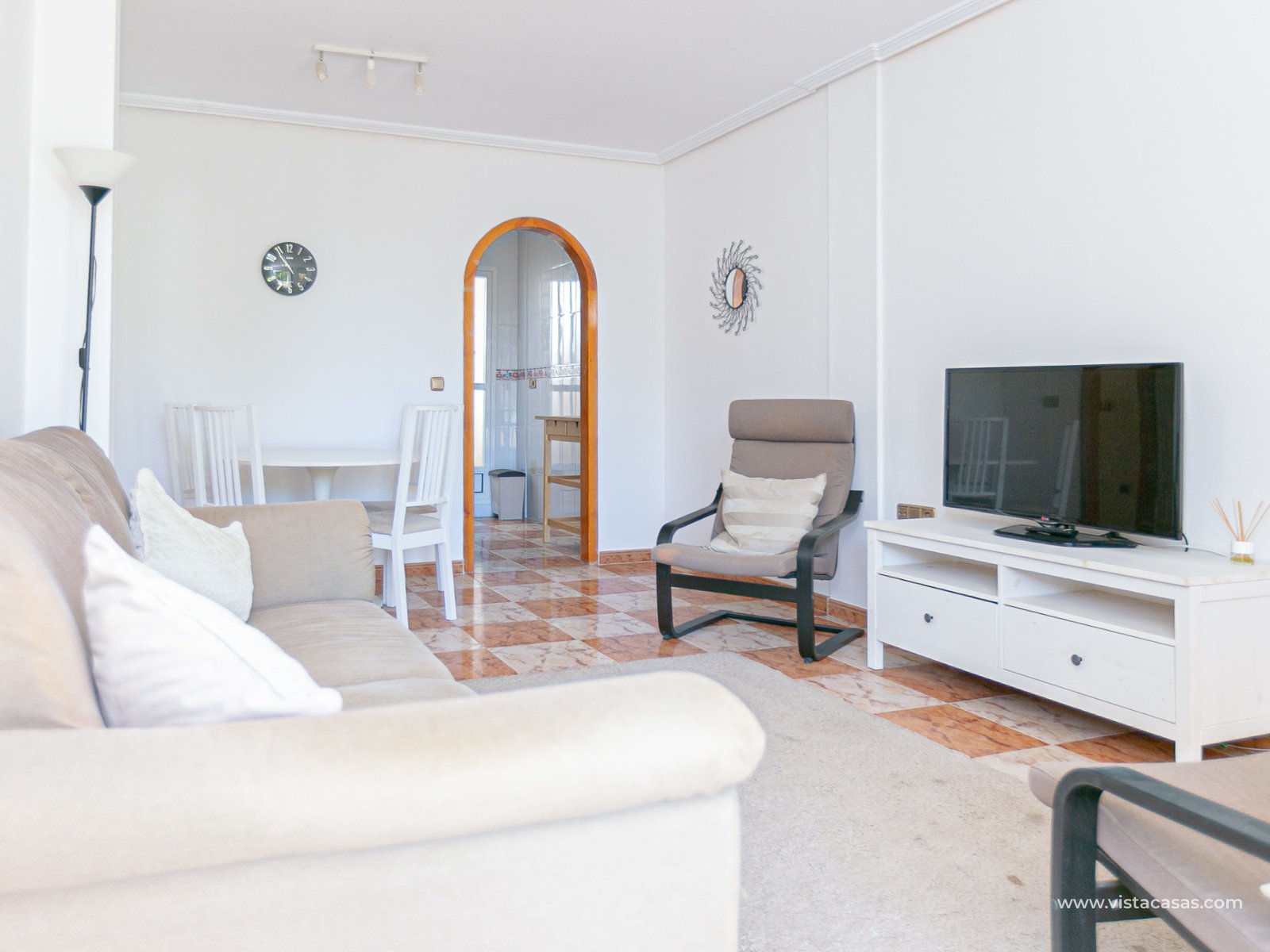 Well presented top floor, penthouse apartment with solarium, located in the popular Pinada Golf 2 complex in Villamartin. The apartment occupies a super corner position, giving it plenty of natural light and open views. The penthouse offers 2 double bedrooms with fitted wardrobes, full family bathroom, spacious living and dining area with direct access to a private balcony overlooking the communal gardens. The separate kitchen is fully fitted and includes a utility room for additional storage. A key feature of the apartment is the private rooftop solarium, which provides ample outdoor space, additional storage and open views across the surrounding area, including distant sea views. Sold as seen in great conditioning ,with white goods, air conditioning and much more. Set in a peaceful urbanisation the community is well maintained and offers landscaped gardens, communal parking and swimming pool for residents. Located easy walking distance to local amenities including the Villamartin Golf Course and Villamartin Plaza. Please note this is a top (second floor) apartment with no lift access and therefore would not be suitable for those with mobility issues. Contact us today to view this well presented and located home. Full photos to follow shortly