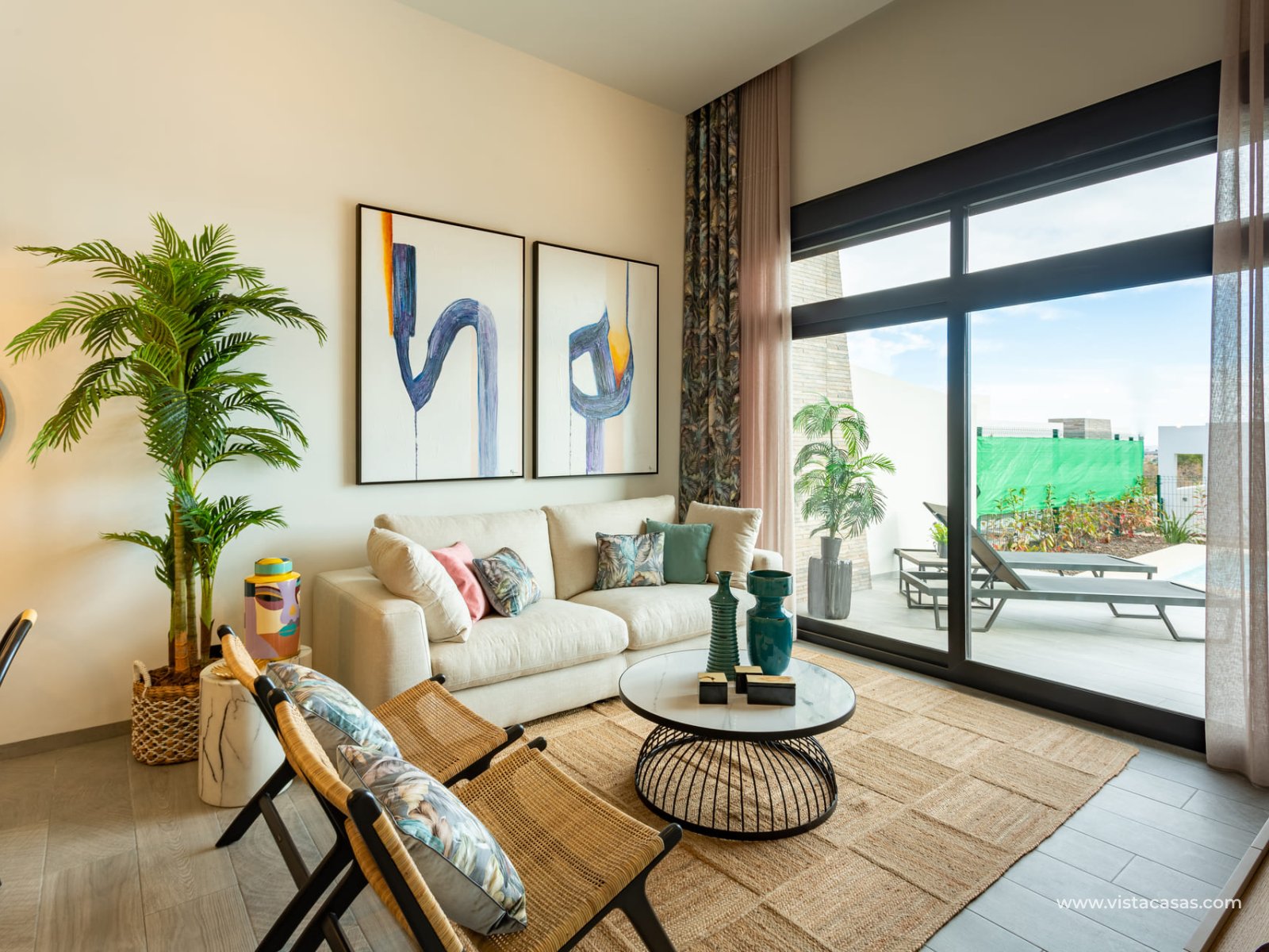 Discover the opportunity to live in a privileged environment with the properties that Vistacasas has to offer in the picturesque town of Algorfa. This exclusive collection of homes redefines the concept of comfort and style, situated in a location that combines serenity and modernity. With only four units available, each meticulously designed, interested parties can choose between detached villas and townhouses, ensuring an option for every lifestyle. Algorfa presents itself as the ideal refuge for those who wish to enjoy tranquility without sacrificing modern conveniences.