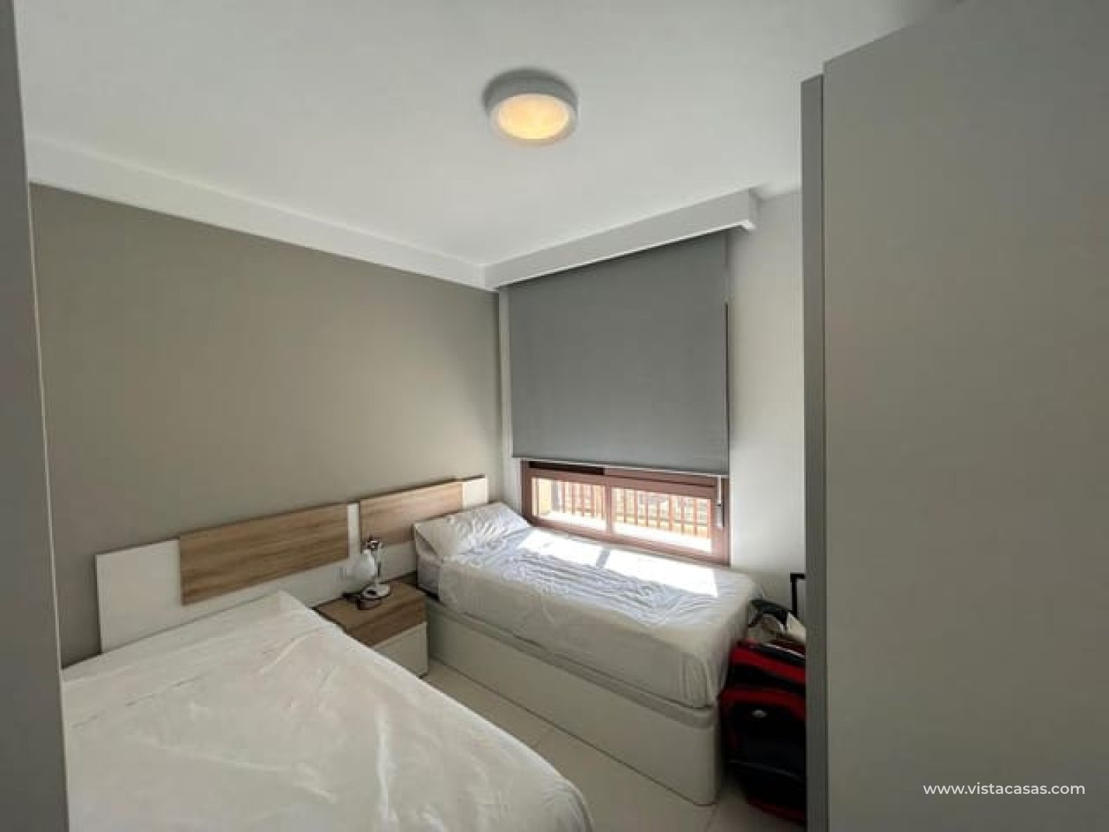 A quality apartment constructed in 2020 and only 150 metres to the beautiful, blue flag beaches of Mil Palmeras. The property has a spacious roof solarium of 66m2 with retractable sun awnings, from where there are sea views. A balcony terrace adjoining the lounge has views over the 2 community swimming pools. The lounge has a fully fitted open kitchen with all appliances and a quality brand dining table and sofa. The two bedrooms both have fitted wardrobes, one with an en suite bathroom and there is also a guest bathroom. Throughout the apartment is hot and cold air conditioning and the property will be sold fully furnished. The complex has a large central pool area, children's play area and, exercise machines and gardens. It is located close to all amenities in Mil Palmeras where there are a variety of bars, restaurants, supermarkets, pharmacy etc. A five minute drive away is the access to the AP-7 motorway.