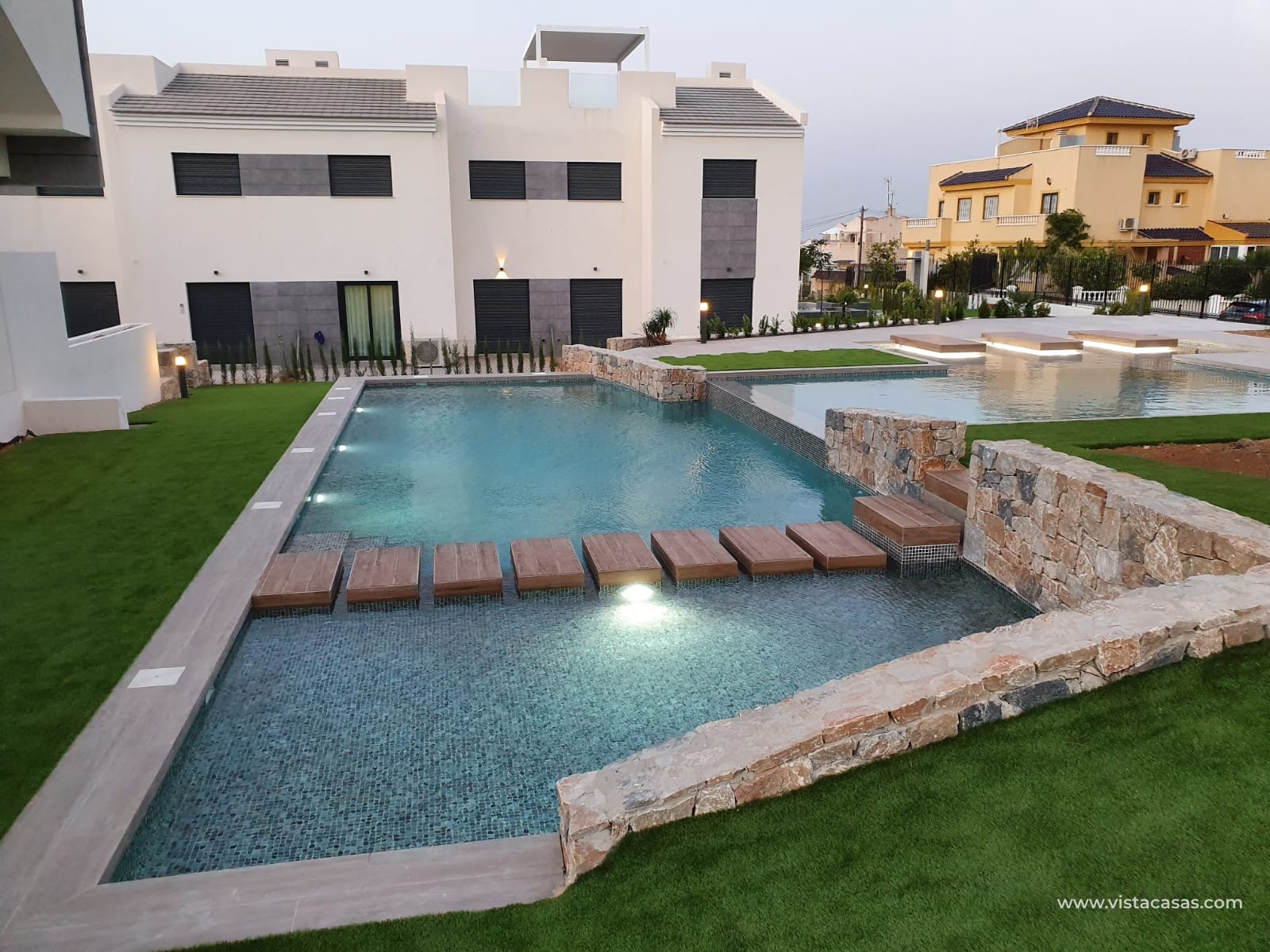 In the heart of charming Torrevieja, Vistacasas presents a unique opportunity to acquire a home near the coast. This residential complex consists of 26 bungalows, carefully designed to offer comfort and style. The location is perfect for those who wish to enjoy the sea, as it is only 5 km from the beach, allowing for sea breezes at any time. Additionally, the nearest airport is 22.214 km away, making access easy for both residents and visitors.