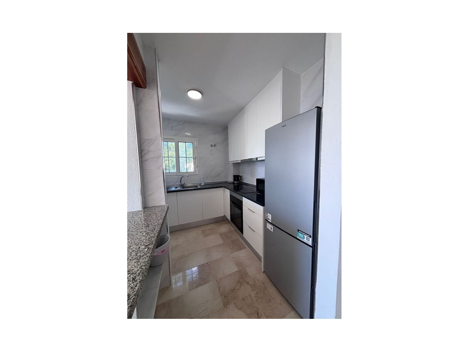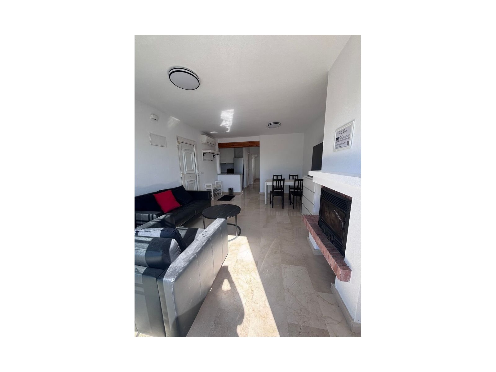 The property features two spacious double bedrooms, a family bathroom, and a newly refurbished kitchen, all presented in good condition. The bright living area opens onto a private terrace, perfect for relaxing and enjoying the Mediterranean lifestyle.