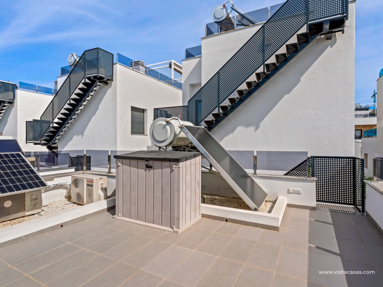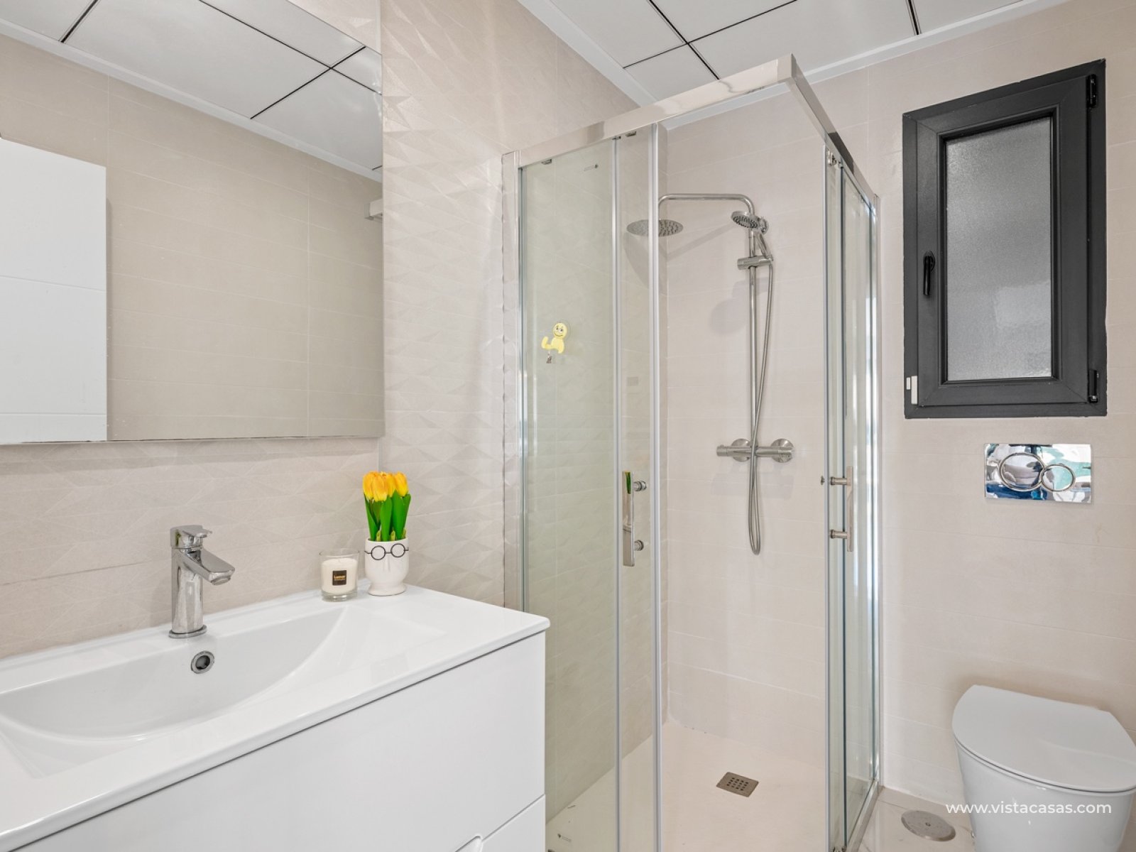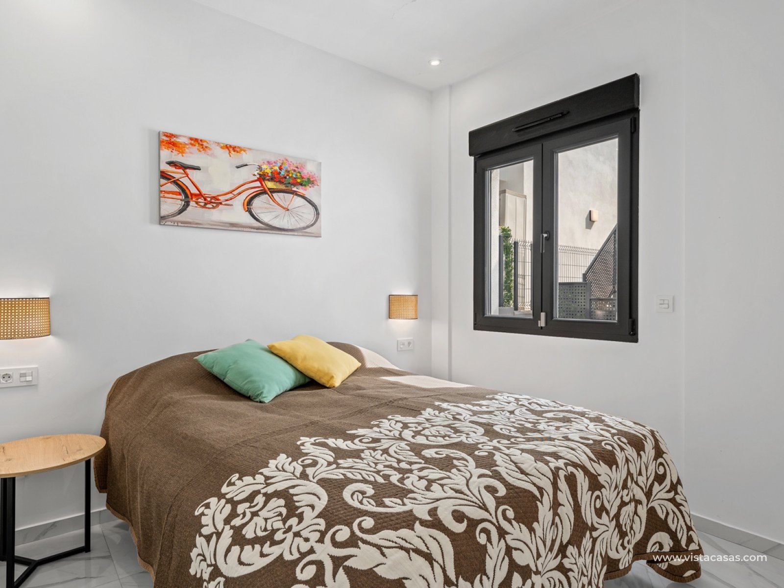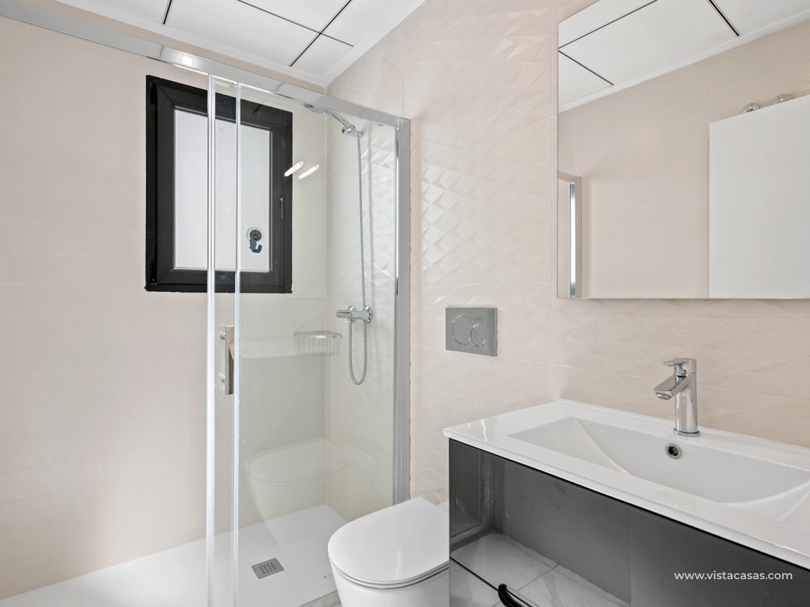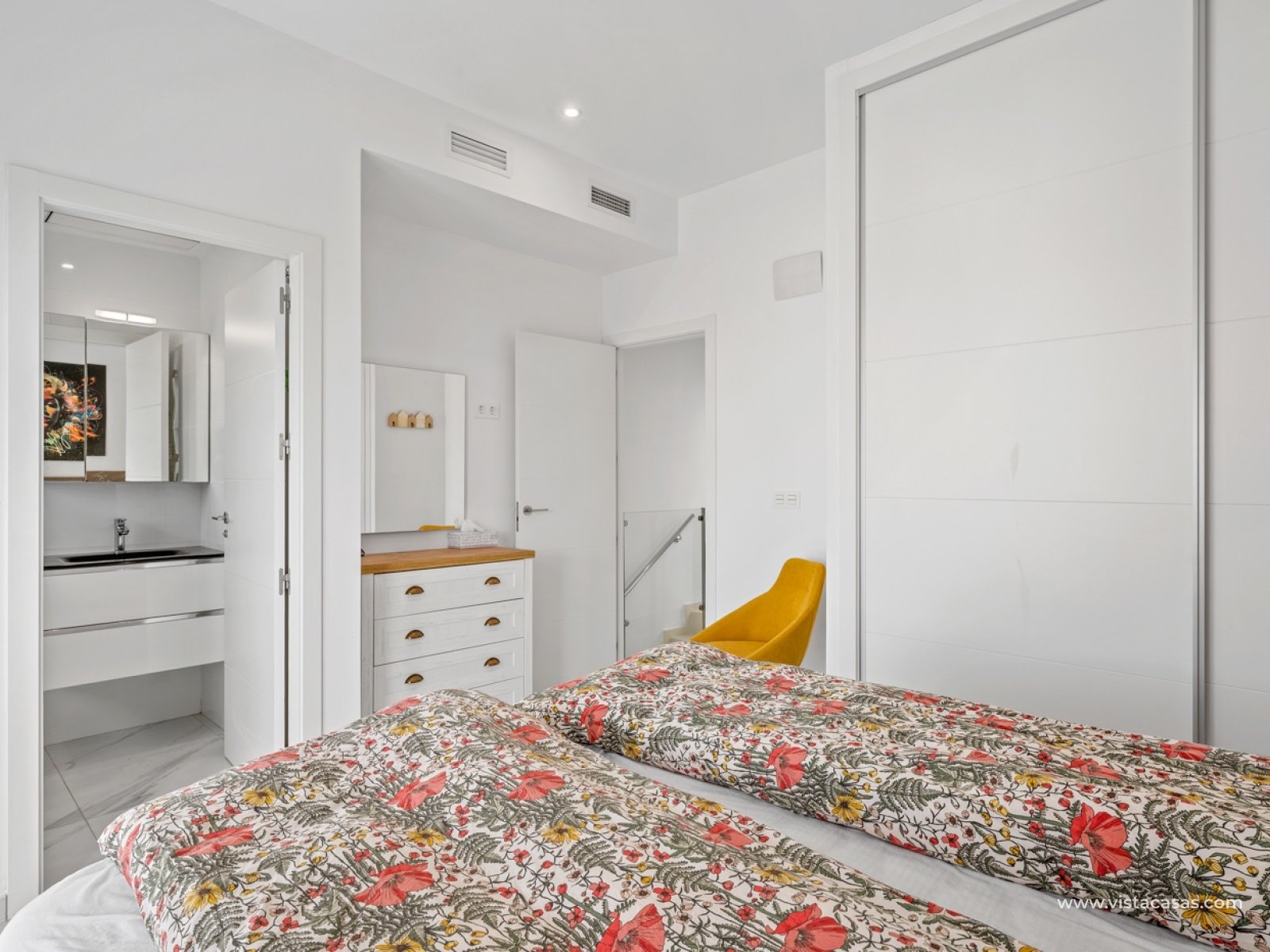 This modern 3-bedroom villa in Benijófar was built in 2023 and offers a stylish design, private heated pool, and excellent outdoor spaces. The property has a total built area of 111 m² distributed over two floors and consists of 3 double bedrooms and 3 bathrooms. On the main floor, you will find one double bedroom, a bathroom, and a bright open-plan kitchen, dining area and living room. Large sliding doors from the living room provide direct access to the garden and pool area, creating a seamless indoor-outdoor living experience. On the first floor, there are two spacious double bedrooms, both with en-suite bathrooms. The master bedroom has access to a private terrace, and from this level you also have access to the large roof terrace. The villa was completed in 2023 and is equipped with several modern features, including: Central air conditioning (hot and cold)Underfloor heating in the living room and all bathroomsOsmosis water filtration system in the kitchenFitted wardrobes in all bedroomsSolar panels for both hot water and electricity Outdoor AreaThe property sits on a west-facing plot with a beautifully designed outdoor space. The garden features a private heated swimming pool, outdoor seating and dining areas, and private parking on the plot with an automatic gate. There is also a utility area with workbench and an additional storage area. Several awnings have been installed to provide shade during the warmer summer months. In addition to the garden, the villa offers a terrace on the first floor and a spacious roof terrace with mountain views. This area provides plenty of space for relaxing and entertaining, with both tiled and artificial grass areas as well as a large awning for shade. LocationThe villa is located within walking distance of the main street in Benijófar, where you will find a wide range of amenities including restaurants, cafés, shops and services.