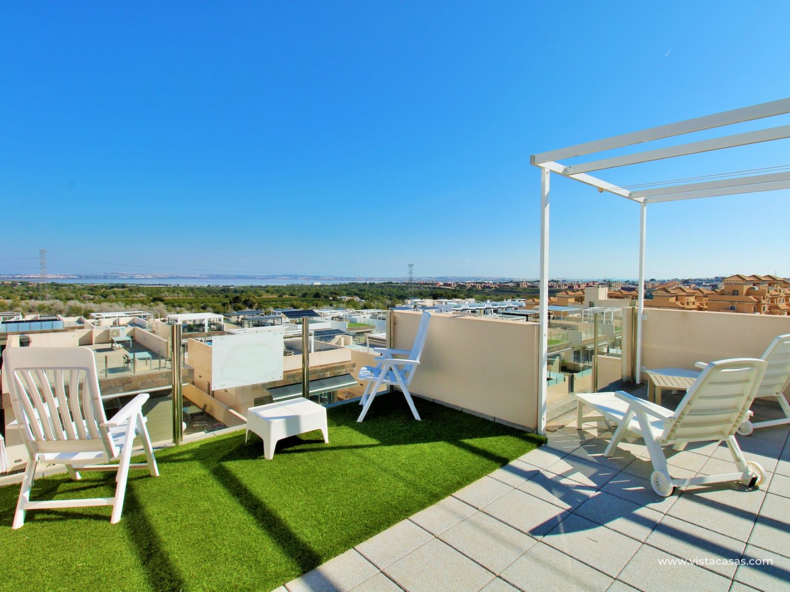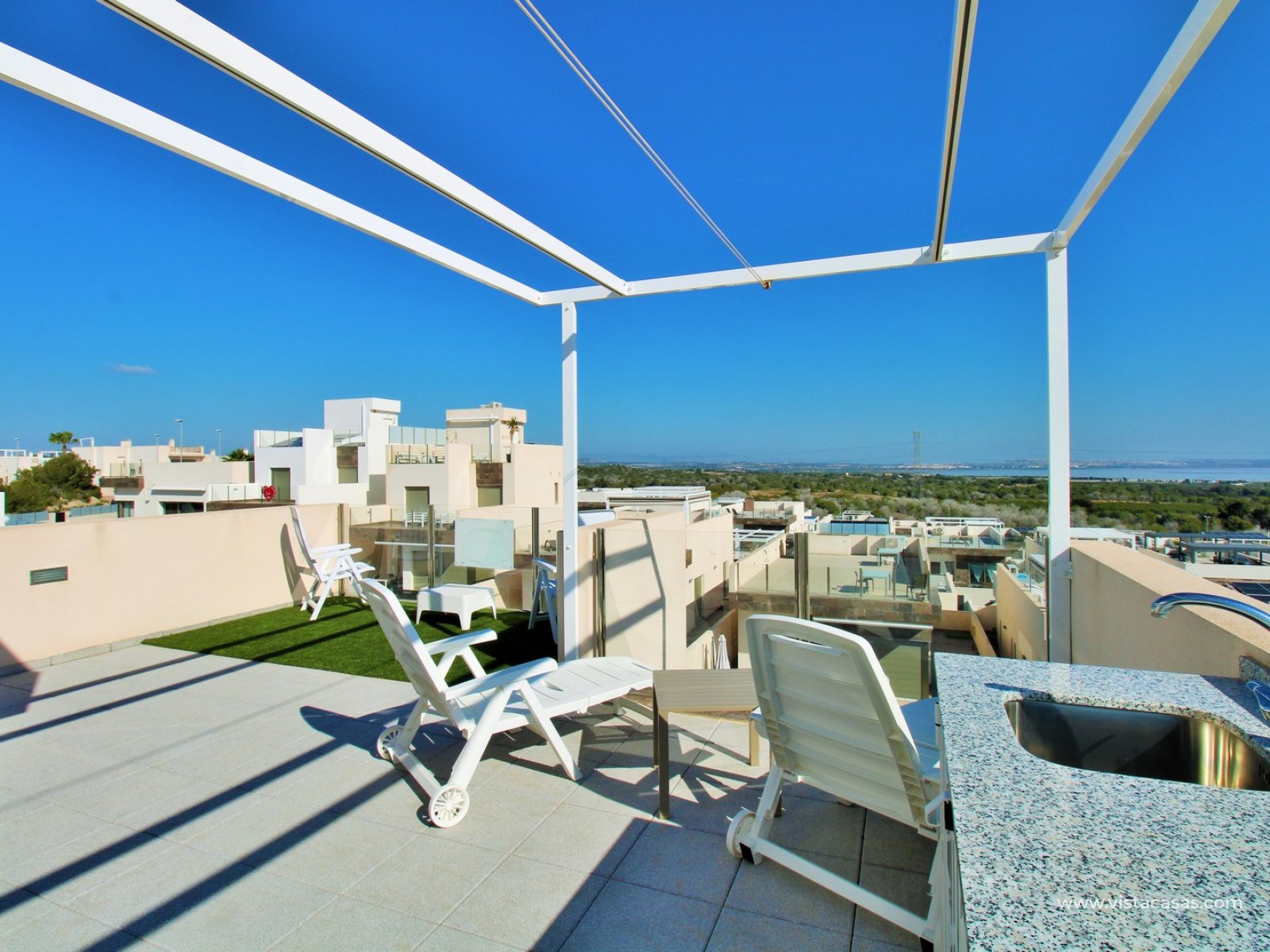 The standout feature is the private rooftop solarium, accessed via internal stairs. From here, you can enjoy open views towards the salt lake, with plenty of space for sunbathing, entertaining, or simply relaxing in complete privacy.