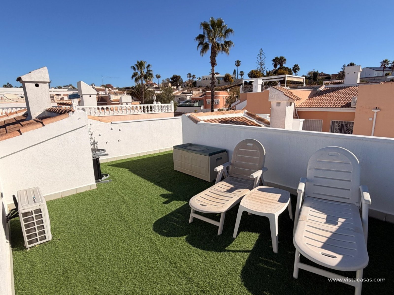 Set in a peaceful residential area of Ciudad Quesada, this charming semi-detached villa offers the perfect balance of comfort, privacy, and outdoor living. Positioned on a generous plot, the home enjoys open views across a green zone directly opposite, creating a sense of space and tranquillity that’s hard to find. Designed entirely on one level, the property is both practical and inviting. Inside, you’ll find two well-proportioned bedrooms with built-in wardrobes and two modern bathrooms, including a private en-suite. The living area is bright and welcoming, benefiting from excellent natural light and a layout that flows effortlessly into the rest of the home. The separate kitchen comes fully equipped, making it ideal for everyday living or holiday use. Throughout the property, thoughtful features such as air conditioning and ceiling fans ensure year-round comfort. Step outside and the lifestyle really begins. The private garden offers plenty of space for relaxing, entertaining, or soaking up the Costa Blanca sunshine, while the covered terrace is perfect for outdoor dining with open views. A rooftop solarium provides an additional retreat, ideal for enjoying sunsets or creating your own chill-out space. Additional benefits include off-road parking within the plot, a storage area, and access to a well-maintained communal pool. The property is sold furnished, making it ready to move into or rent out immediately. Conveniently located close to local amenities, restaurants, and leisure facilities, this home is an excellent option whether you’re looking for a permanent residence, a holiday getaway, or a smart investment on the Costa Blanca.