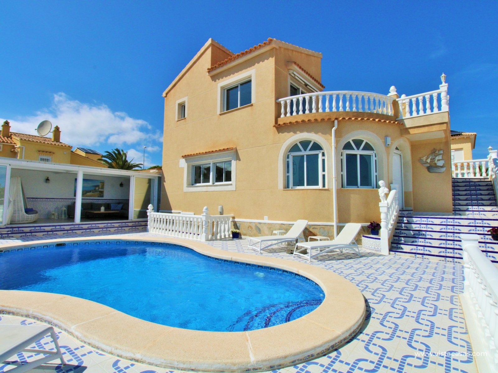 This exceptional detached villa is set on a generous private plot within El Presidente, Orihuela Costa, and stands out for its stunning, unobstructed sea views from all aspects of the property, including the main living areas, terraces, and pool area.