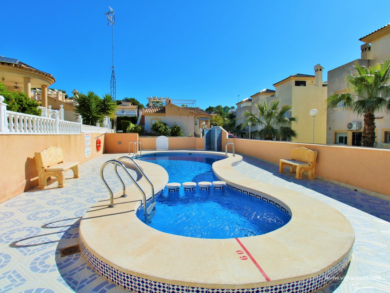 Located within the popular residential community of Loma Golf in Villamartin, this well-presented south-facing 2 bedroom bungalow offers excellent outdoor space, a sunny private garden, and lovely sea views from the roof solarium.