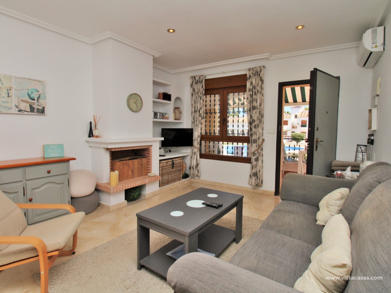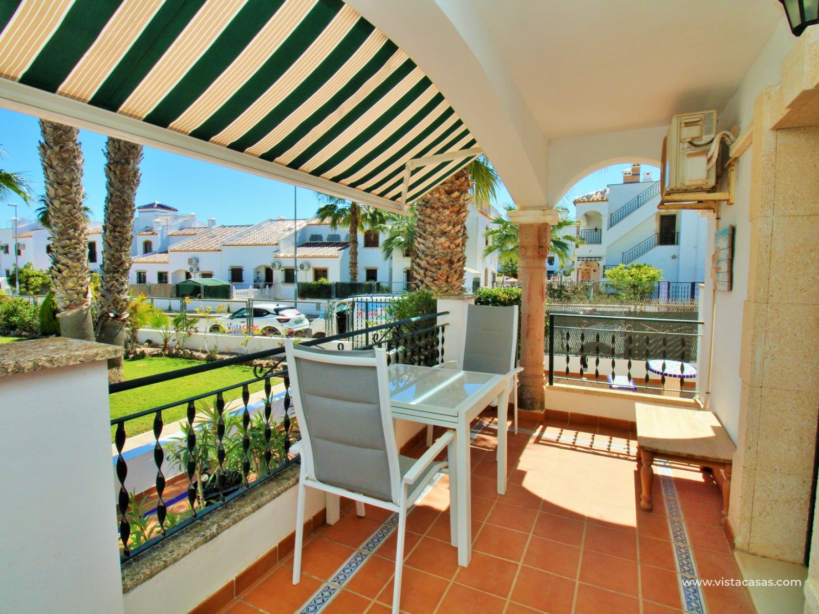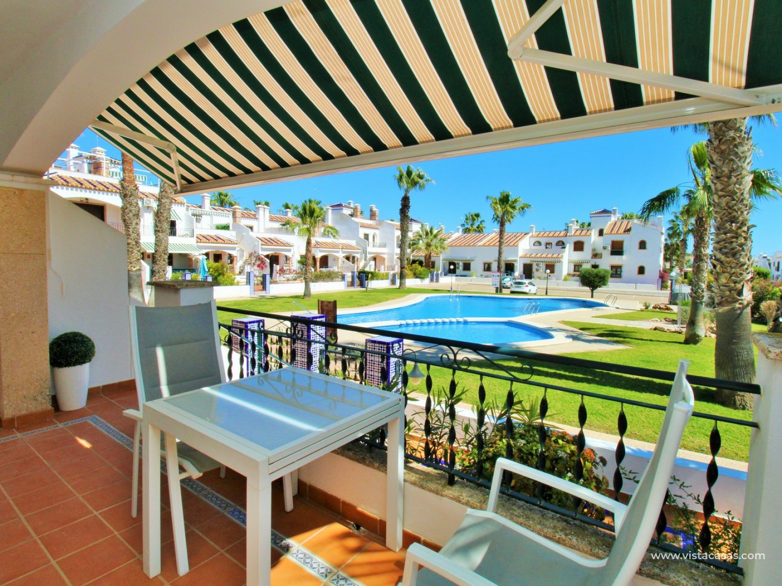 Immaculately presented ground floor 2 bedroom, 2 bathroom apartment ideally positioned directly overlooking the communal pool within the highly sought-after gated community of R9 in Pau 8, Villamartin.