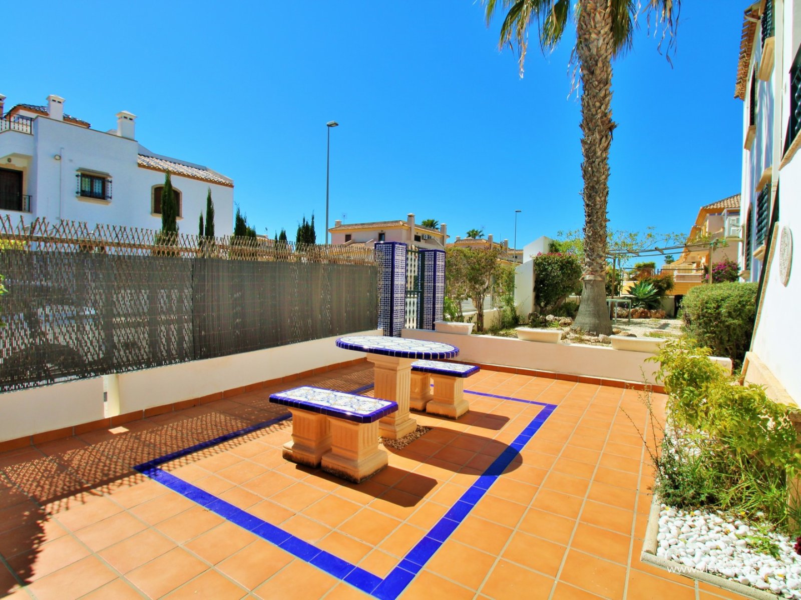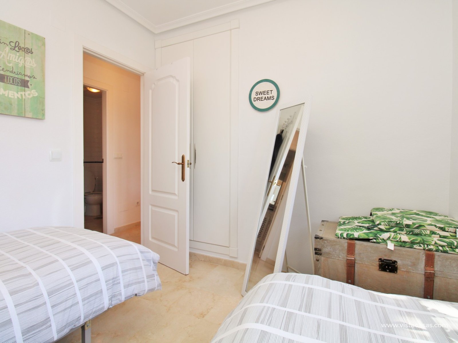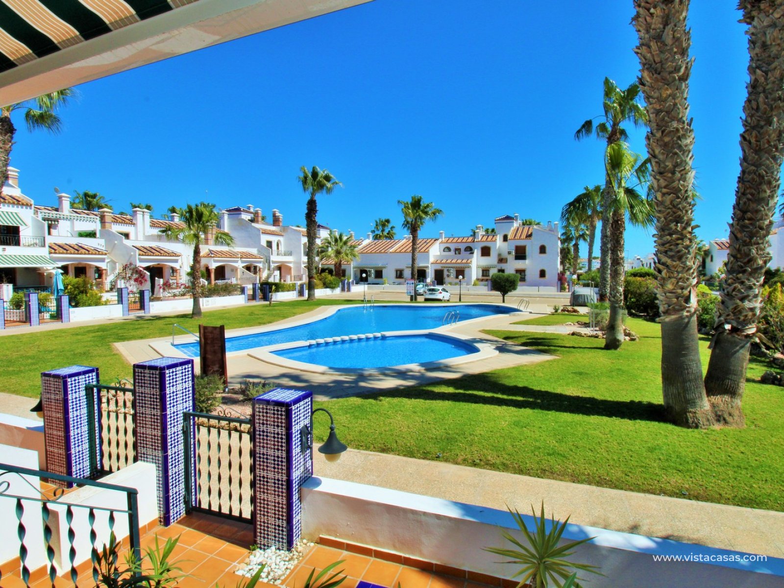 Immaculately presented ground floor 2 bedroom, 2 bathroom apartment ideally positioned directly overlooking the communal pool within the highly sought-after gated community of R9 in Pau 8, Villamartin.