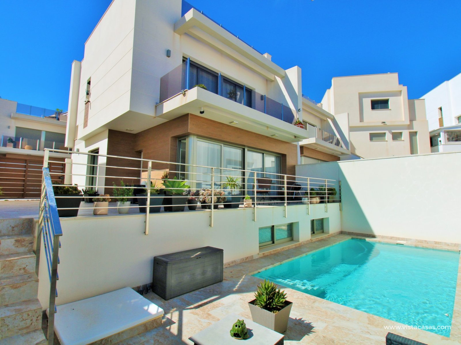 Located within the sought-after residential community of Marina III in Villamartin (Pau 26), this modern detached villa built in 2022 offers spacious, high-quality living across multiple levels, with a private pool, solarium, and a versatile basement level.
