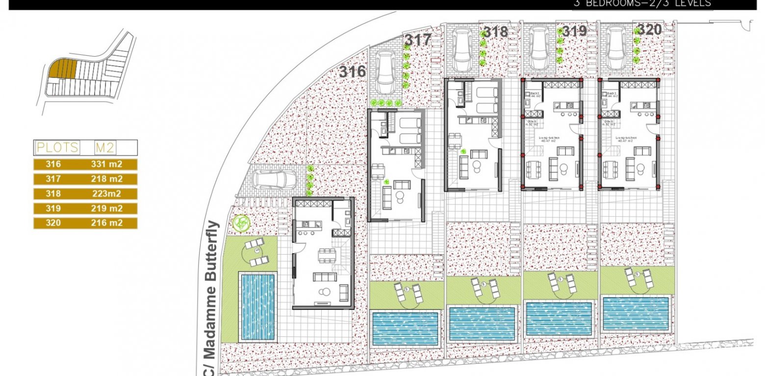 NEW RELEASE! New build 3 bedroom, 3 bathroom detached villas with private pool, roof solarium and off-road parking. Situated in the highly successful development of Villamartin Paradise in Pau 8, within walking distance of the Villamartin Golf & Plaza with its shops, bars and restaurants. These spacious villas has a 100m2 build on a plot of 223m2 with an optional basement. The ground floor comprises of an open lounge-dining area with American kitchen, with a twin bedroom and bathroom to the rear. Upstairs there are an additional 2 bedrooms which both offer en-suite bathrooms. French doors from the master bedroom leads onto the private 12m2 balcony. All the bedrooms have fitted wardrobes. Internal stairs from the landing leads to the 32m2 roof solarium. Build to the highest of standards with excellent finishes.