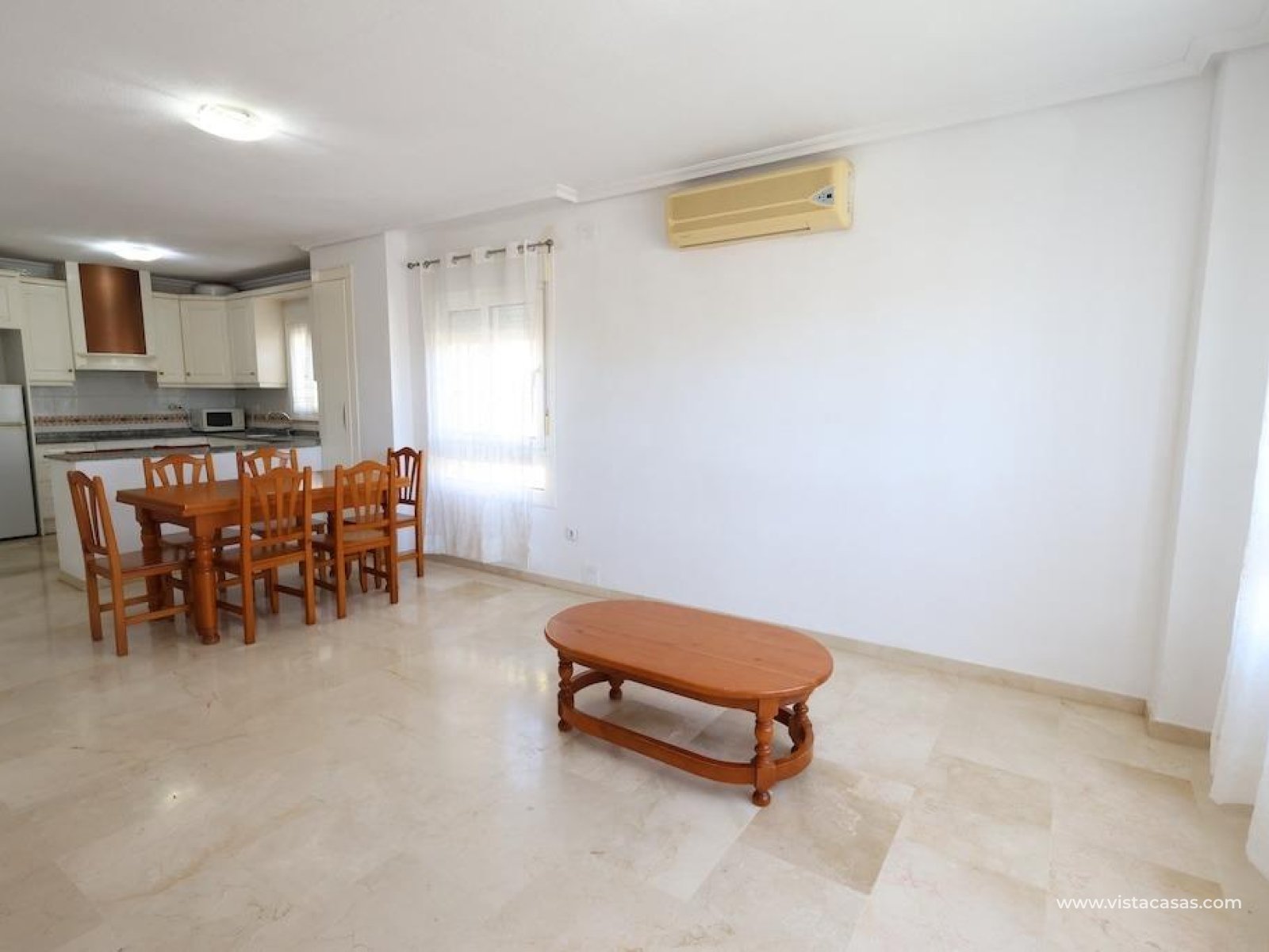 Playa Flamenca Residencial Jumilla III, ground floor apartment of 95 m2 built It has 2 bedrooms (1 en suite), 2 bathrooms, large living room with open kitchen, and terrace accessed from the living room as from the main room The house is sold furnished And with air conditioning, the residential has large green areas, community parking and a beautiful communal pool.