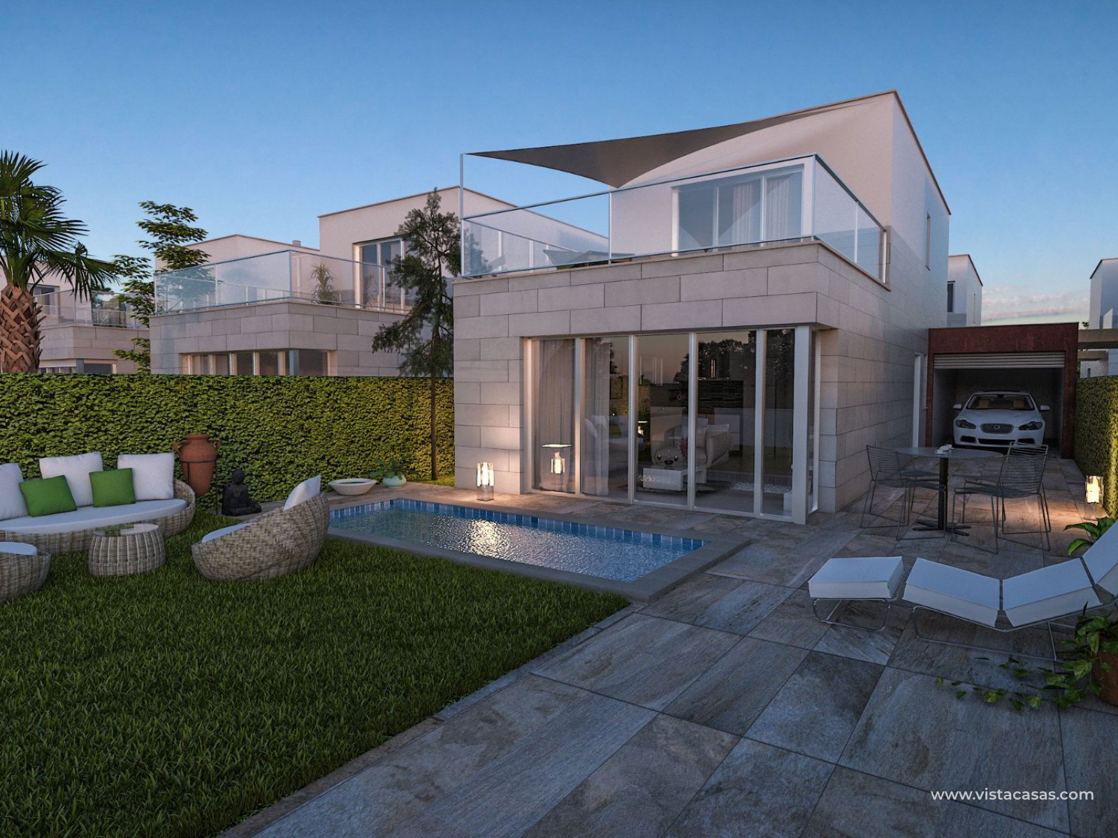 New build detached villas in Los Alcázares, Costa Calida. Located in a quiet area near La Serena Golf Course, very close to the beach, sports facilities and the town centre, with all the services and amenities.