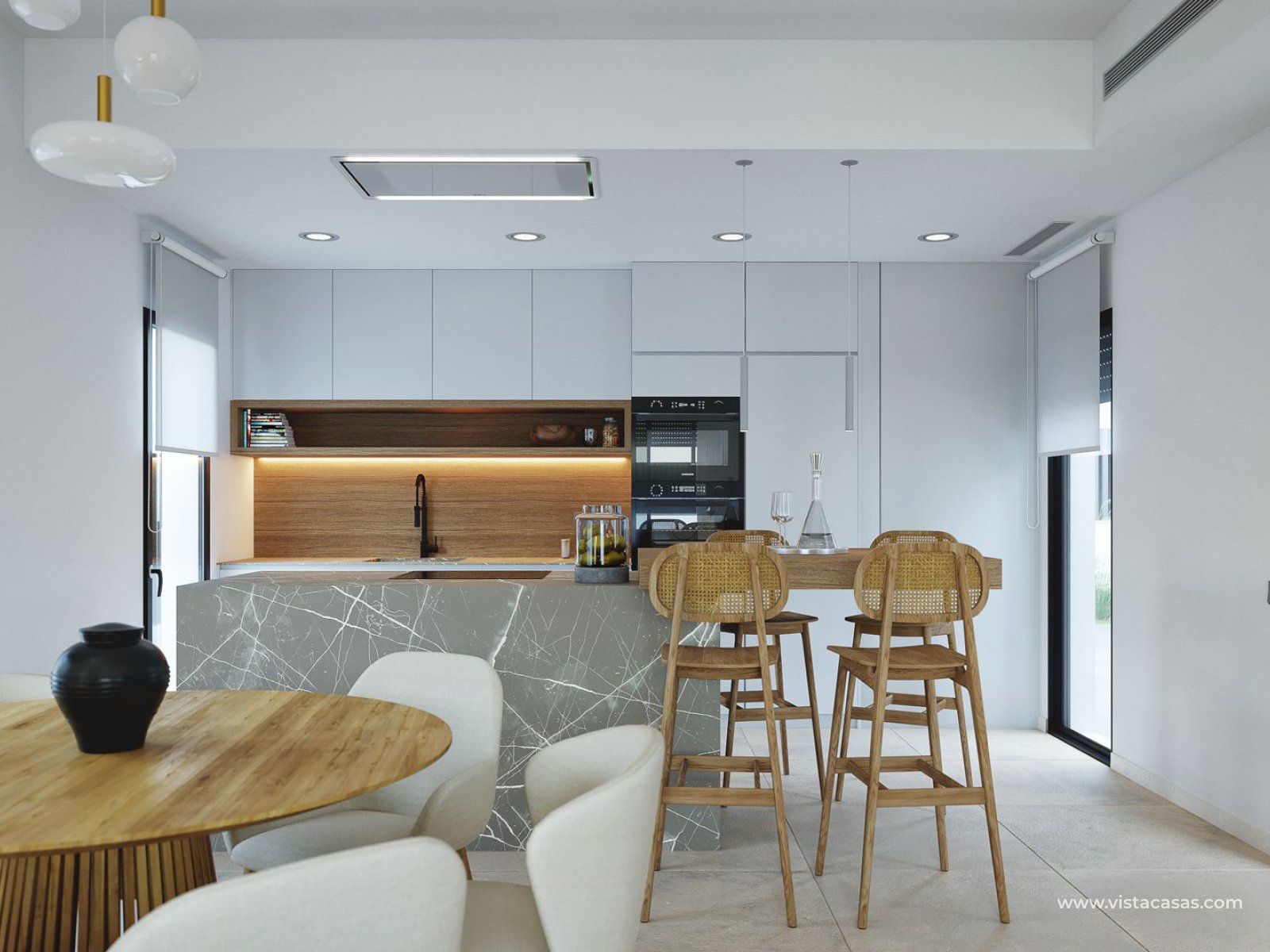 Using top quality materials the constructors also include pre-installation for air conditioning, white goods, underfloor heating in the bathrooms, LED Lighting, laundry facilities, private pool and garden, and private parking.