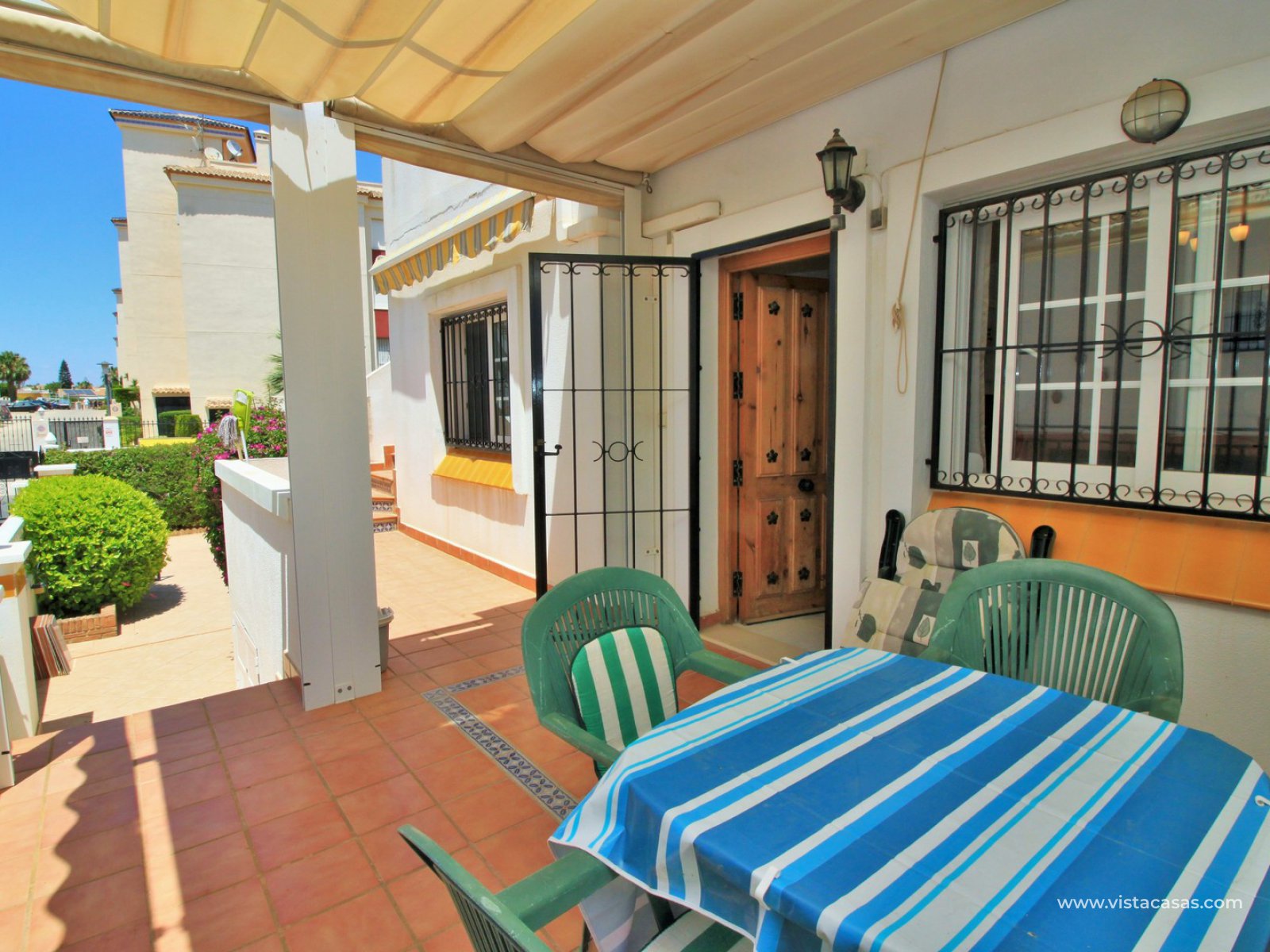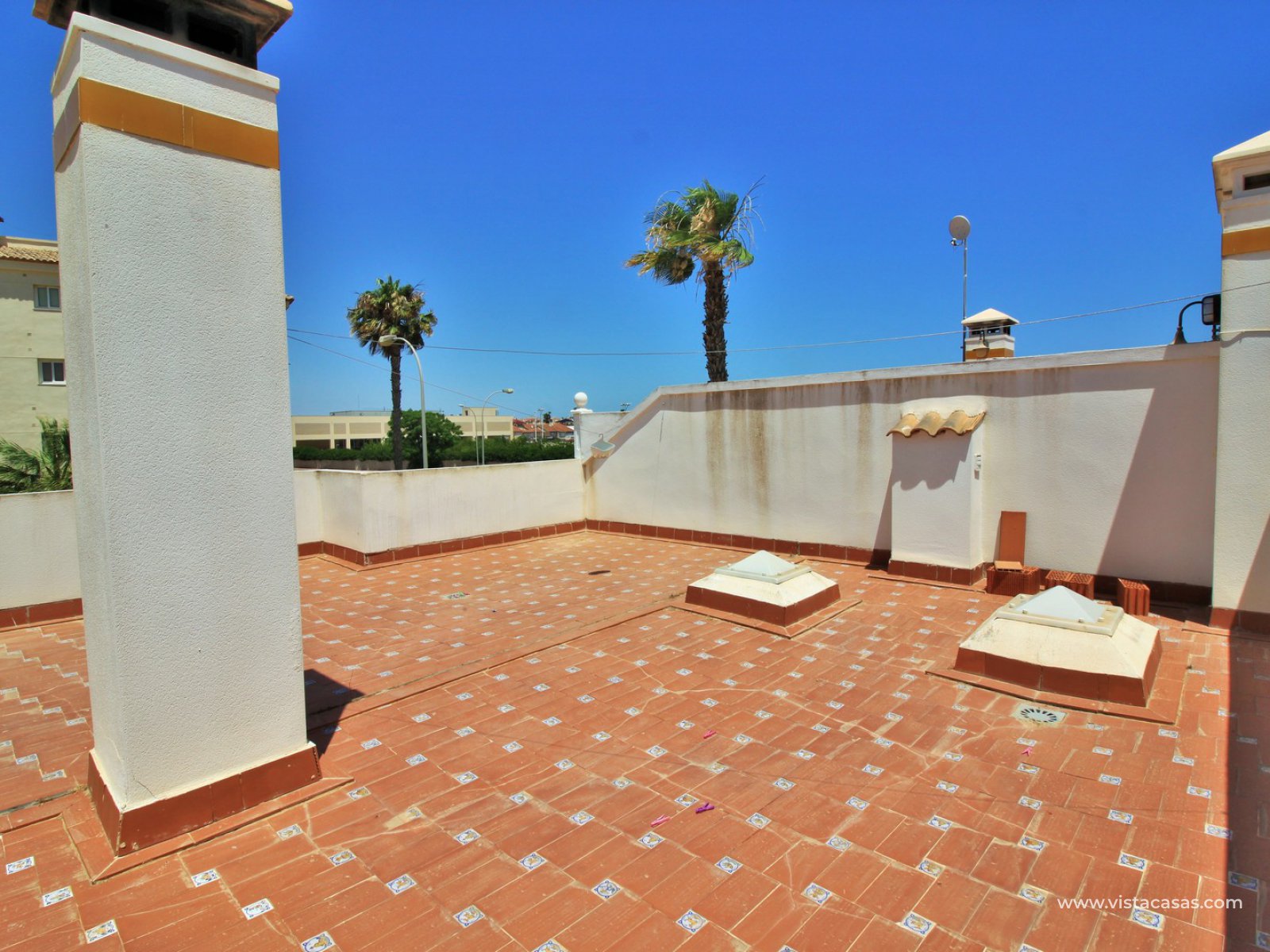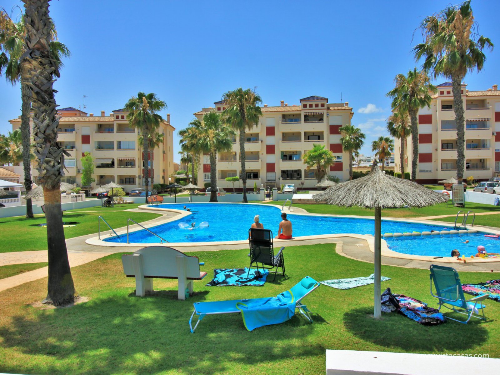 REDUCED BY 10,000€...! Great opportunity to purchase this lovely 2 bedroom, 2 bathroom bungalow located in the highly sought-after complex of Jumilla II in Playa Flamenca. The property is located in an ideal spot, within walking distance to the local bars, restaurants, and shops in the La Florida & Citrus commercial centres, not forgetting the Zenia Boulevard shopping mall, the biggest in the Alicante province, is only a 20 minutes walk away. All situated within a secure gated community with the use of a lovely communal pool located in the centre of the complex. The property offers a large 106m2 private garden with off-road parking, plus a 47m2 roof solarium, so there is plenty of space for outside dining, and to build a private pool if desired.