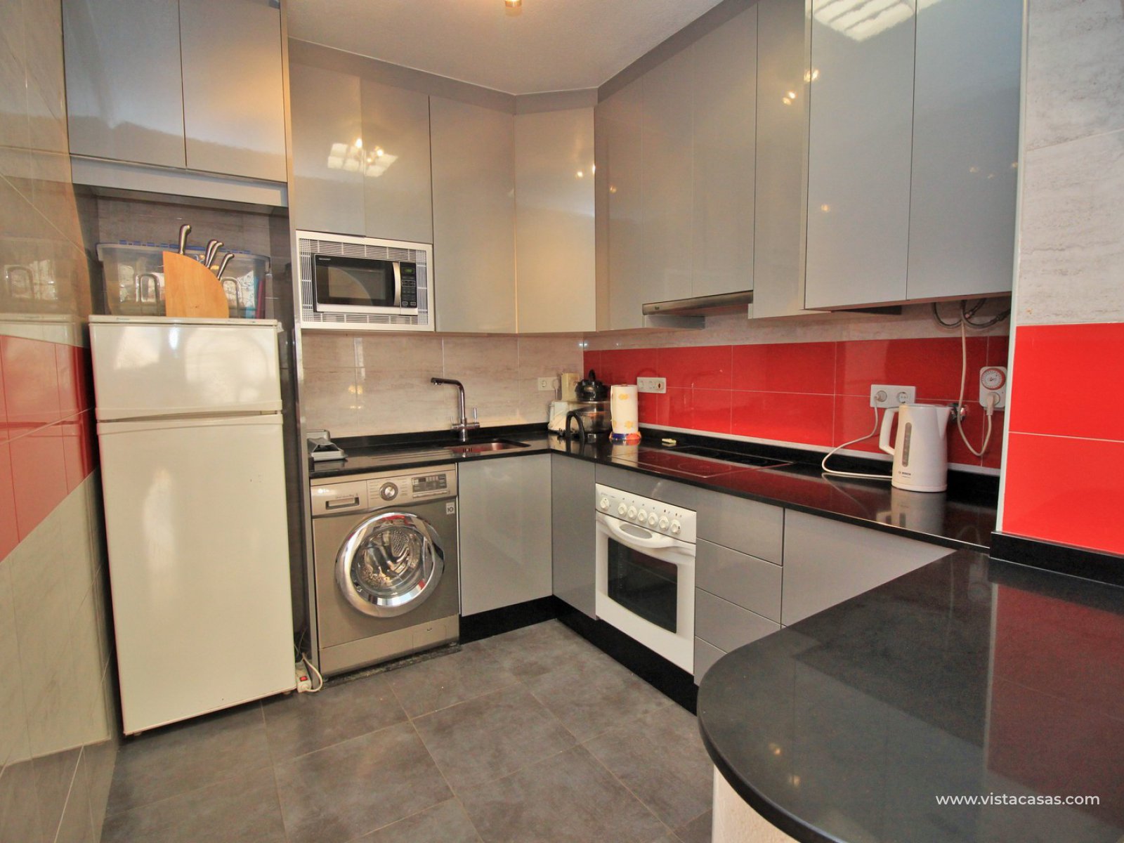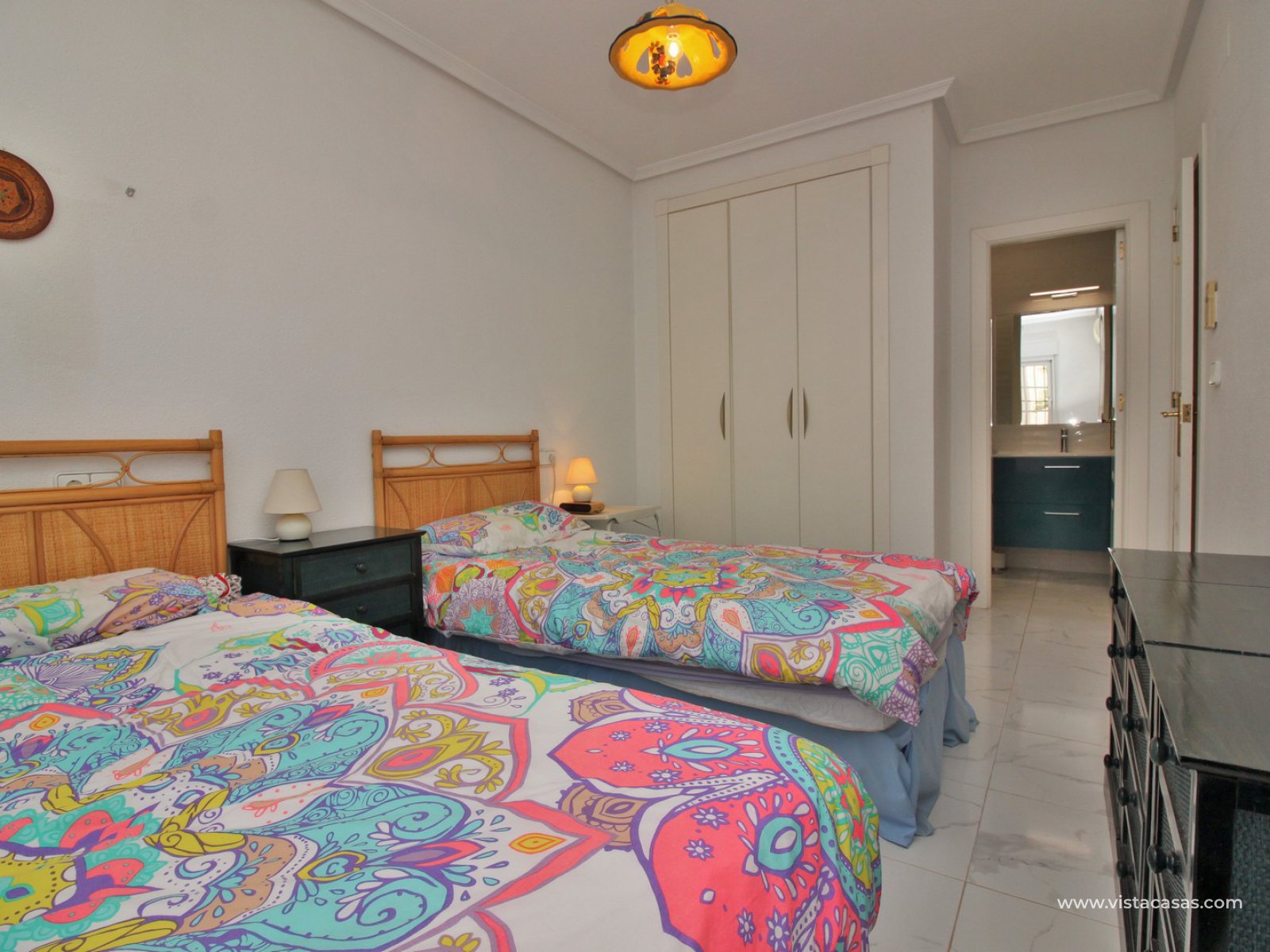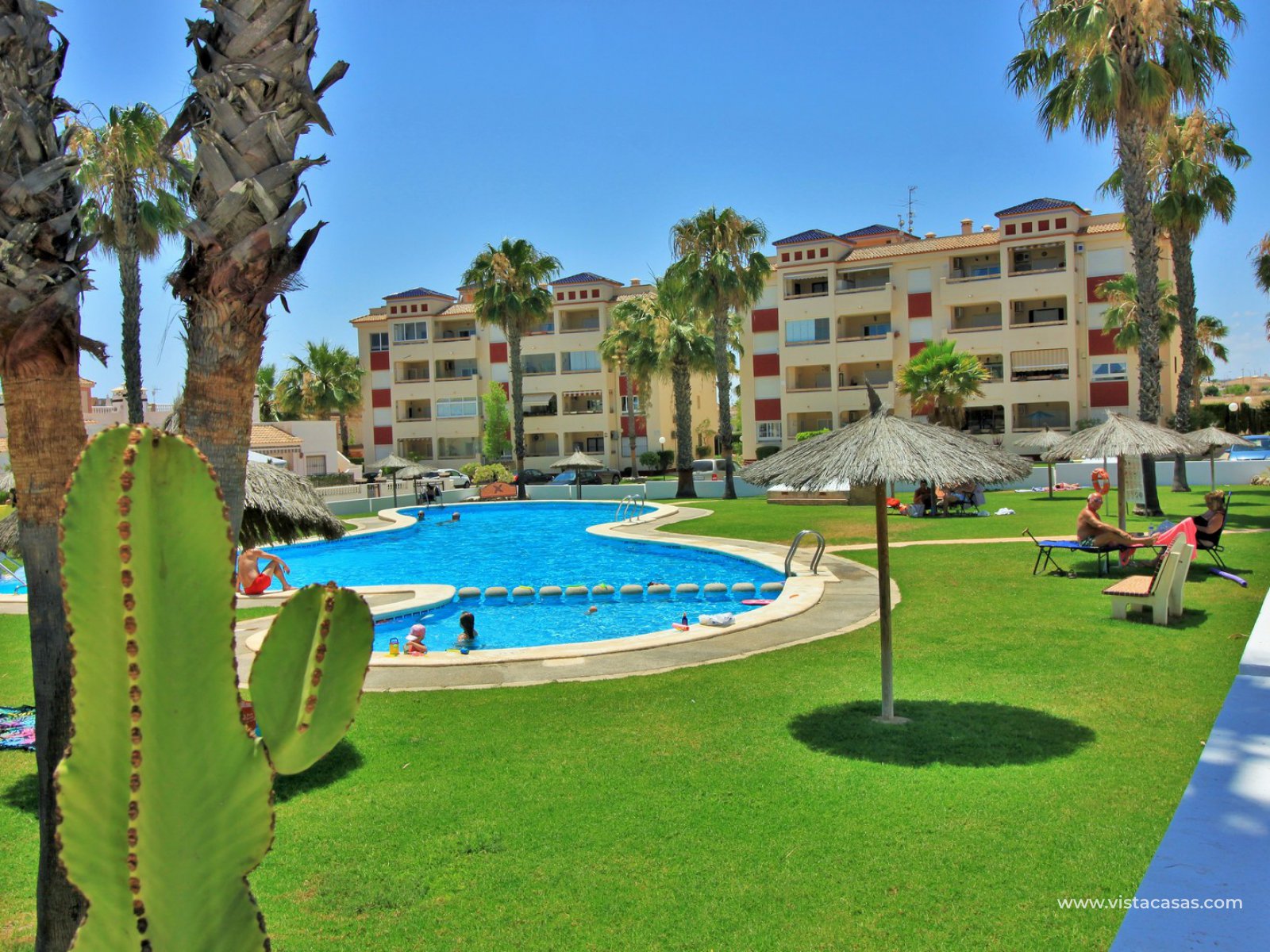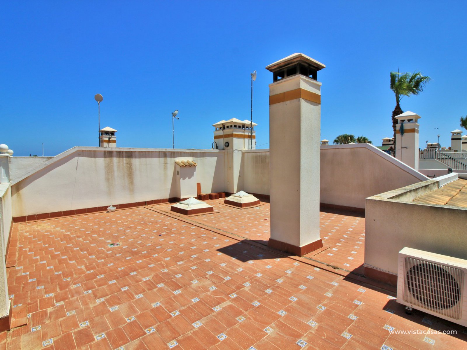 REDUCED BY 10,000€...! Great opportunity to purchase this lovely 2 bedroom, 2 bathroom bungalow located in the highly sought-after complex of Jumilla II in Playa Flamenca. The property is located in an ideal spot, within walking distance to the local bars, restaurants, and shops in the La Florida & Citrus commercial centres, not forgetting the Zenia Boulevard shopping mall, the biggest in the Alicante province, is only a 20 minutes walk away. All situated within a secure gated community with the use of a lovely communal pool located in the centre of the complex. The property offers a large 106m2 private garden with off-road parking, plus a 47m2 roof solarium, so there is plenty of space for outside dining, and to build a private pool if desired.