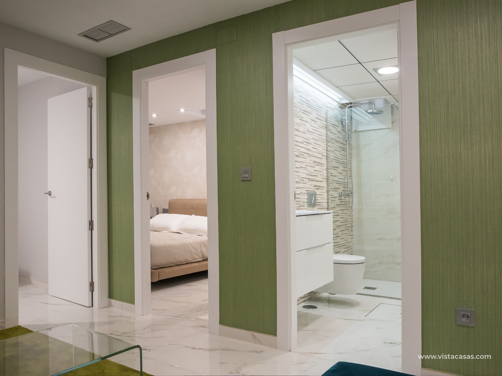 New build detached villas located in the urbanization of Villamartin, Pau 26 surrounded by three iconic golf courses of the Costa Blanca: Villamartin Golf, Las Ramblas Golf and Las Colinas Golf. The development is close to amenities, golf course, beaches and Zenia Boulevard shopping centre. The villas have 3 bedrooms, 2 bathrooms, an open plan living area, kitchen on the main level, and in the basement level a further 2 bedrooms and bathrooms and lounge area. From the roof solarium are views to the salt lakes. The properties also have private parking, a private garden, private pool, pre-installation of hot and cold air conditioning and underfloor heating in the bathrooms.