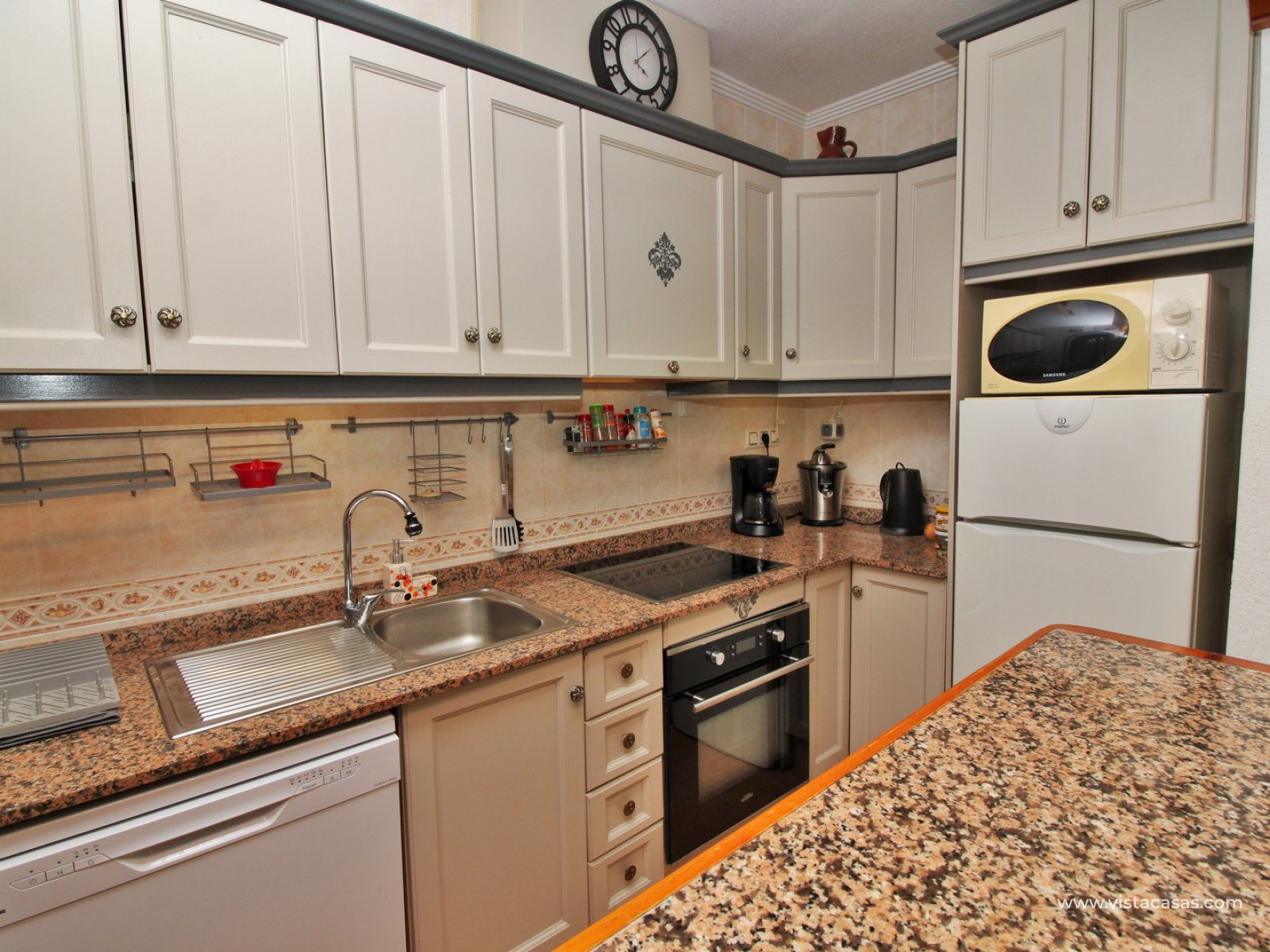 Lovely West facing 2 bedroom, 1 bathroom bungalow situated in Monte Golf III in Villamartin. The property is situated within walking distance to the Villamartin Plaza and offers living area all on one level with an external staircase leading to a large 46m2 private roof terrace. This complex offers a fantastic communal pool just nearby. The bungalow is in good condition and is sold furnished.