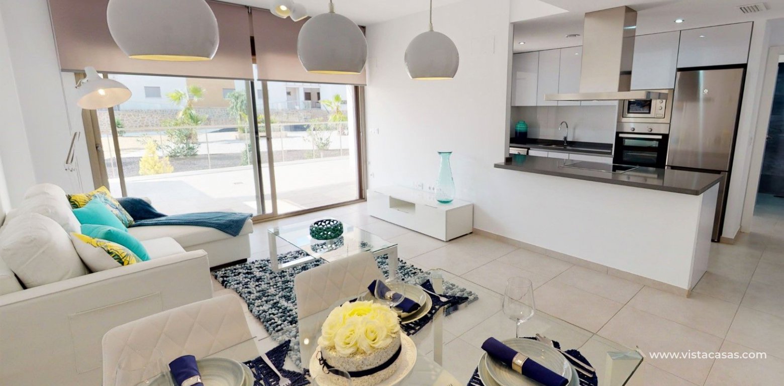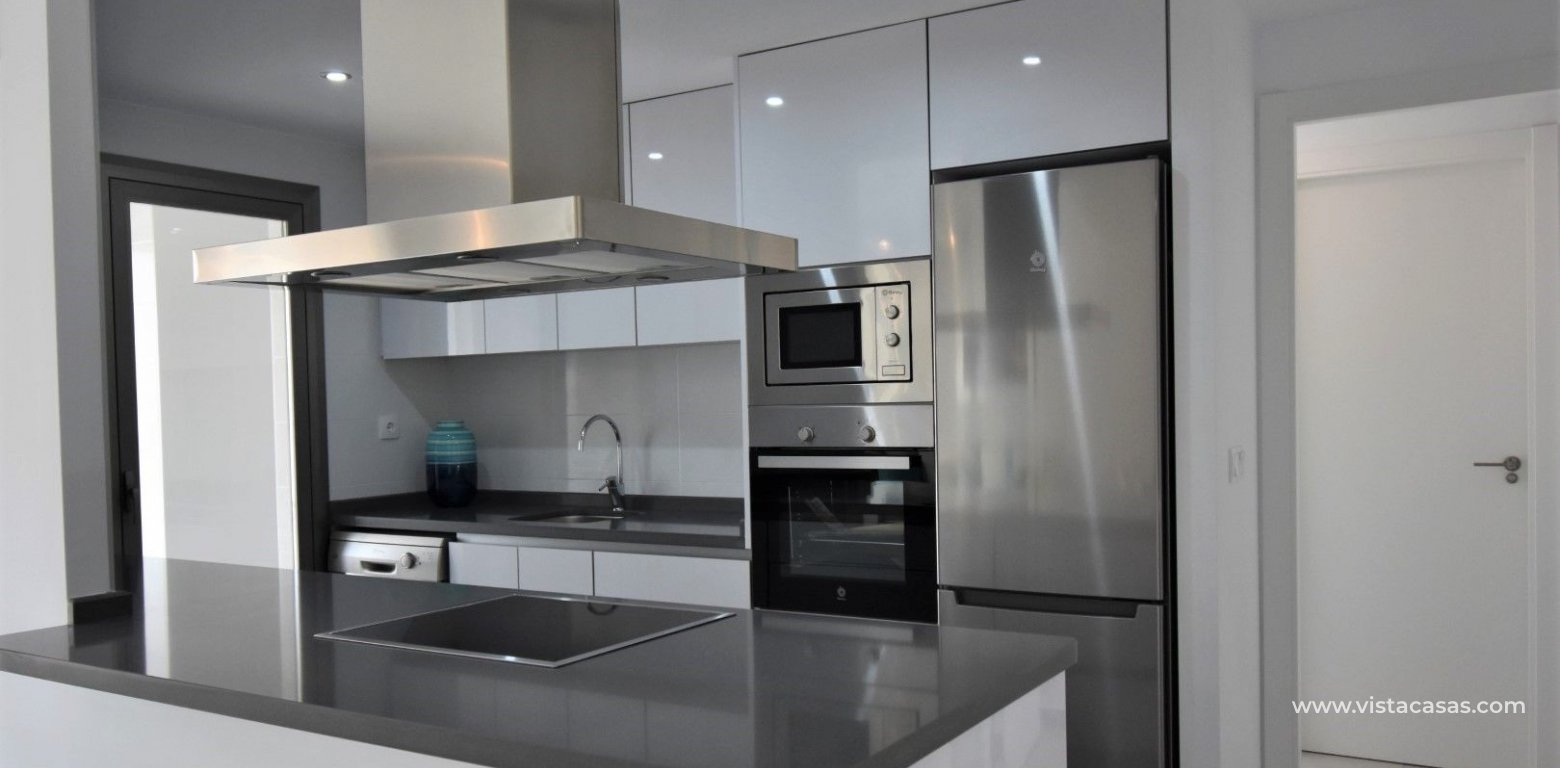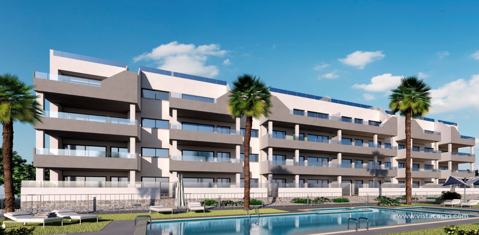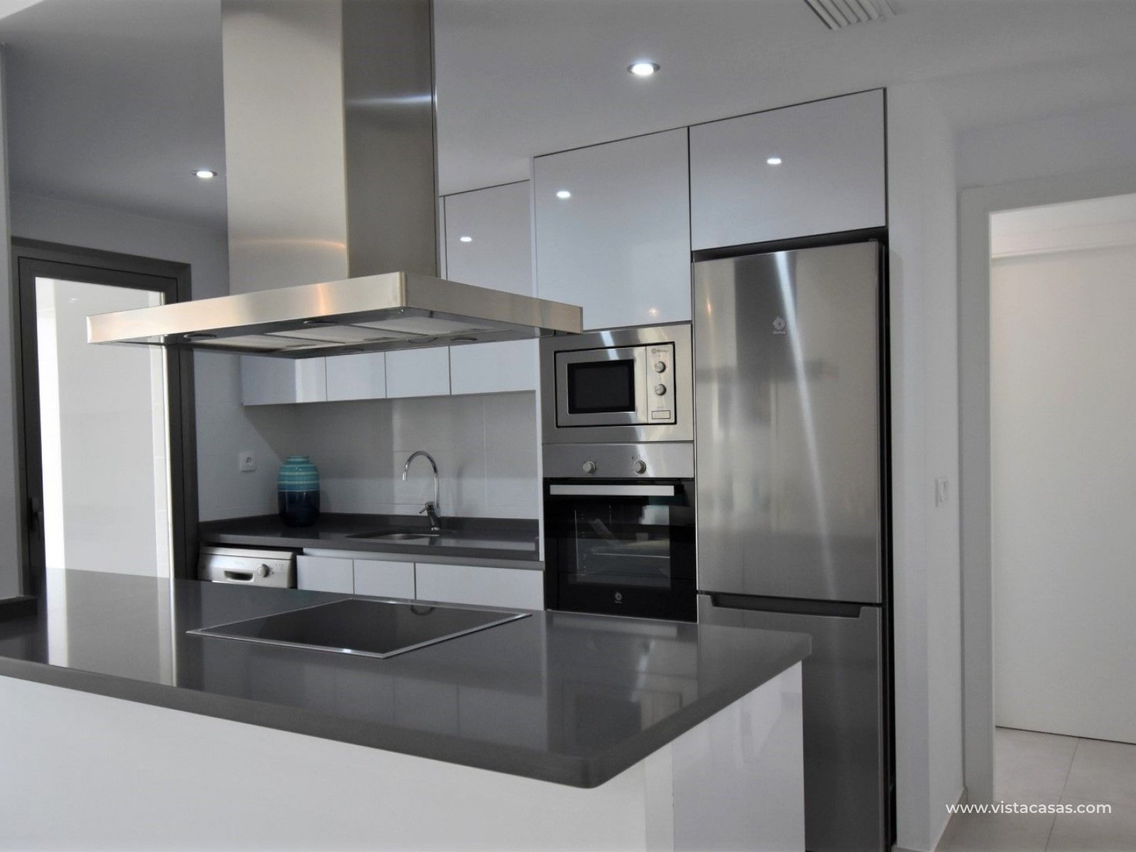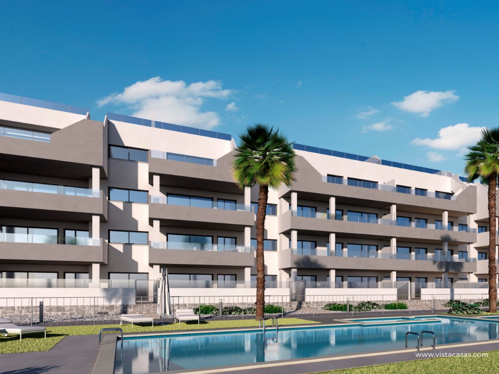 New build apartments in Los Dolses, Villamartin in a gated complex with a communal pool and gardens. The apartments have 2 bedrooms and 2 bathrooms with a spacious living area which combines the kitchen, the dining room and lounge with access to the terrace. Top floors have a roof solarium. All of the properties include a kitchen equipped with white goods, fully installed ducted air conditioning, full bathrooms, a parking space and a storage room. The penthouses include a summer kitchen and outdoor shower on the solarium. BE QUICK, THESE ARE SELLING FAST !!